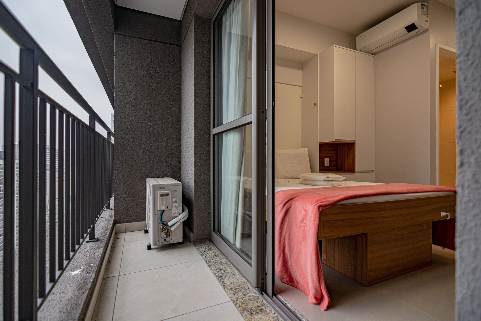 Studio completo no 20º andar da Rua Bento Freitas, com fechadura eletrônica, ar-condicionado, espaço para home office, Wi-Fi, TV 40”, canais abertos e fechados. Cama de casal com enxoval de qualidade, cozinha equipada com utensílios, airfryer, cafeteira. Banheiro com ducha gostosa, secador de cabelo e ferro. Varanda com porta acústica, ideal para noites silenciosas no centro de SP.