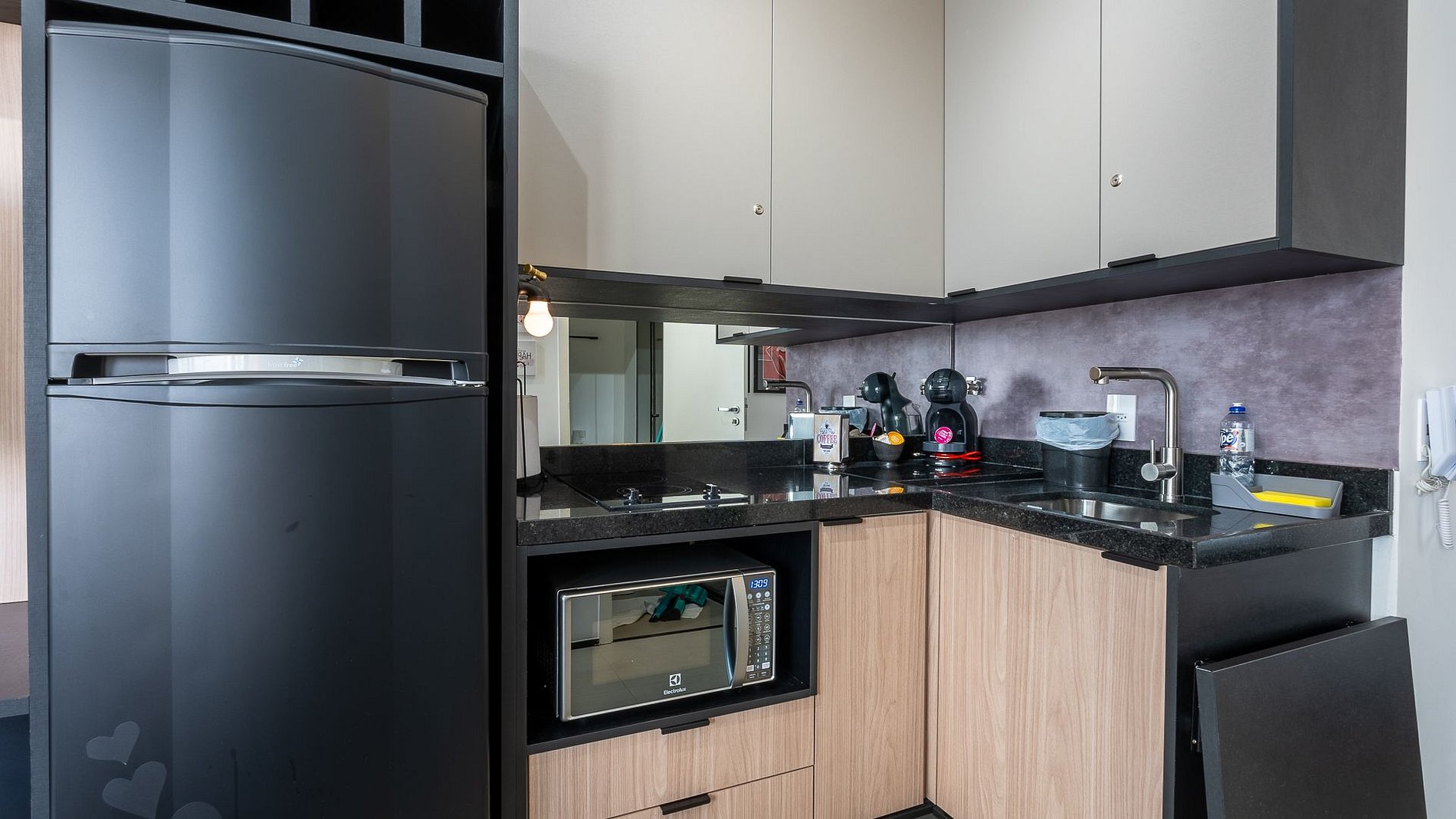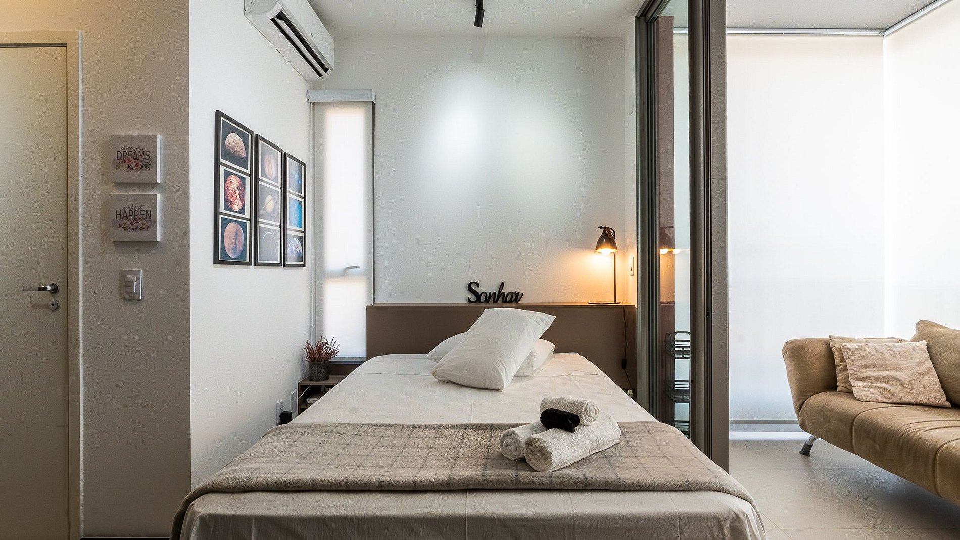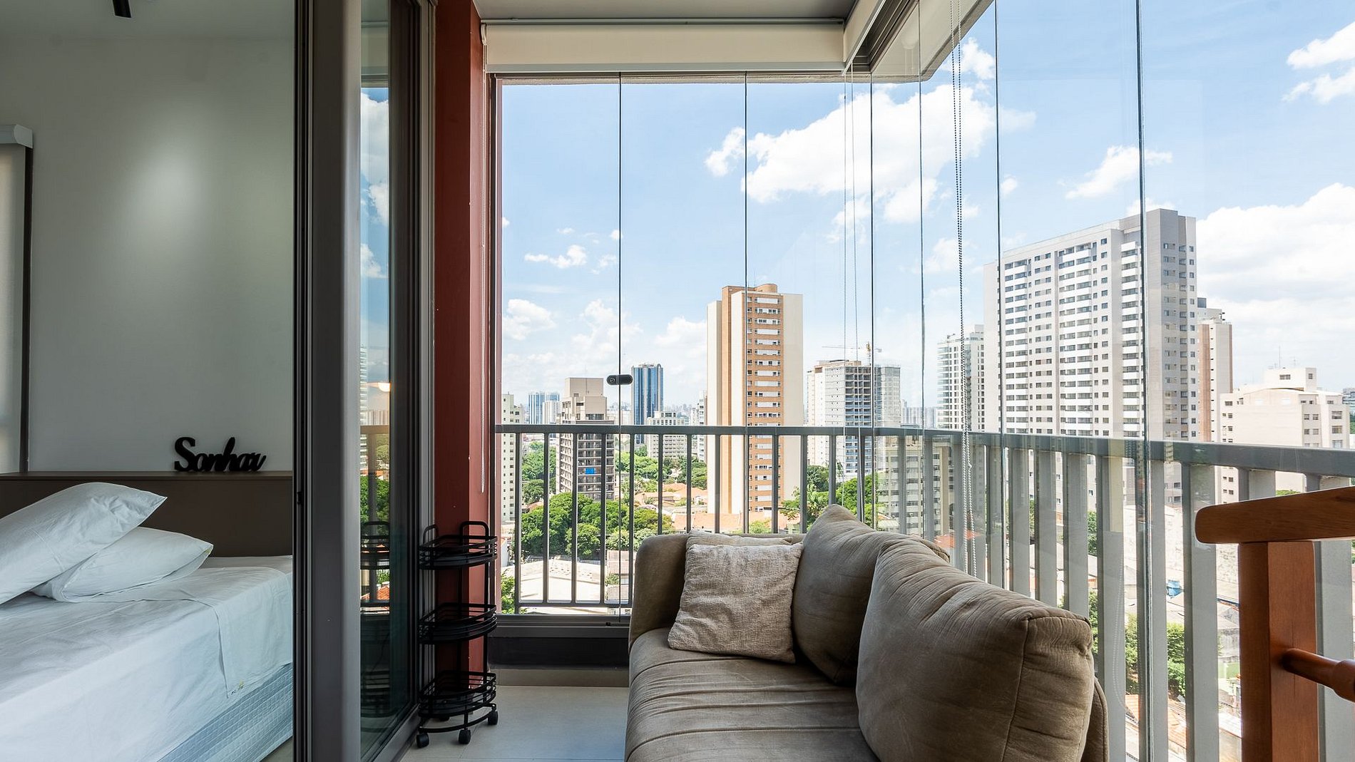 Studio ideal para quem quer apreciar SP com conforto. Conta com fechadura eletrônica, Wi-Fi, ar-condicionado, espaço para home office e refeições, TV de 40” com canais abertos, cama de casal com enxoval completo, secador, ferro, cozinha equipada e varanda aconchegante.