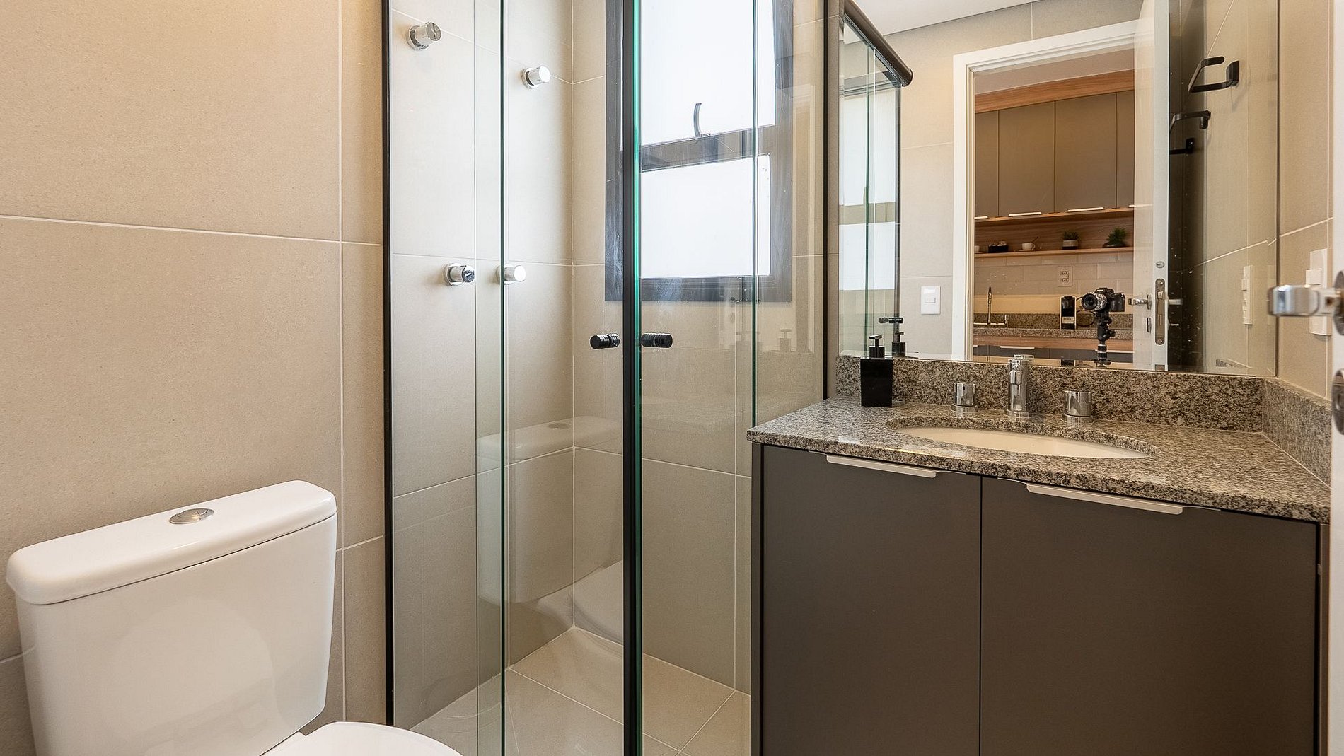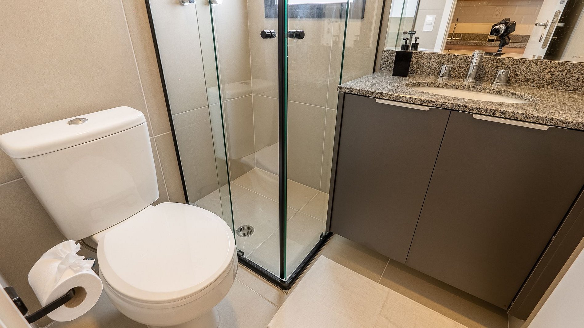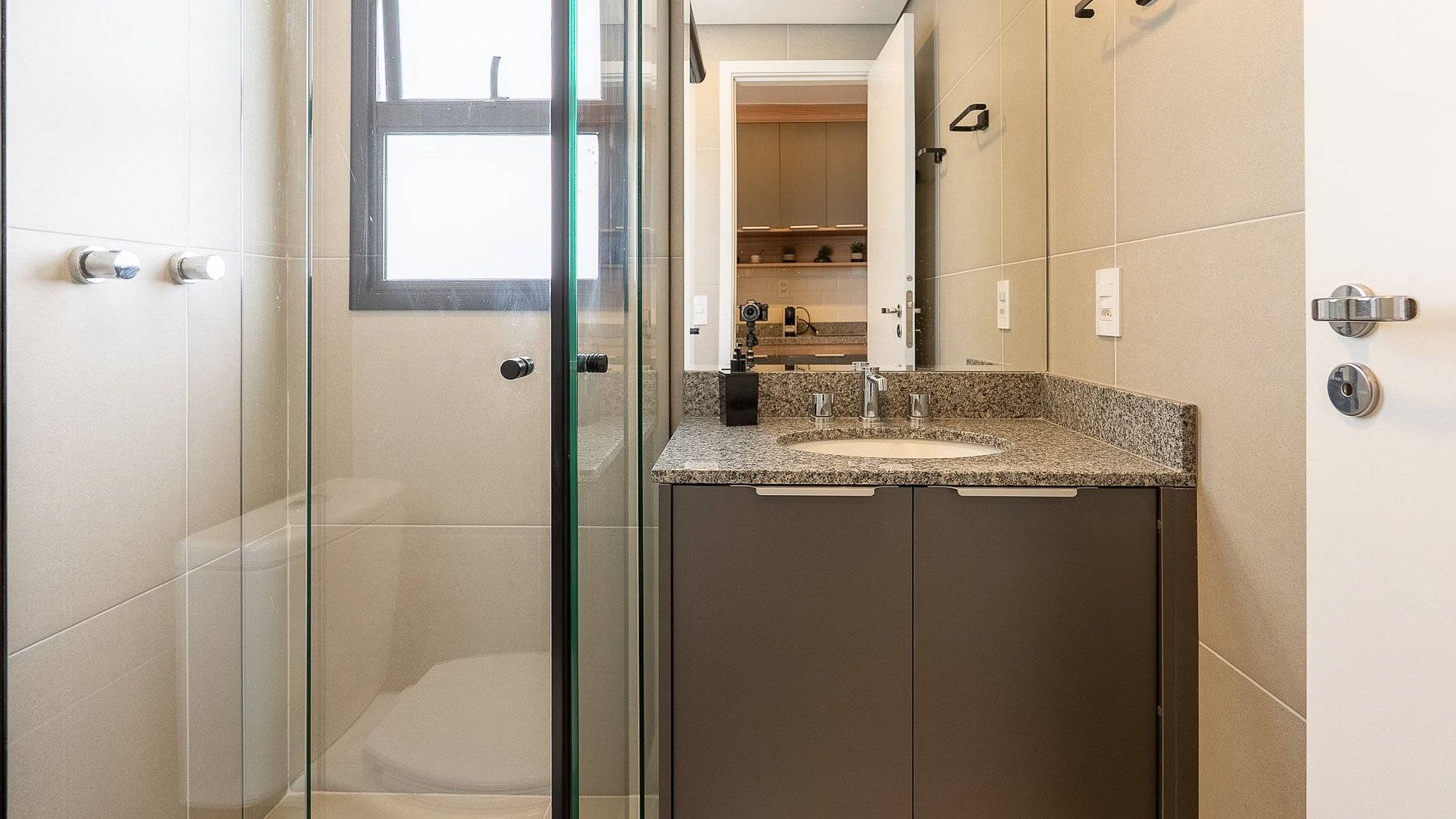 O condomínio dispõe das áreas comuns; piscina, academia, lavanderia compartilhada, student living, coworking, recepção e portaria 24h.