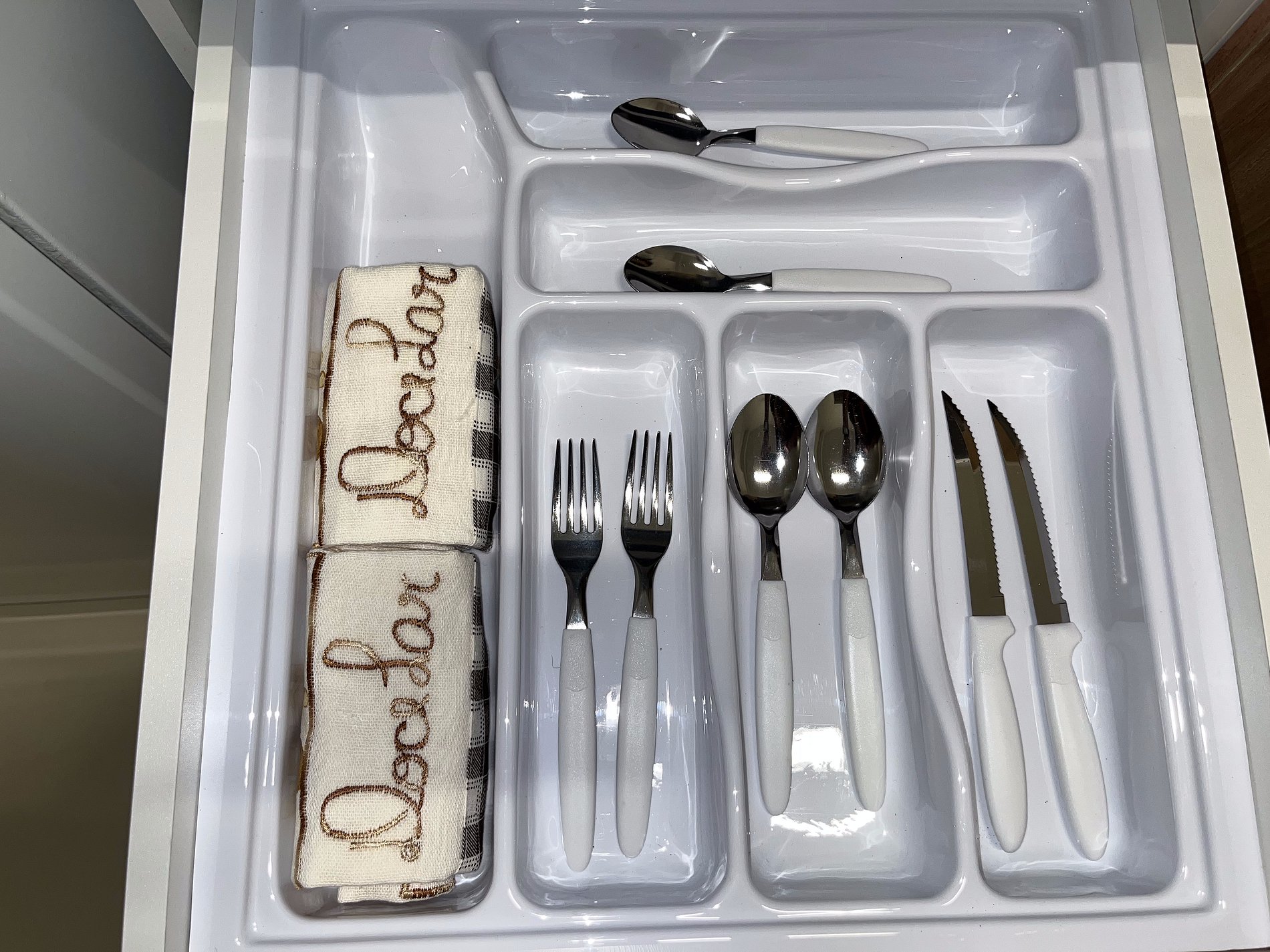 Espaço completo, conta panelas, copos, talheres, pratos, com sanduicheira, aparelho para fondue e mais.