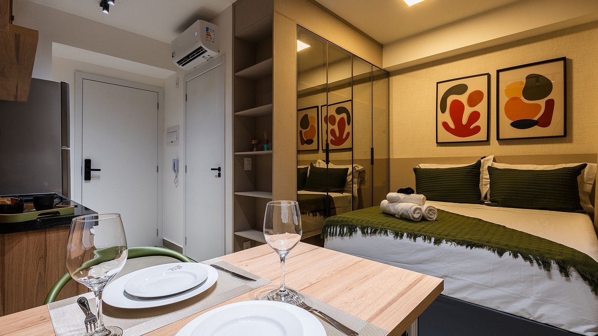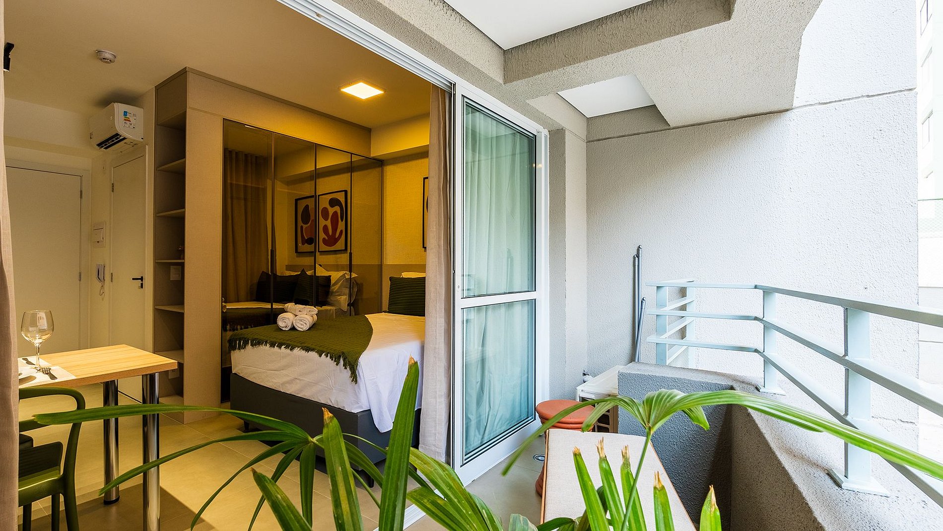 O Studio é magnifico, completo e luxuoso, feito para quem busca conforto e modernidade. Composto com fechadura eletrônica, ar condicionado inverter, Wi-fi 350', Tv, espaço para home office, cama de casal com todos os utensilios confortavéis, cortina blackout, cozinha completa com todos os utensílios, cafeteira Dolce Gusto, secador de cabelo, steamer e uma varanda linda para seu descanso e conforto.