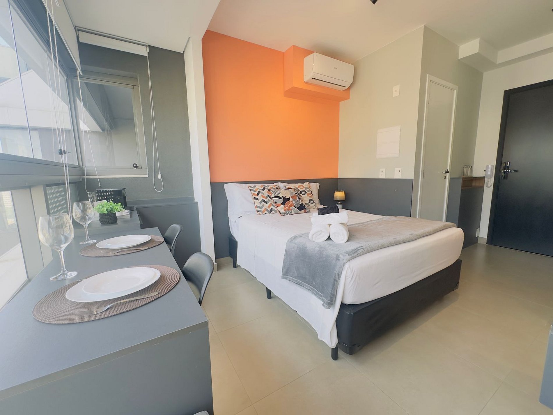 Studio charmoso e completo no 18º andar da Oscar Freire. Possui fechadura eletrônica, ar-condicionado, Wi-Fi, espaço para home office, TV, cama de casal com enxoval premium, cozinha equipada com utensílios, Nespresso, secador, ferro e uma vista incrível da cidade. Perfeito para quem busca conforto, praticidade e uma localização privilegiada.