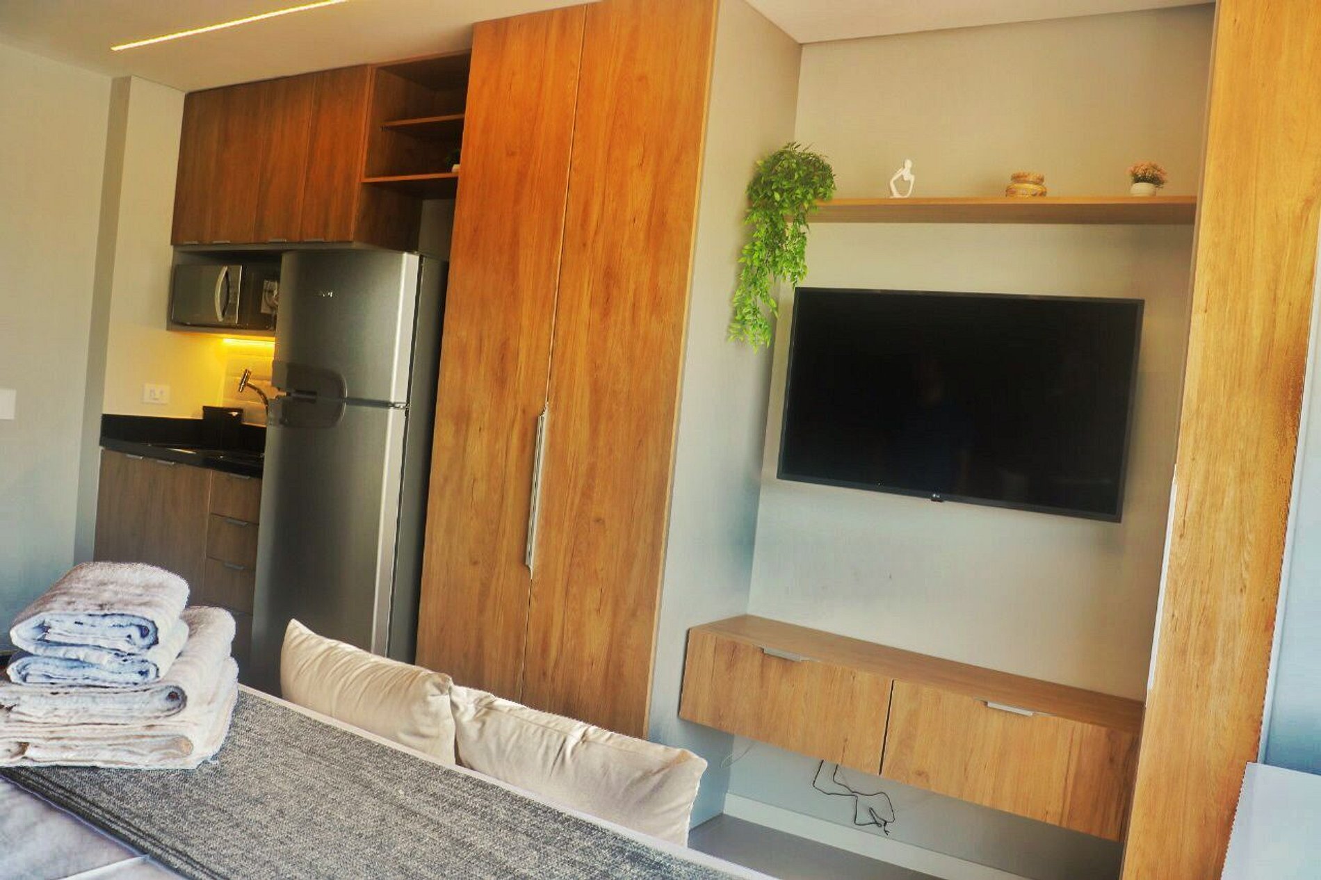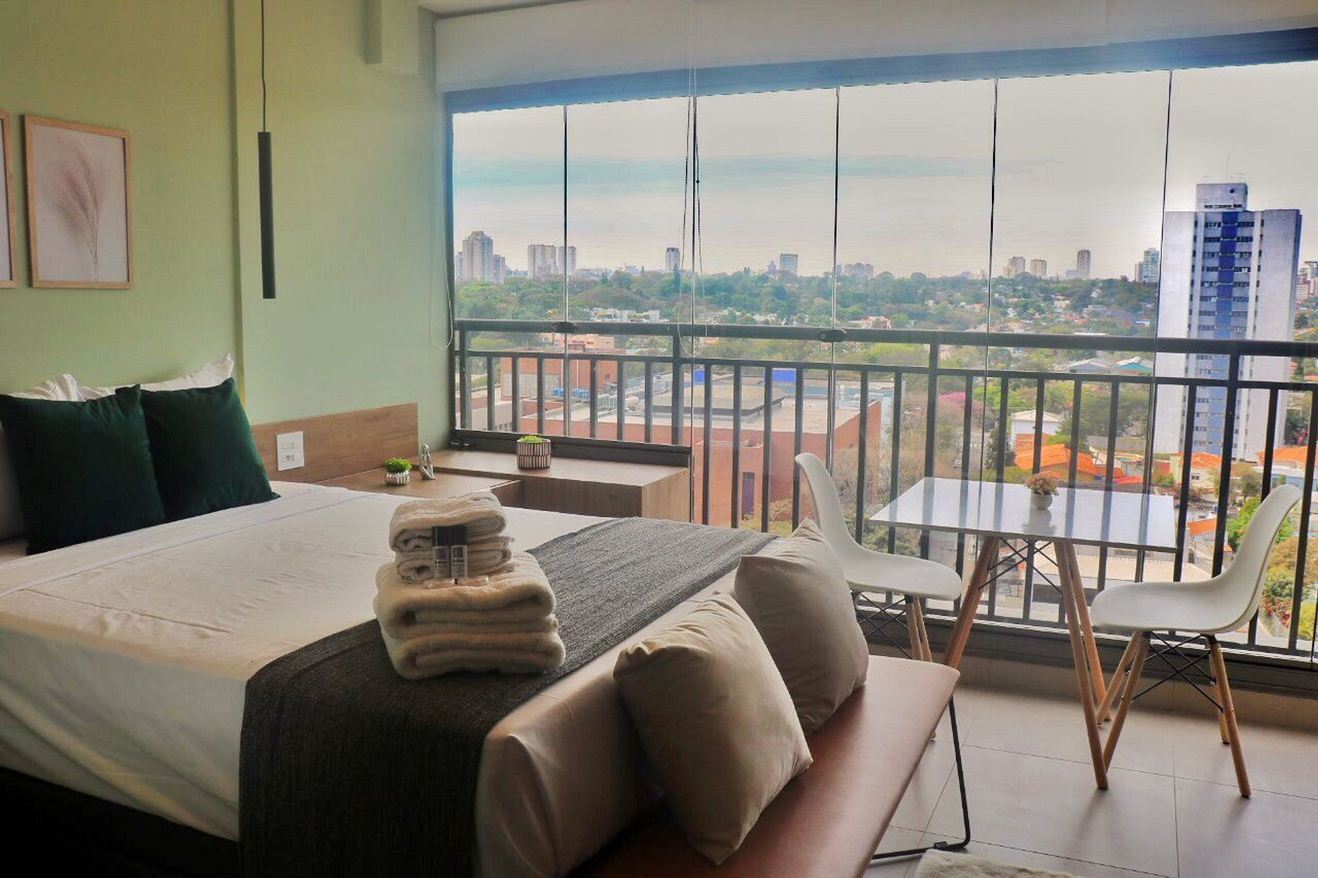 Estúdio luxuoso e novíssimo na Avenida Santo Amaro, a 3 min da Estação Brooklyn. Equipado com fechadura eletrônica, ar-condicionado, cama de casal com enxoval completo, cozinha completa com cafeteira Nespresso e liquidificador, espaço para home office, Wi-Fi, banheiro com secador e steamer, além de varanda com vista incrível do bairro Brooklyn, São Paulo.