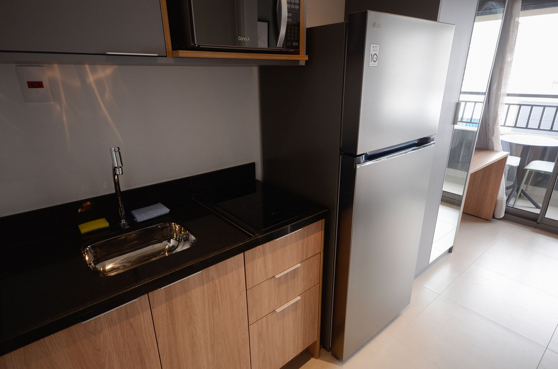 Studio moderno no Brooklin, a apenas 500m da estação Brooklin. Conta com fechadura eletrônica, ar-condicionado, TV, espaço para home office e varanda aberta com vista incrível da cidade. A cozinha é completa, equipada com todos os utensílios para o dia a dia, e o banheiro possui acabamento moderno. Ideal para quem busca conforto, praticidade e uma excelente localização em São Paulo.