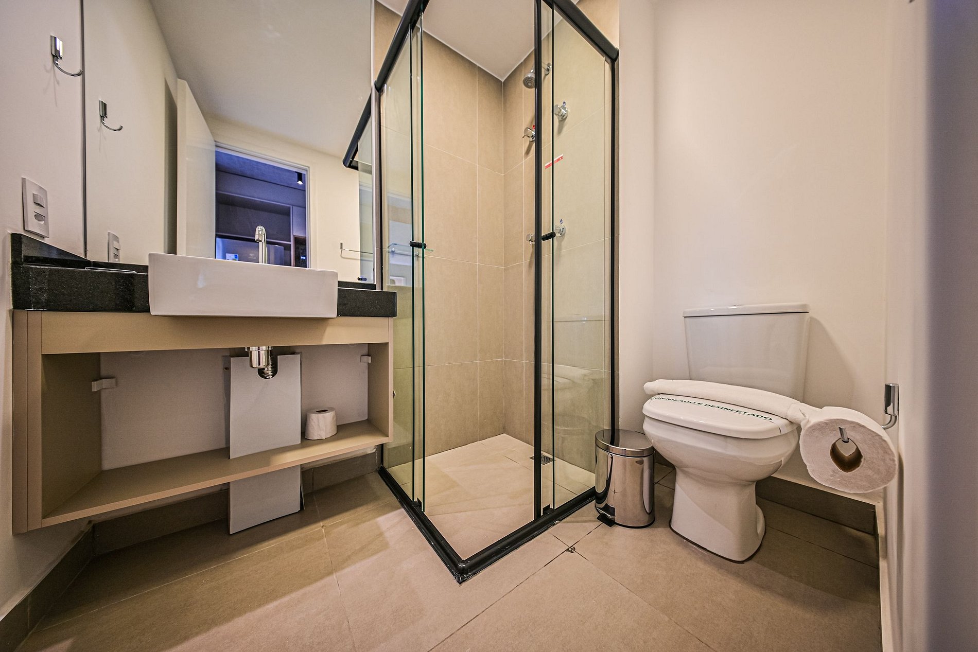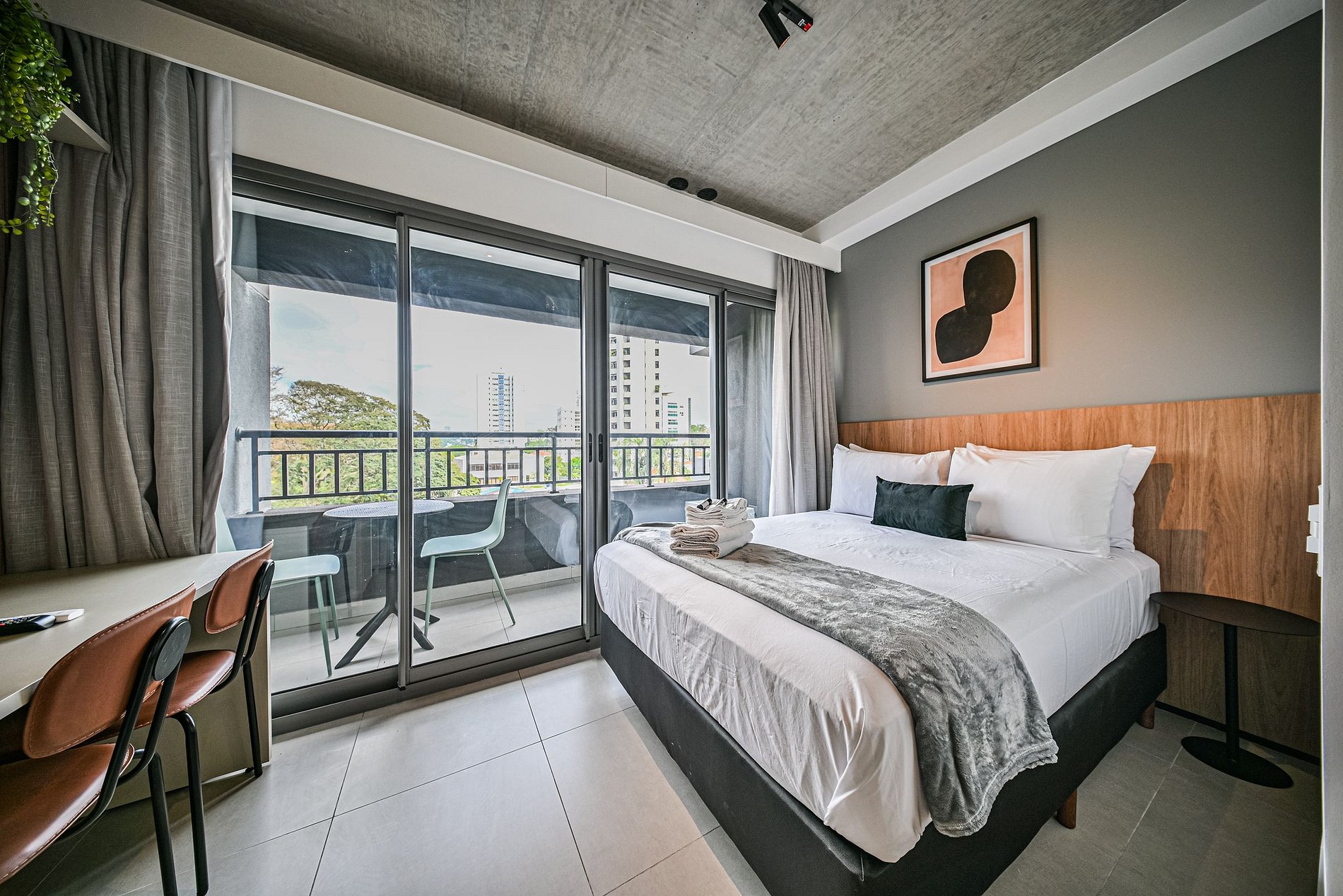 Studio moderno no Brooklin, a apenas 500m da estação Brooklin. Conta com fechadura eletrônica, ar-condicionado, TV, espaço para home office e varanda aberta com vista incrível da cidade. A cozinha é completa, equipada com todos os utensílios para o dia a dia, e o banheiro possui acabamento moderno. Ideal para quem busca conforto, praticidade e uma excelente localização em São Paulo.