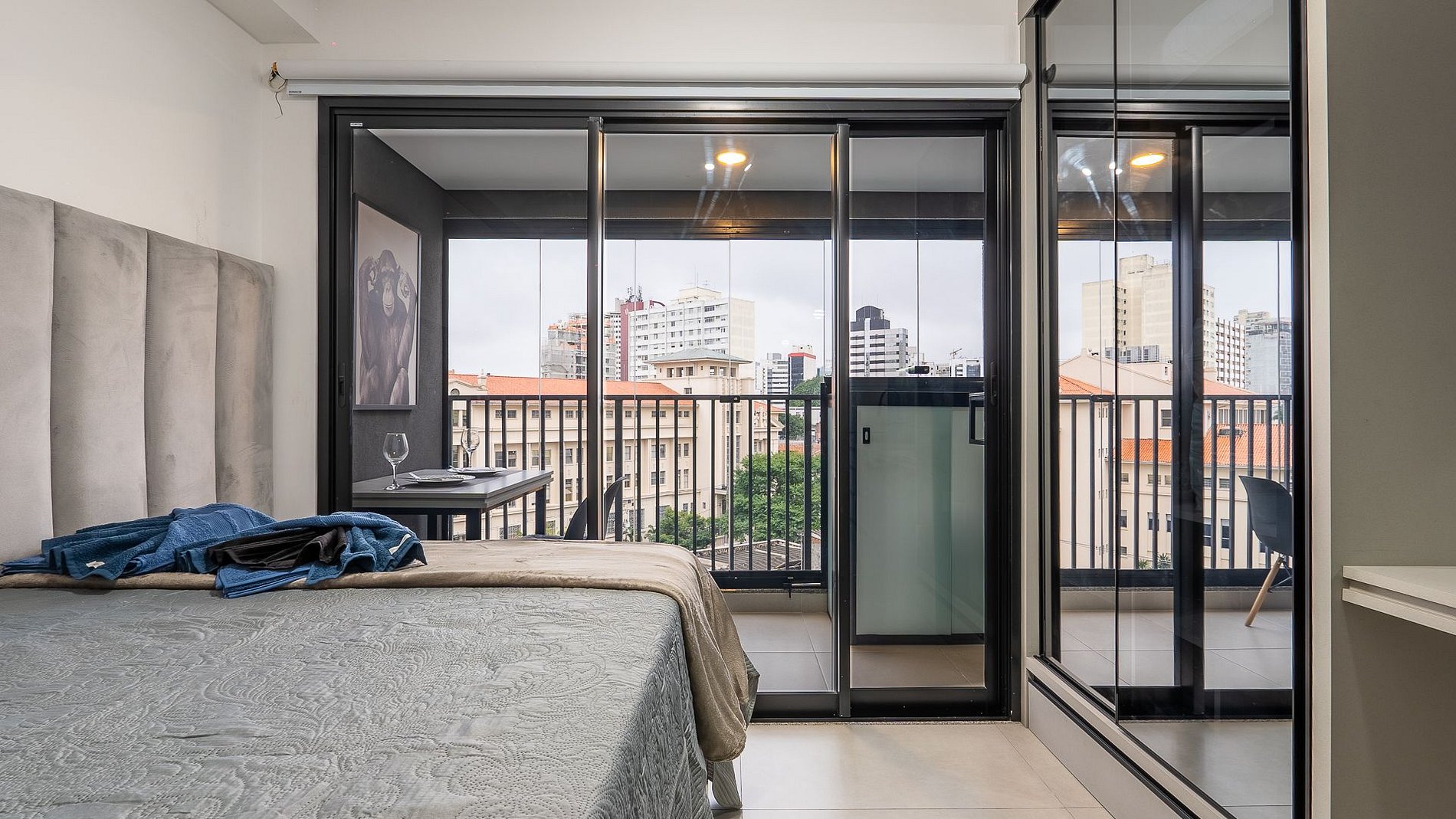 O Studio foi criado especialmente para acomodação de 3 pessoas. Totalmente previlegiado localizado ao lado da estação Vila Mariana linha azul do metro, é completo com fechadura eletrônica, Tv 45', ar condicionado inverter, Wi-fi de 500mega, espaço para home office e local para refeição, cama de casal e uma acama auxiliar abaixo com enxoval completo, cozinha completa com todos os utensilios, cafeteira Nespresso, secador de cabelo e uma varanda incrivel com uma vista impecável para a cidade de SP.
