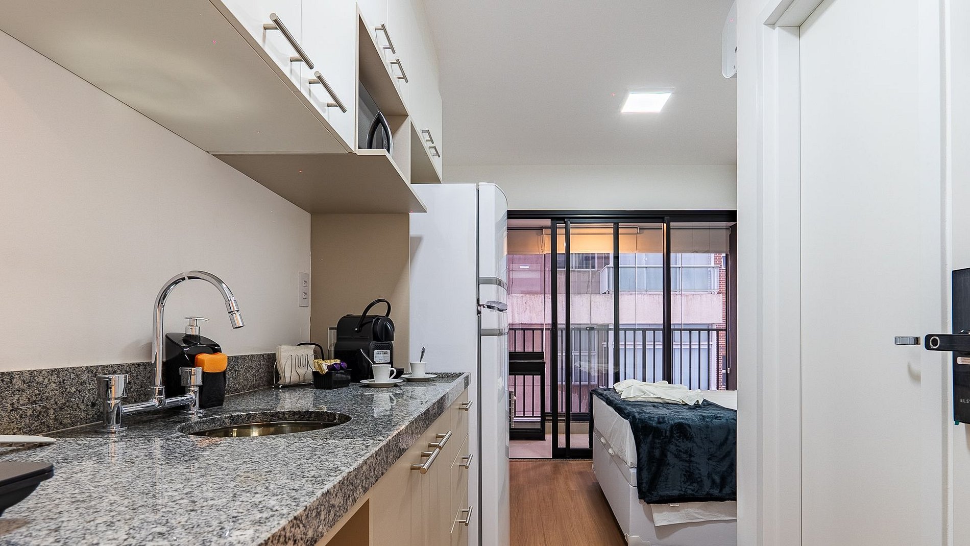 O studio é completo e aconchegante, totalmente previlegiado localizado ao lado da estação Vila Mariana linha azul do metro, composto com fechadura eletrônica, Tv 45', ar condicionado inverter, Wi-fi de 300mega, espaço para home office e local para refeição, cama de casal com todo enxoval completo, cozinha completa com todos os utensilios, cafeteira Nespresso, secador de cabelo, ferro e uma varanda fechada com porta de isolamento com vista diretamente para cidade de SP.