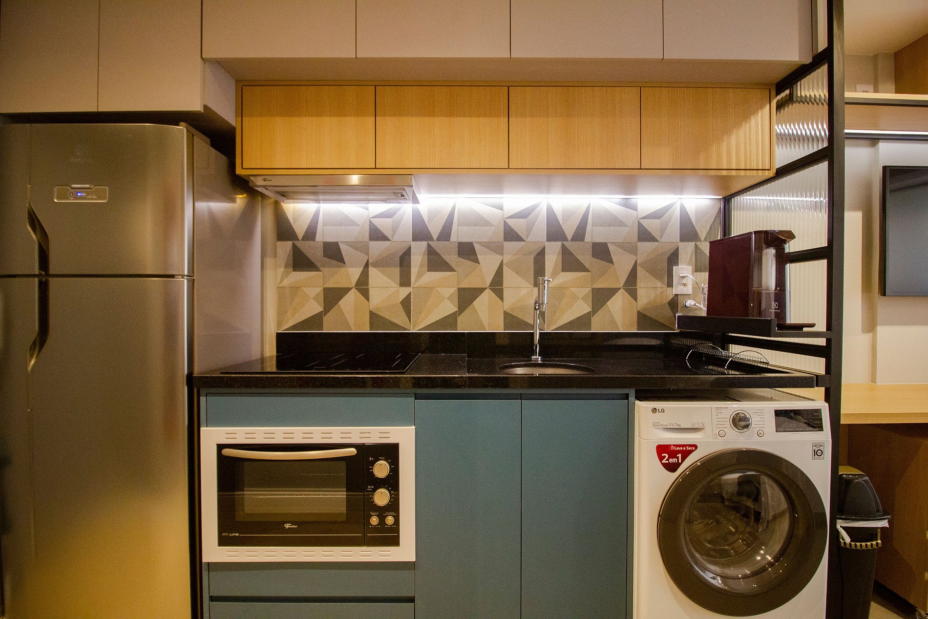O stúdio Belint possui 24m², acesso com senha digital, tomadas USB, Armários embutidos no quarto, banheiro e cozinha, deliciosa estrutura para o seu descanso ou até mesmo para quem pretende trabalhar home-office. Smart TV 40'' polegadas, internet 250GB, cama com enxovais completo, além de persianas nas janelas, ar-condicionado frio garantindo a temperatura ideal. A cozinha possui itens básicos como geladeira, micro-ondas, fogão, forno, cafeteira, sanduicheira e utensílios domésticos.