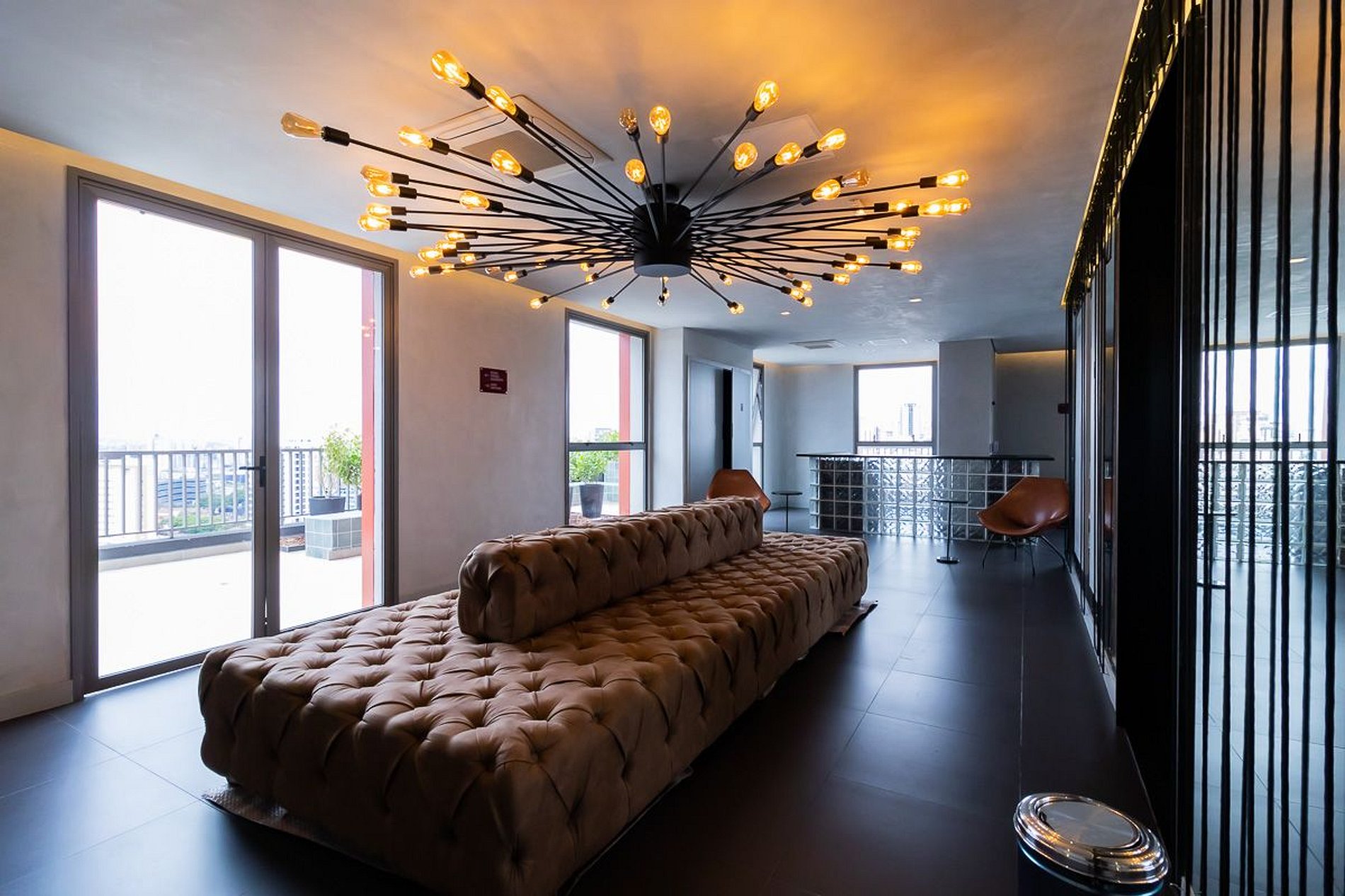 O condomínio conta com lounge de recepção; Academia, Coworking, Rooftop com piscina; Lavanderia compartilhada; Churrasqueira, loungue bar e cozinha compartilhada.