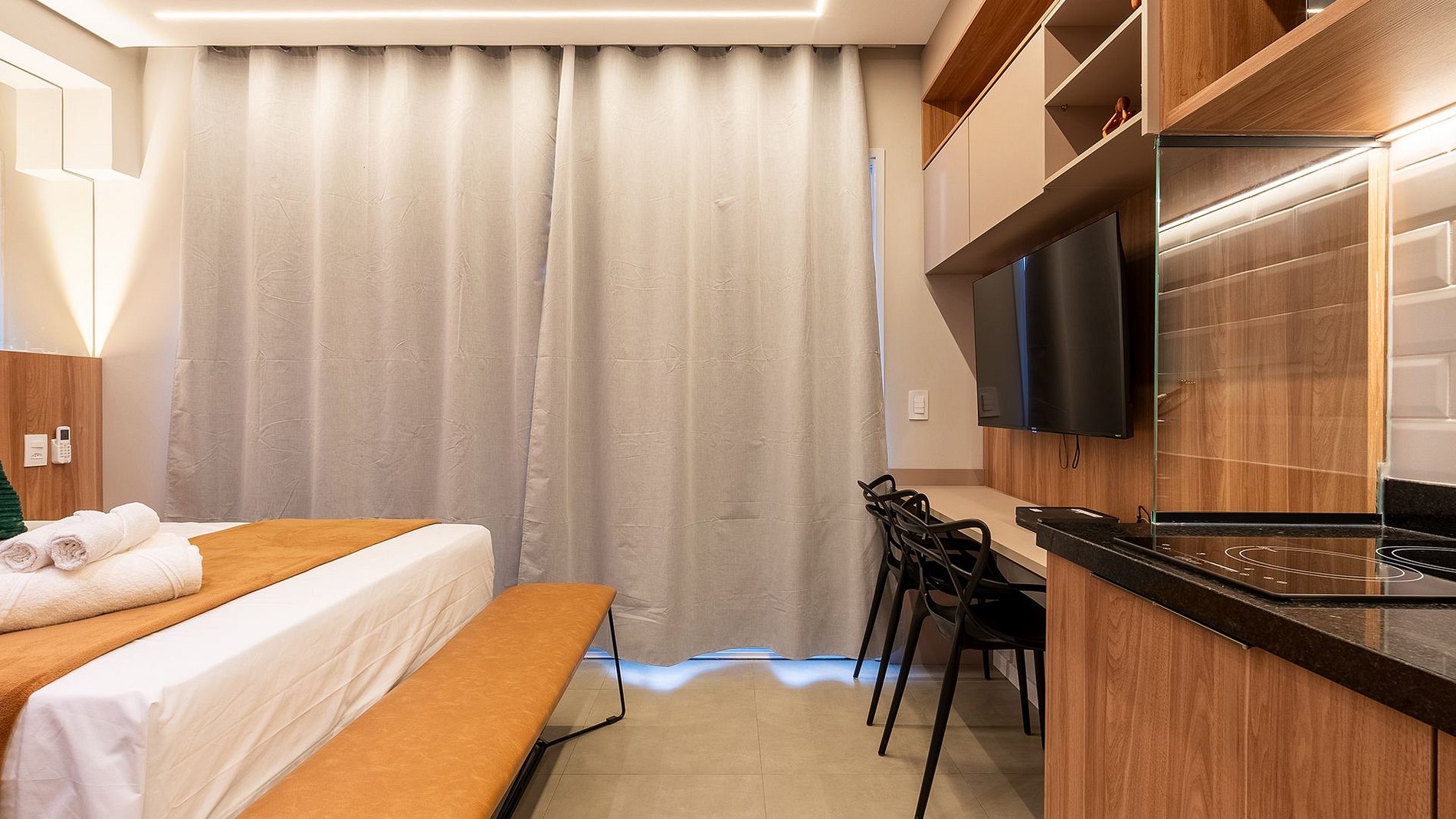 Descubra o luxo e o conforto deste estúdio em Perdizes! Equipado com fechadura eletrônica, ar-condicionado inverter, Wi-Fi de alta velocidade e espaço para home office, ele é perfeito para viver e trabalhar. Desfrute de TV Smart, cama de casal, enxoval premium e uma cozinha completa com utensílios e cafeteira Nespresso. Para sua conveniência, inclui secador de cabelo e steamer. A varanda envidraçada oferece uma vista espetacular da cidade, tornando sua experiência ainda mais exclusiva.