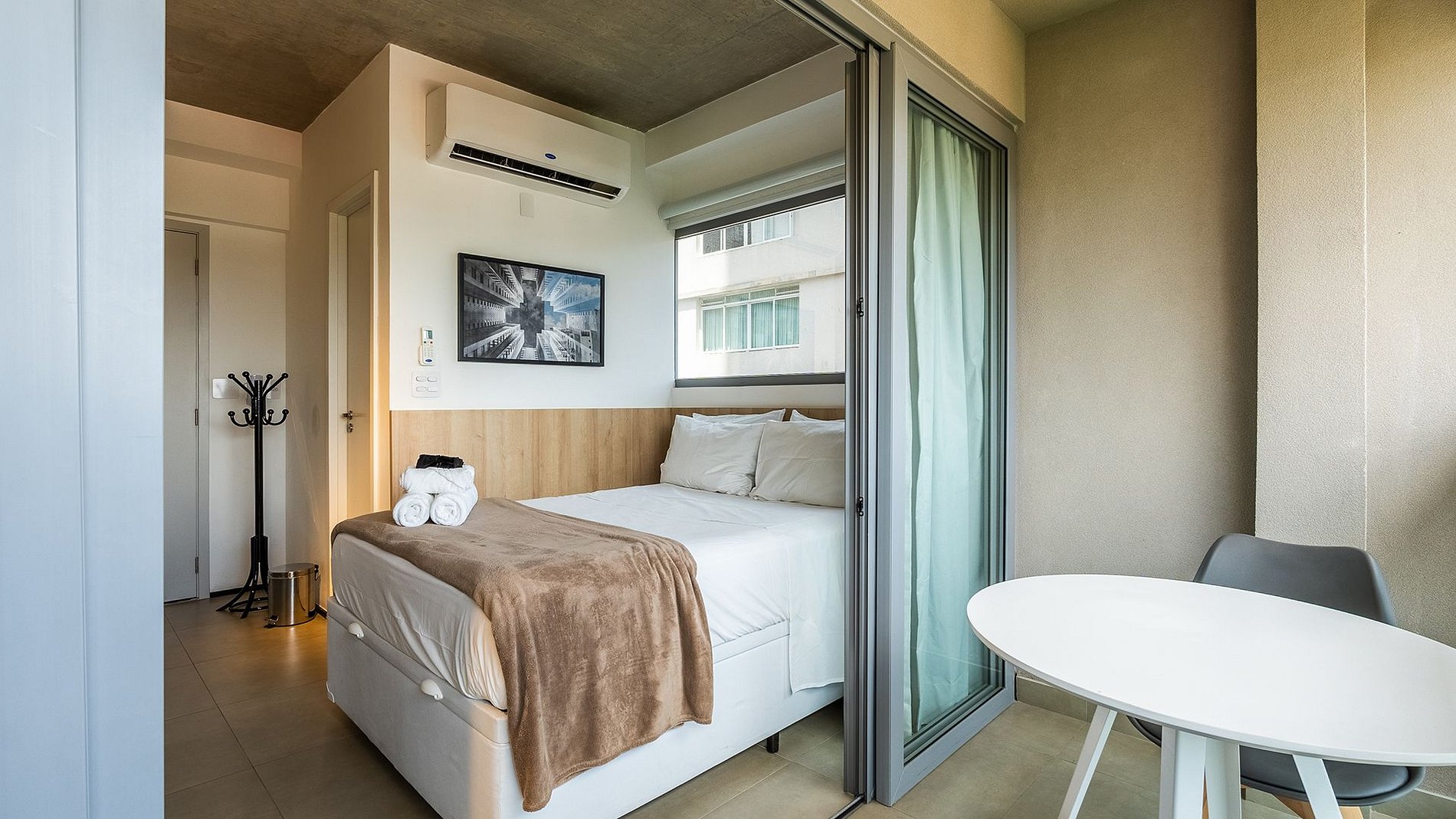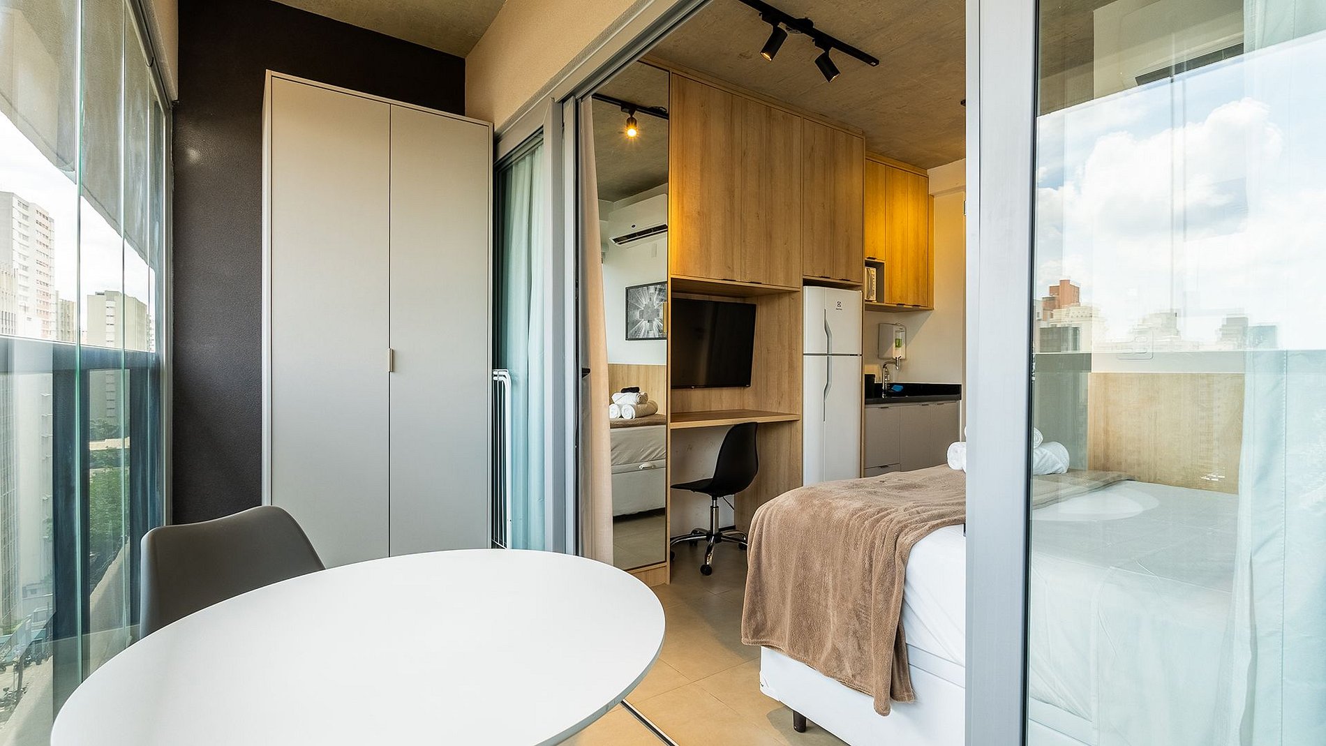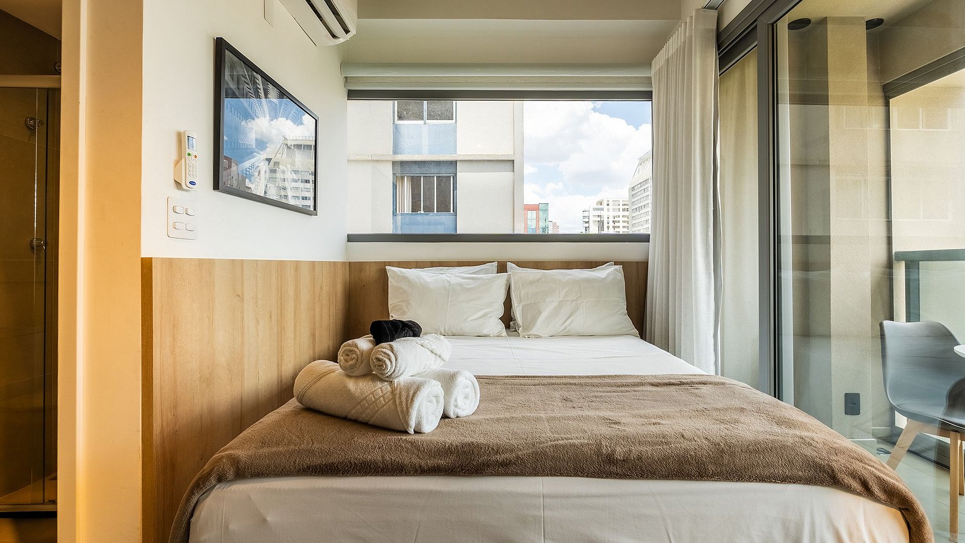 O Studio é um estúdio completo e luxuoso, situado na Alameda Lorena, no coração do Jardim Paulista, próximo à 9 de Julho. Moderno e sofisticado, conta com fechadura eletrônica, ar-condicionado inverter, TV smart, Wi-Fi potente e espaço para home office. A cama de casal possui enxoval completo e de alta qualidade. A cozinha é totalmente equipada, incluindo cafeteira elétrica, liquidificador, sanduicheira e filtro d’água. Destaque para a varanda fechada, que oferece uma vista incrível do bairro. Além disso, dispõe de ferro e tábua de passar para maior comodidade. Possui um secador de cabelo (110v)