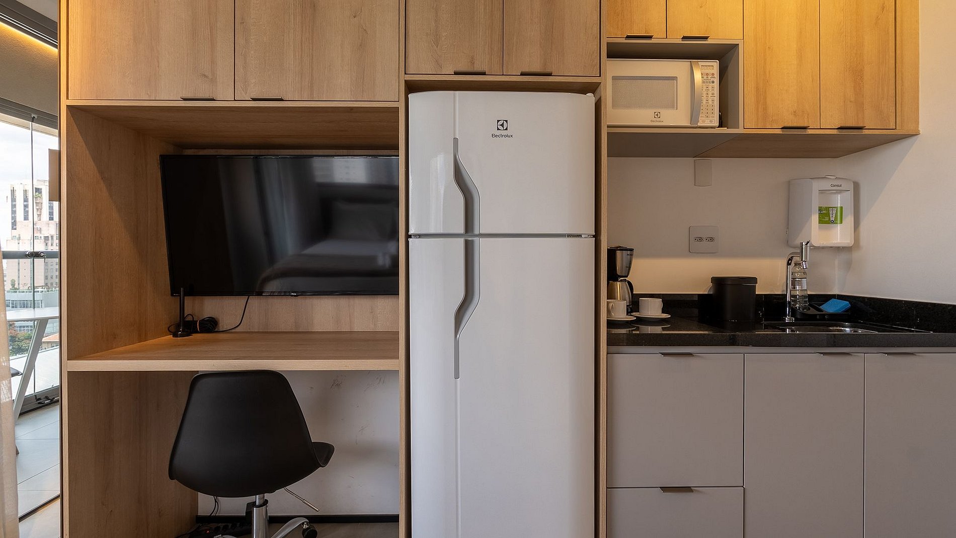 O Studio é um estúdio completo e luxuoso, situado na Alameda Lorena, no coração do Jardim Paulista, próximo à 9 de Julho. Moderno e sofisticado, conta com fechadura eletrônica, ar-condicionado inverter, TV smart, Wi-Fi potente e espaço para home office. A cama de casal possui enxoval completo e de alta qualidade. A cozinha é totalmente equipada, incluindo cafeteira elétrica, liquidificador, sanduicheira e filtro d’água. Destaque para a varanda fechada, que oferece uma vista incrível do bairro. Além disso, dispõe de ferro e tábua de passar para maior comodidade. Possui um secador de cabelo (110v)