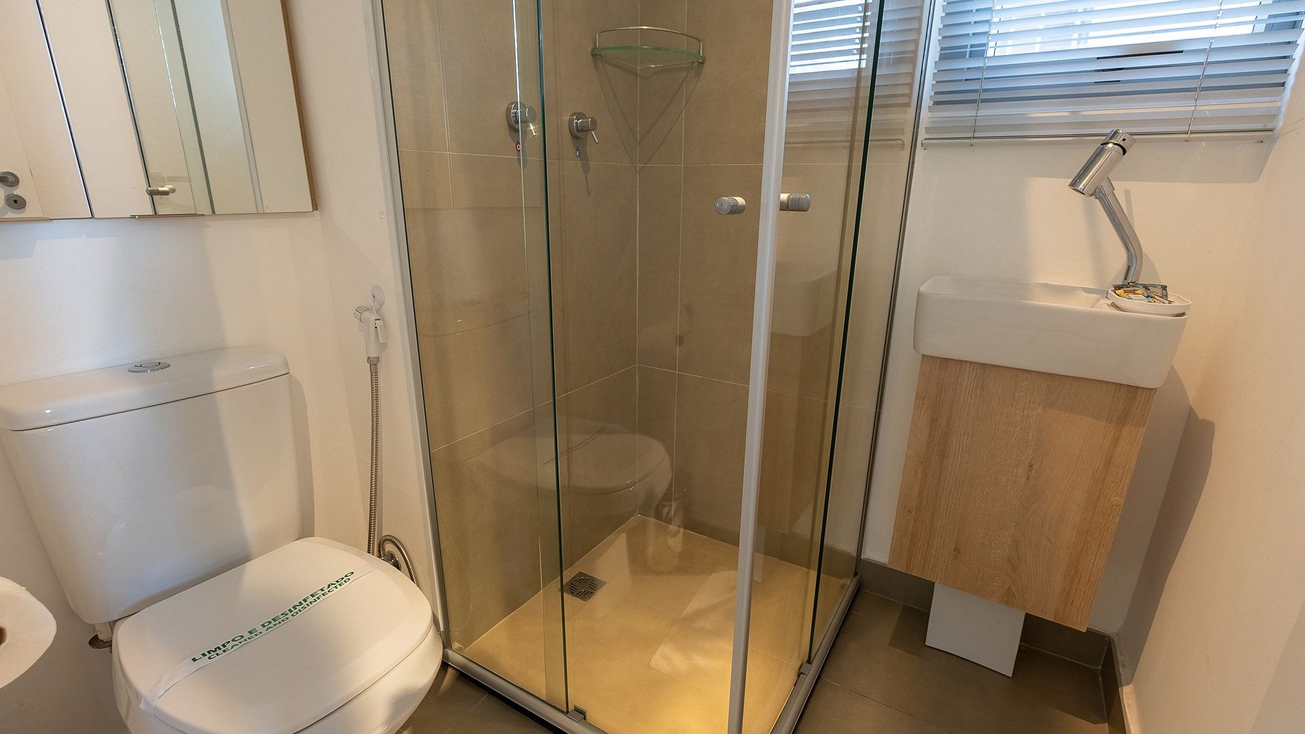Fornecemos enxoval completo para dois hóspedes contando com: 2 travesseiros, 1 manta, 2 lençóis, 2 toalhas de banho, 2 de rosto e 1 toalha de piso. Há possibilidade de troca de enxoval mediante solicitação antecipada e com custo adicional.