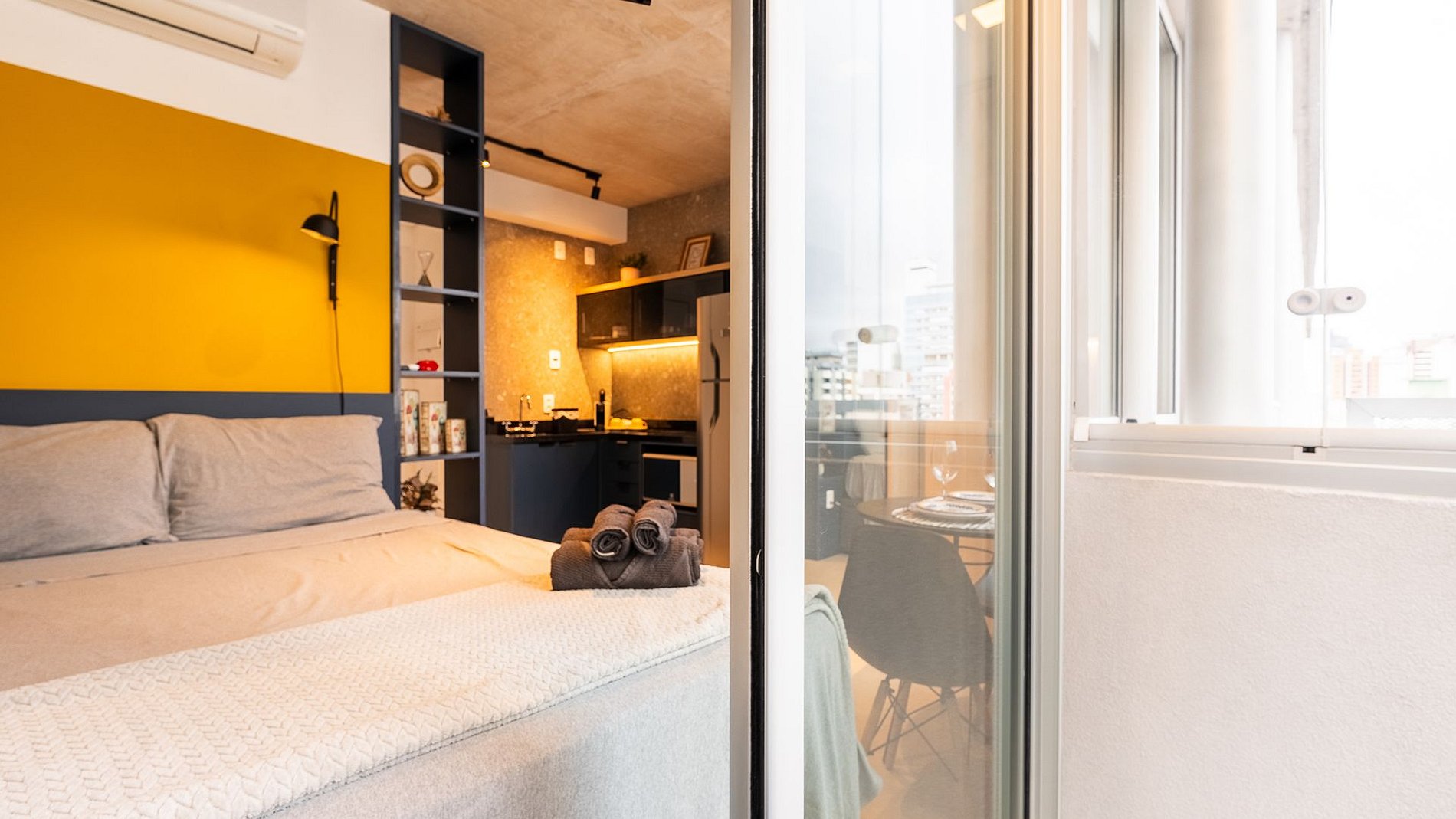 Estúdio moderno e completo com fechadura digital, ar-condicionado inverter, Wi-Fi, TV 50” com canais abertos e fechados, cama de casal com enxoval, cozinha equipada com cafeteira eletrica, secador, steamer e varanda com vista para a Rua Frei Caneca. Conforto, praticidade e estilo em uma das melhores localizações de SP.
