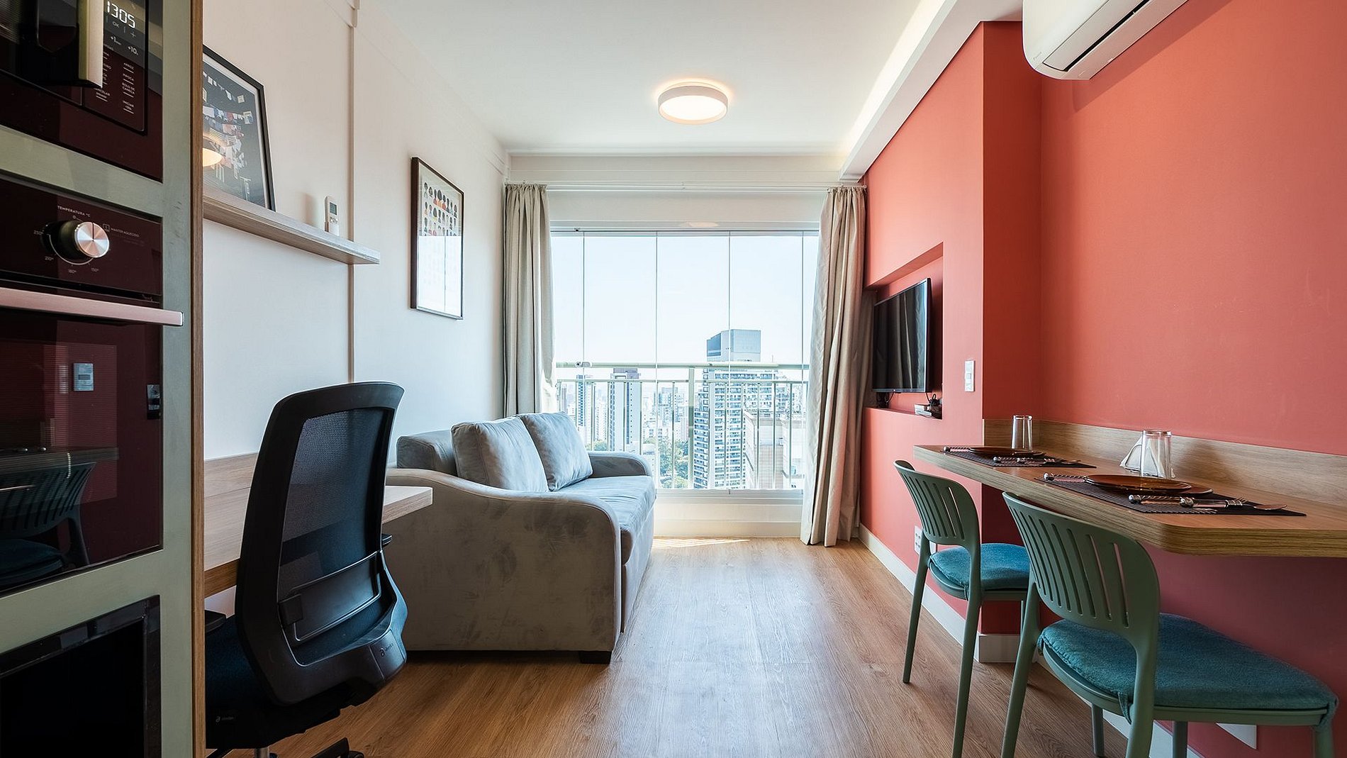 Estúdio no 22º andar, próximo à Estação Paraíso — completo, moderno e super aconchegante! Conta com fechadura eletrônica, ar-condicionado inverter, Wi-Fi, sofá confortável, espaço para home office, TV com canais abertos e fechados, cama queen com enxoval completo, cozinha equipada com utensílios, cafeteira e liquidificador, além de banheiro completo. Destaque para o ferro e secador, um diferencial para sua praticidade. Varanda linda com isolamento acústico para relaxar com conforto.