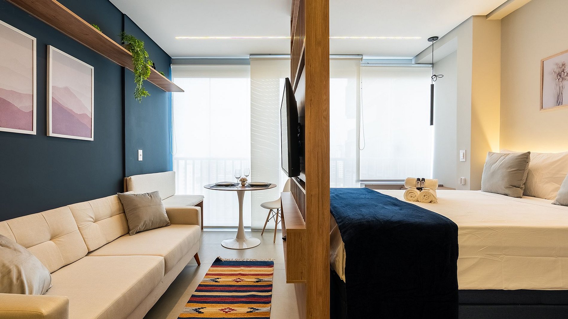 Studio magnífico com varanda integrada e uma vista incrivel na Vila Mariana! Equipado com fechadura eletrônica, ar-condicionado, Wi-Fi rápido, espaço para home office, sofá, TV 50” com suporte rotativo, mesa de jantar, cama casal com enxoval premium, cozinha completa com Nespresso, liquidificador e chaleira elétrica. Banheiro com ducha quente, secador e steamer. Modernidade, conforto e estilo em um só lugar.