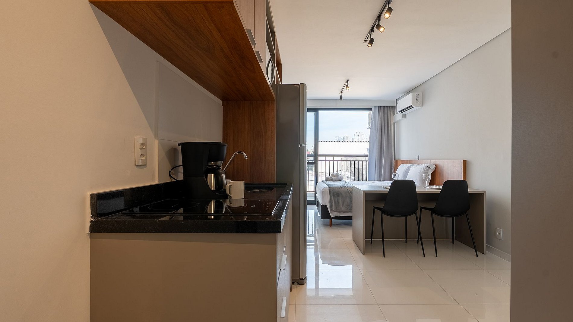 Studio moderno no Tatuapé, a poucos minutos da estação Carrão. Conta com fechadura eletrônica, ar-condicionado, TV de 50”, Wi-Fi e espaço para home office. Totalmente mobiliado, inclui cama de casal com enxoval, cortina blackout, cozinha completa com utensílios e varanda aberta, garantindo conforto e praticidade em uma das regiões mais valorizadas de São Paulo.