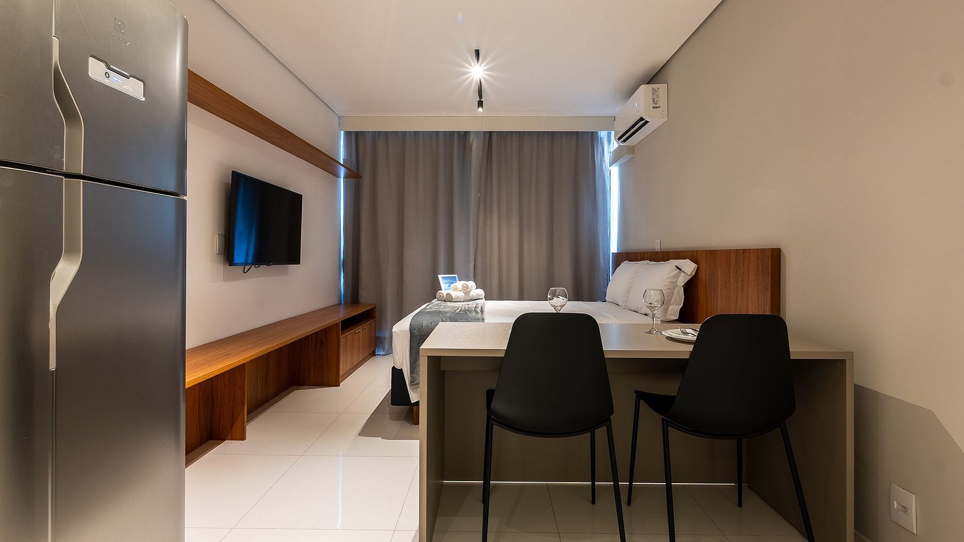 Studio moderno no Tatuapé, a poucos minutos da estação Carrão. Conta com fechadura eletrônica, ar-condicionado, TV de 50”, Wi-Fi e espaço para home office. Totalmente mobiliado, inclui cama de casal com enxoval, cortina blackout, cozinha completa com utensílios e varanda aberta, garantindo conforto e praticidade em uma das regiões mais valorizadas de São Paulo.