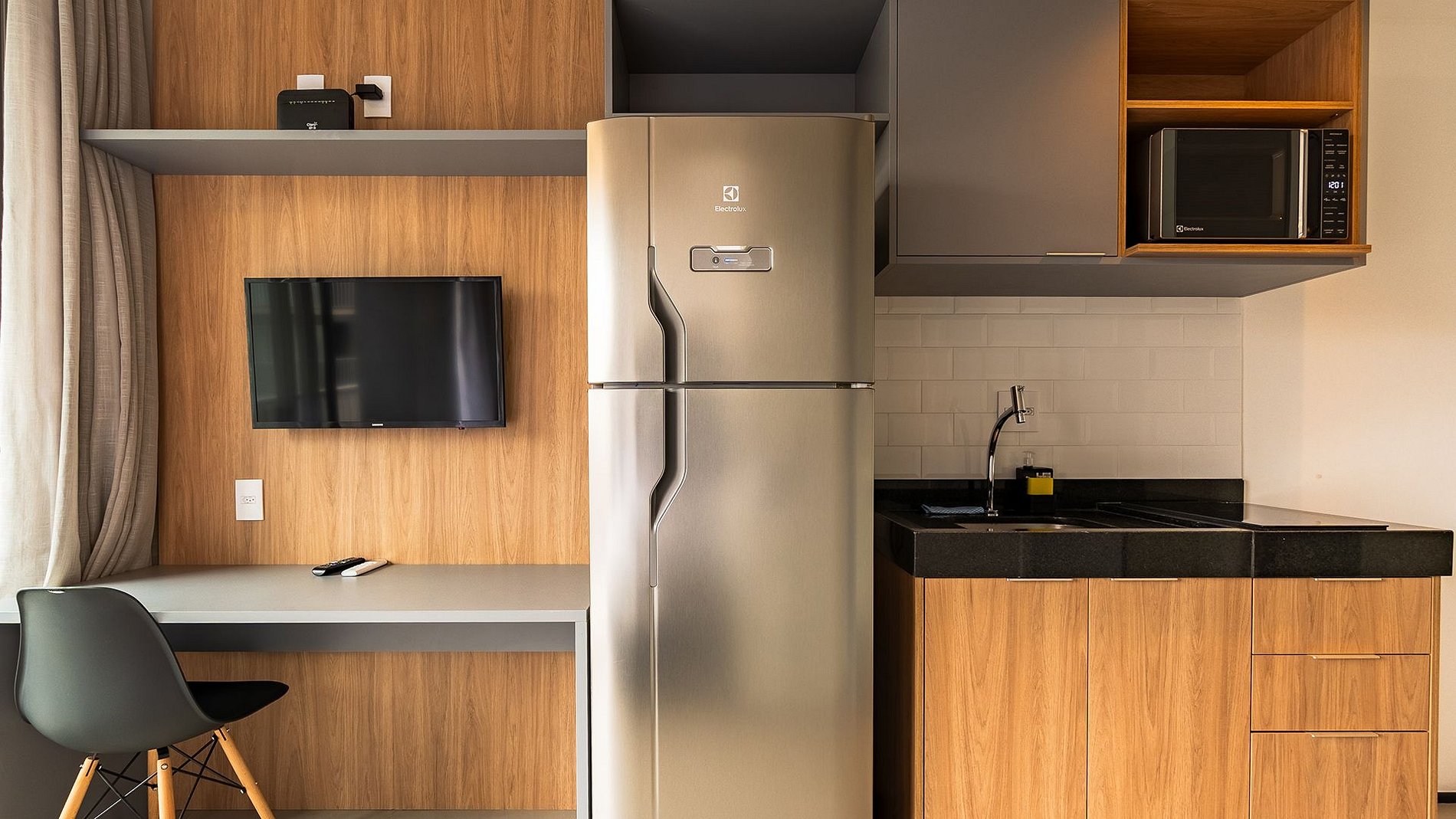 No 2º andar, ao lado do metrô Vila Mariana e Ana Rosa, este estúdio completo é puro conforto: fechadura eletrônica, ar-condicionado, Wi-Fi, home office, cama de casal com enxoval premium e cortina blackout. Cozinha com utensílios, cafeteira, utensílios diversos e uma varanda com vista para a cidade.