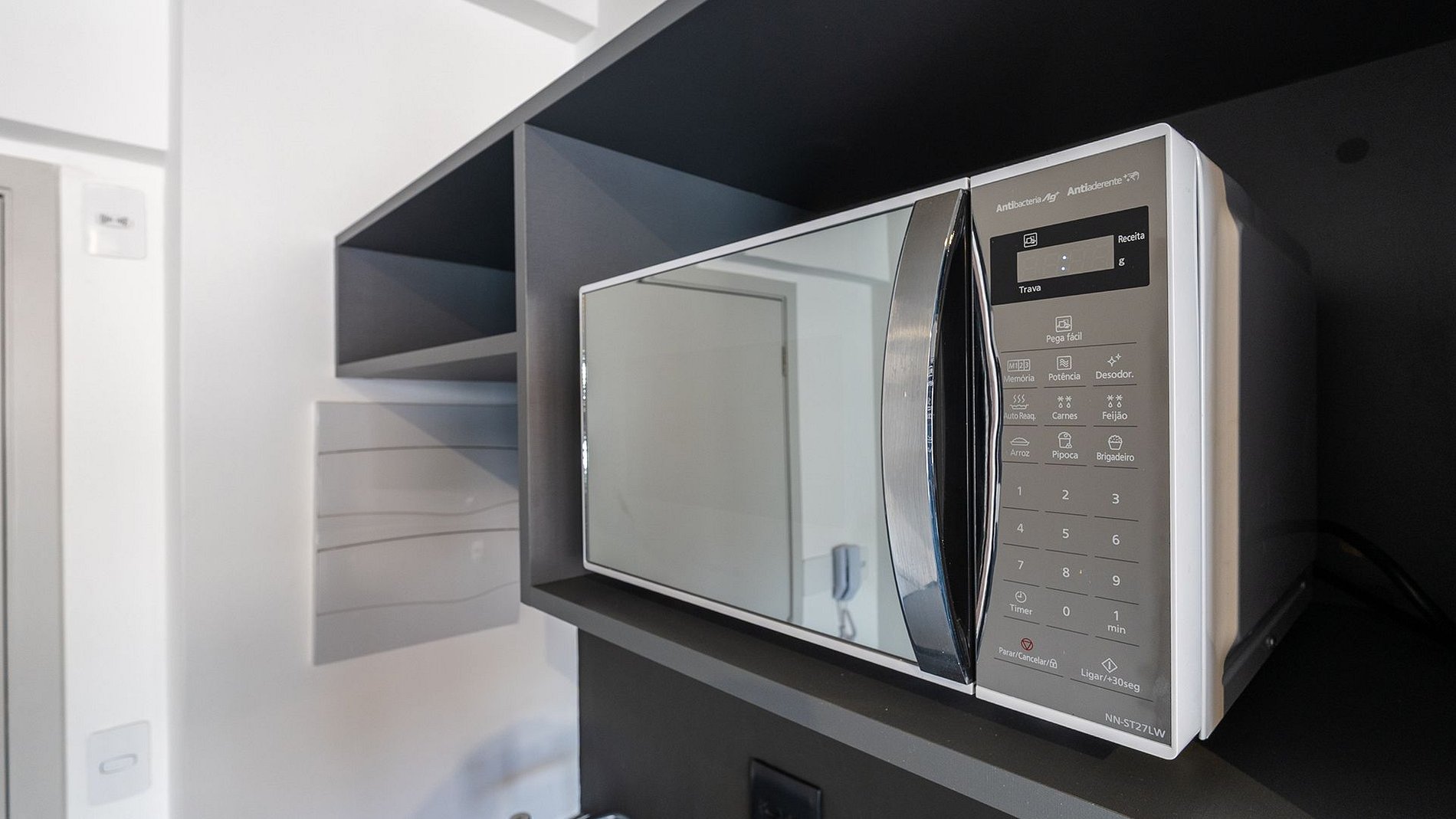 O Studio é totalmente completo, moderno e luxuosos. Localizado no ultimo andar cobertura, com uma vista maravilhosa para a cidade de SP, contendo fechadura eletrônica, ar condicionado inverter, Wi-fi, espaço para home office, Tv com canais fechados, cama de casal com todo enxoval confortavél, cozinha completa com filtro embutido na torneira, forno eletrico, fogão, frigobar, cafeteira e todos os utensilios necessários.
