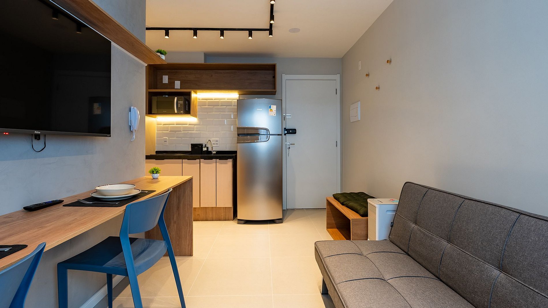 Um espaço pensado para oferecer conforto, praticidade e tornar a estadia dos hóspedes agradável e acolhedora. Com áreas comuns modernas e prática é um Studio totalmente completo.