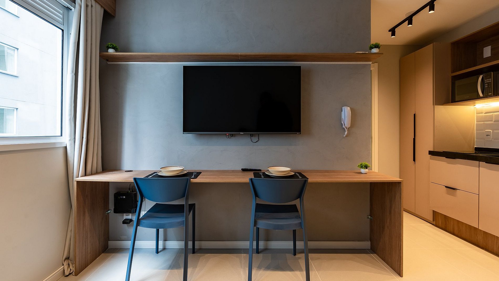Um espaço pensado para oferecer conforto, praticidade e tornar a estadia dos hóspedes agradável e acolhedora. Com áreas comuns modernas e prática é um Studio totalmente completo