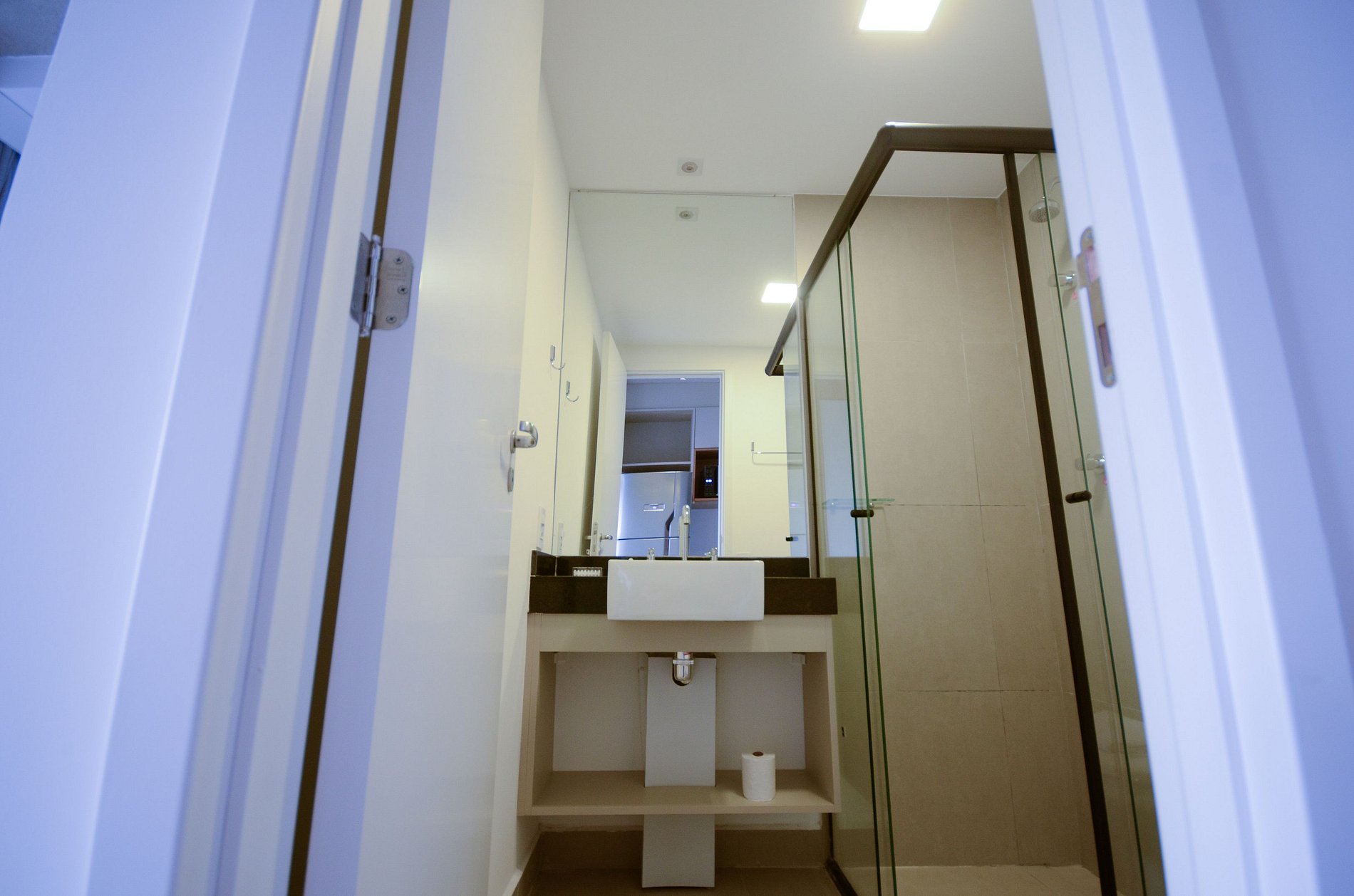 Studio moderno no Brooklin, a apenas 500m da estação Brooklin. Conta com fechadura eletrônica, ar-condicionado, TV, espaço para home office e varanda aberta com vista incrível da cidade. A cozinha é completa, equipada com todos os utensílios para o dia a dia, e o banheiro possui acabamento moderno. Ideal para quem busca conforto, praticidade e uma excelente localização em São Paulo.