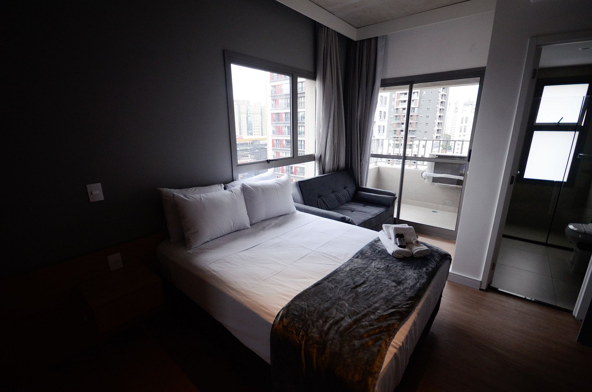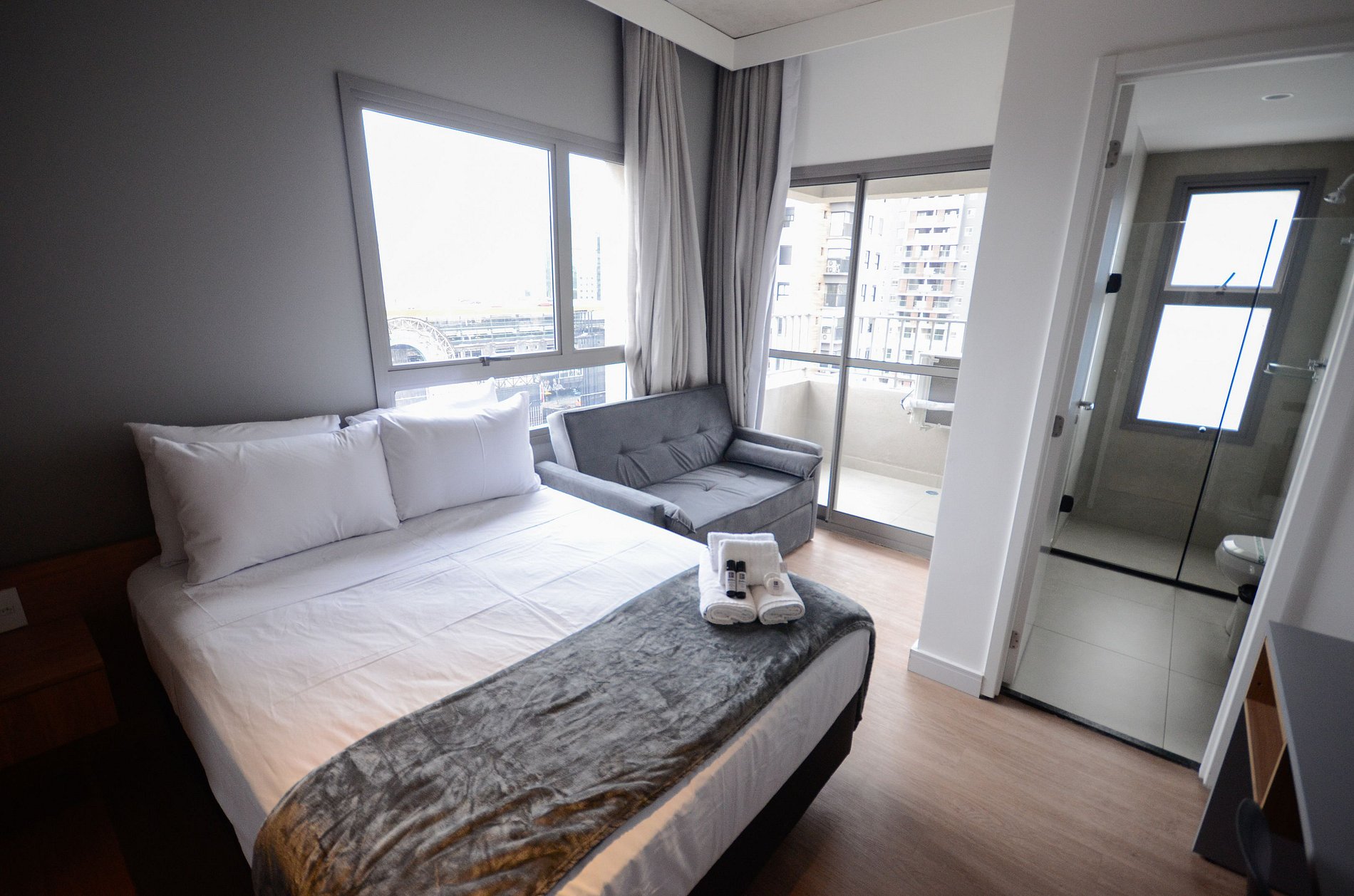 Studio completo e confortável, a poucos distancia da estação Eucalipto. Conta com fechadura eletrônica, ar-condicionado, TV, espaço para home office, sofá e varanda aberta com vista incrível da cidade. A cozinha é completa, equipada com todos os utensílios para o dia a dia, e o banheiro possui acabamento moderno. Ideal para quem busca conforto, praticidade e uma excelente localização em São Paulo.