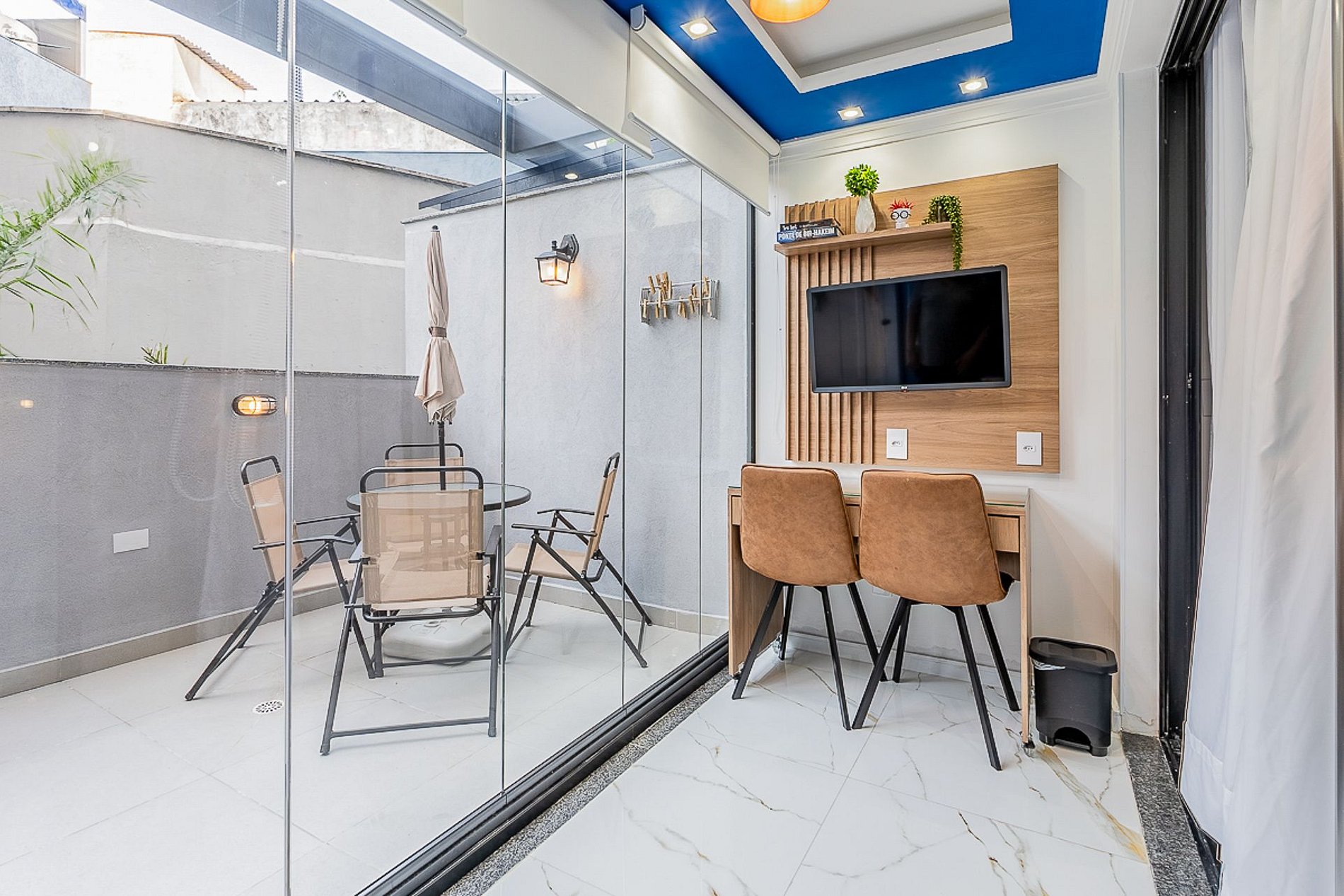 O Studio foi totalmente criado para quem procura espaço, conforto e modernidade, com uma localização previlegiada ao lado do metro Vila Mariana (linha azul), totalmente equipado com fechadura eletrônica, Tv de 40' no quarto com uma cama de casal e enxovais confortáveis, outra TV de 40' na varanda com duas poltronas que vira camas de solteiro, ar condicionado inverter (quente e frio), Wi-Fi, espaço para home office e também local para refeição, cozinha completa com todos os utensilios de cozinhas necessário, cafeteira, sanduicheira, secador de cabelo e um quintal com local para sentar e se acomodar ao ar livre.