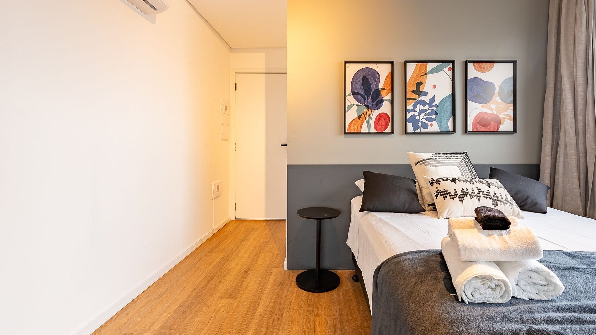 O Studio é totalmente confortável, contém fechadura eletrônica, Tv 40' com canais abertos e fechados, ar condiconado inverter (quente e frio), cortina blackout, cama de casal com todo enxoval completo, espaço para home office, cozinha com todos utensilios necessários, filtro de água embutido na torneira, cafeteira, secador, ferro e uma varanda com uma vista linda para a região de SP.