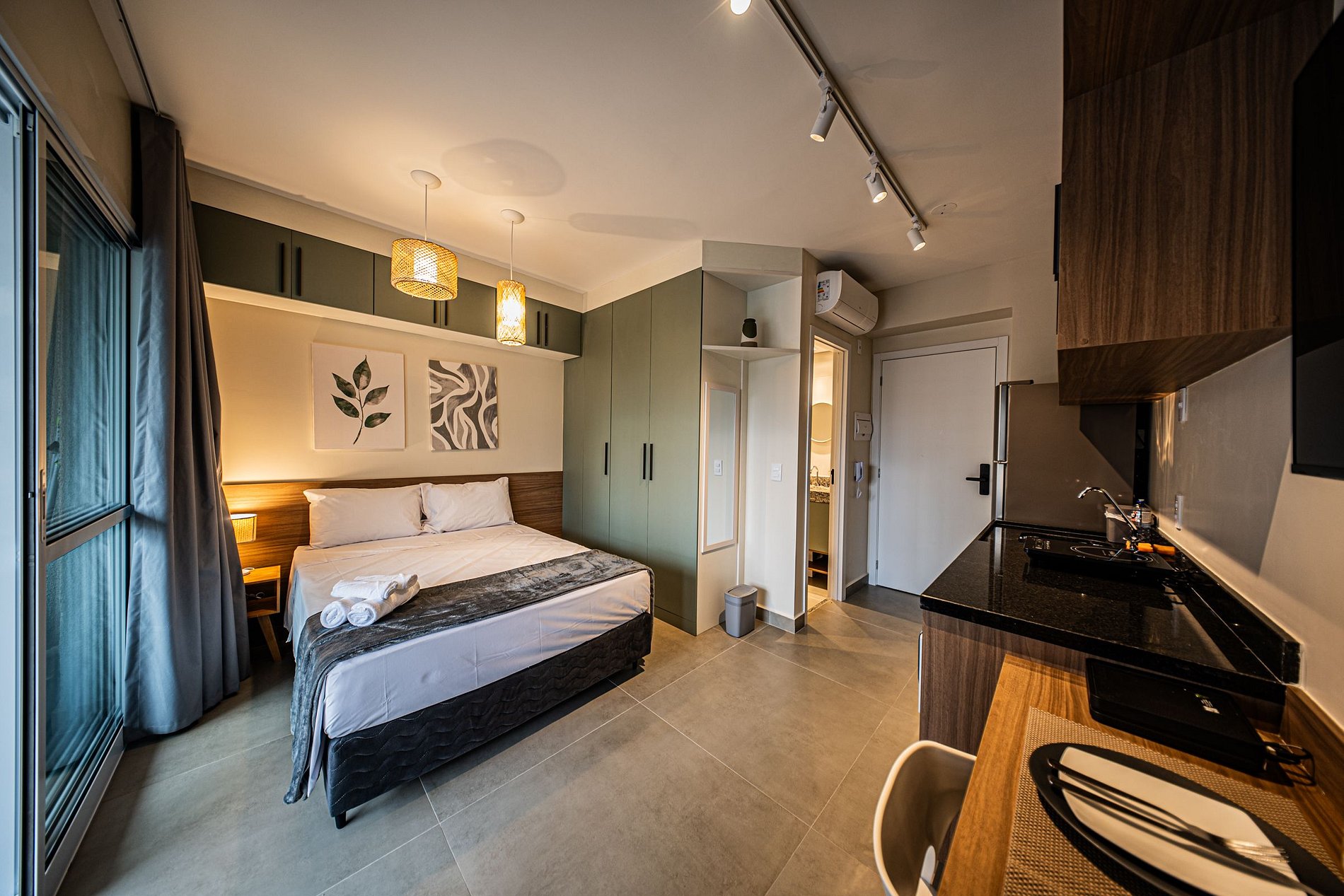 No 7º andar, um estúdio lindo, moderno e confortável espera por você! Com fechadura eletrônica, ar-condicionado inverter, Wi-Fi potente e TV com canais abertos, seu conforto é garantido. Relaxe com enxoval completo, trabalhe no espaço home office ou aproveite a cozinha totalmente equipada. Além disso, a unidade conta com secador, ferro e uma charmosa varanda.