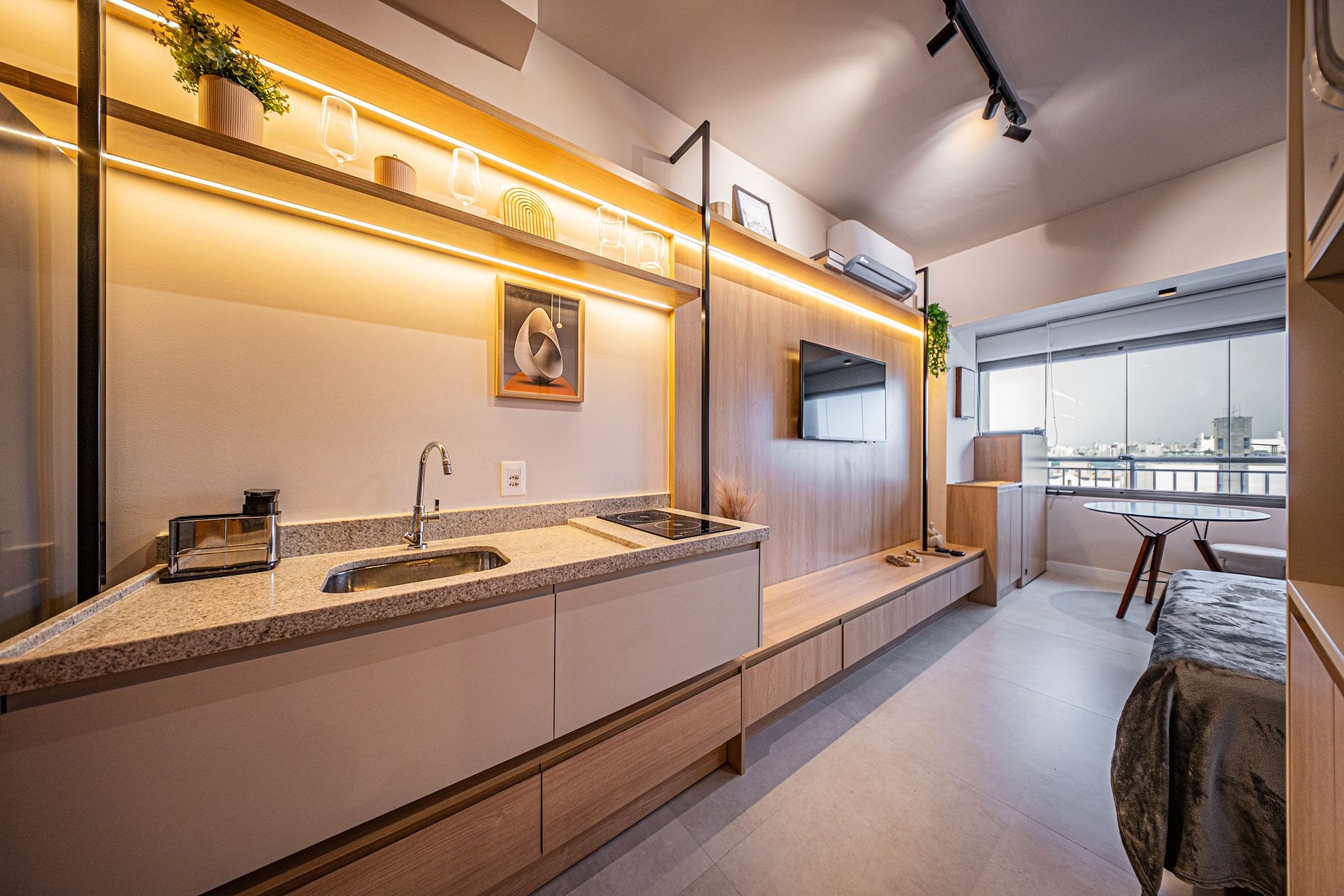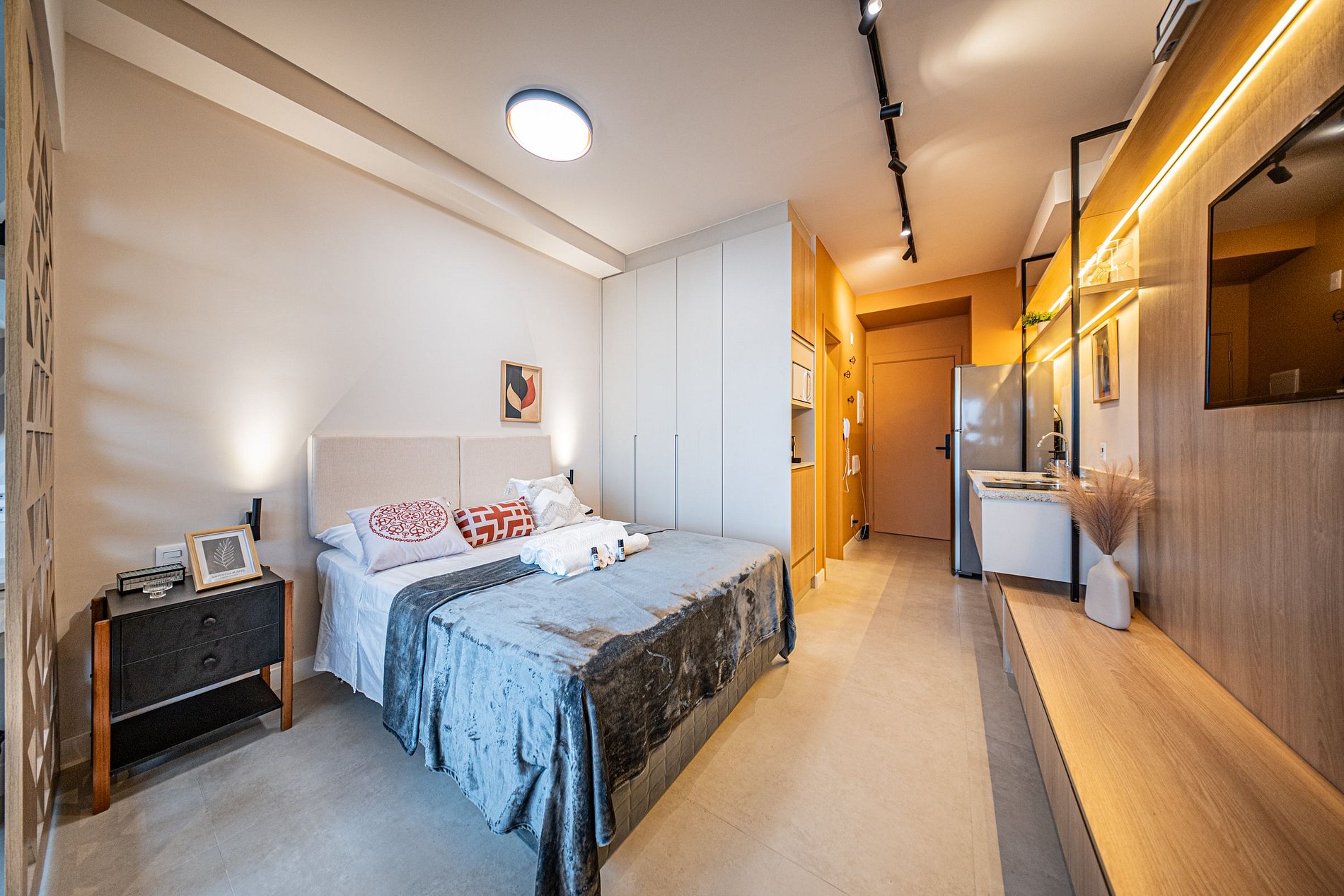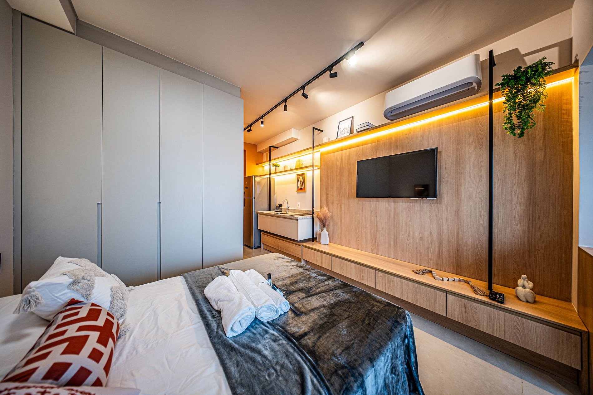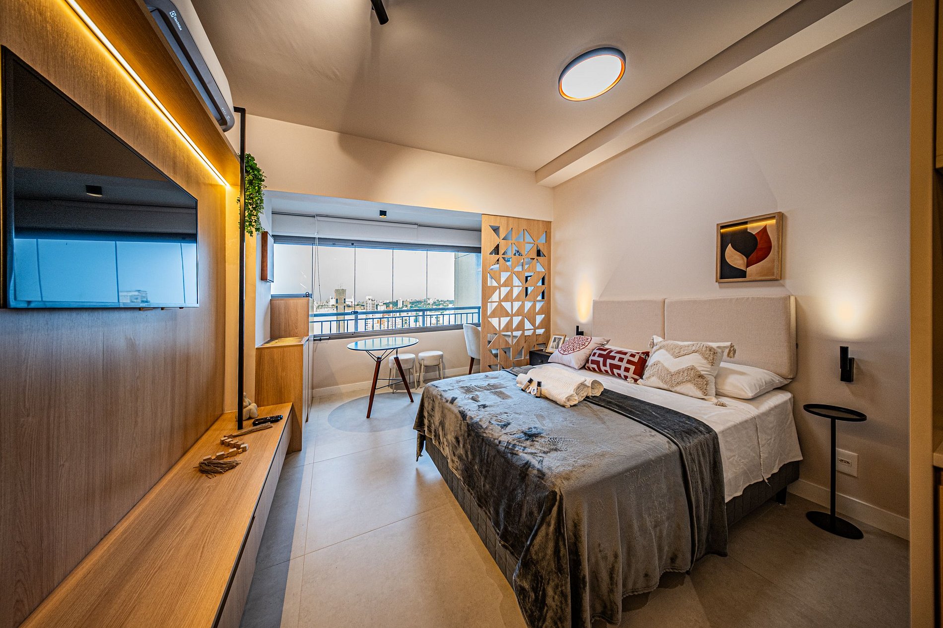 Cada detalhe foi pensado para oferecer conforto e praticidade. O ambiente é moderno, funcional e silencioso, perfeito para relaxar ou trabalhar com tranquilidade. Um espaço completo, elegante e acolhedor para que você se snta em casa desde o primeiro momento.