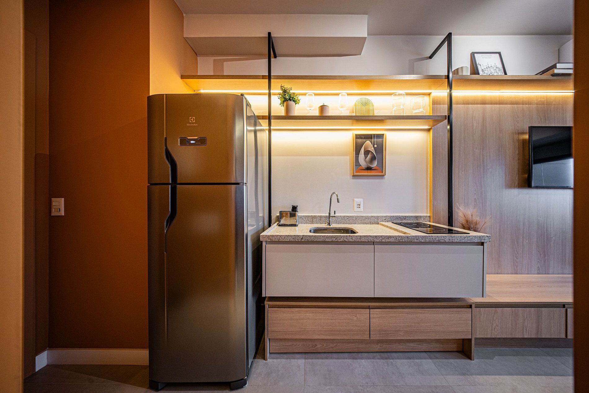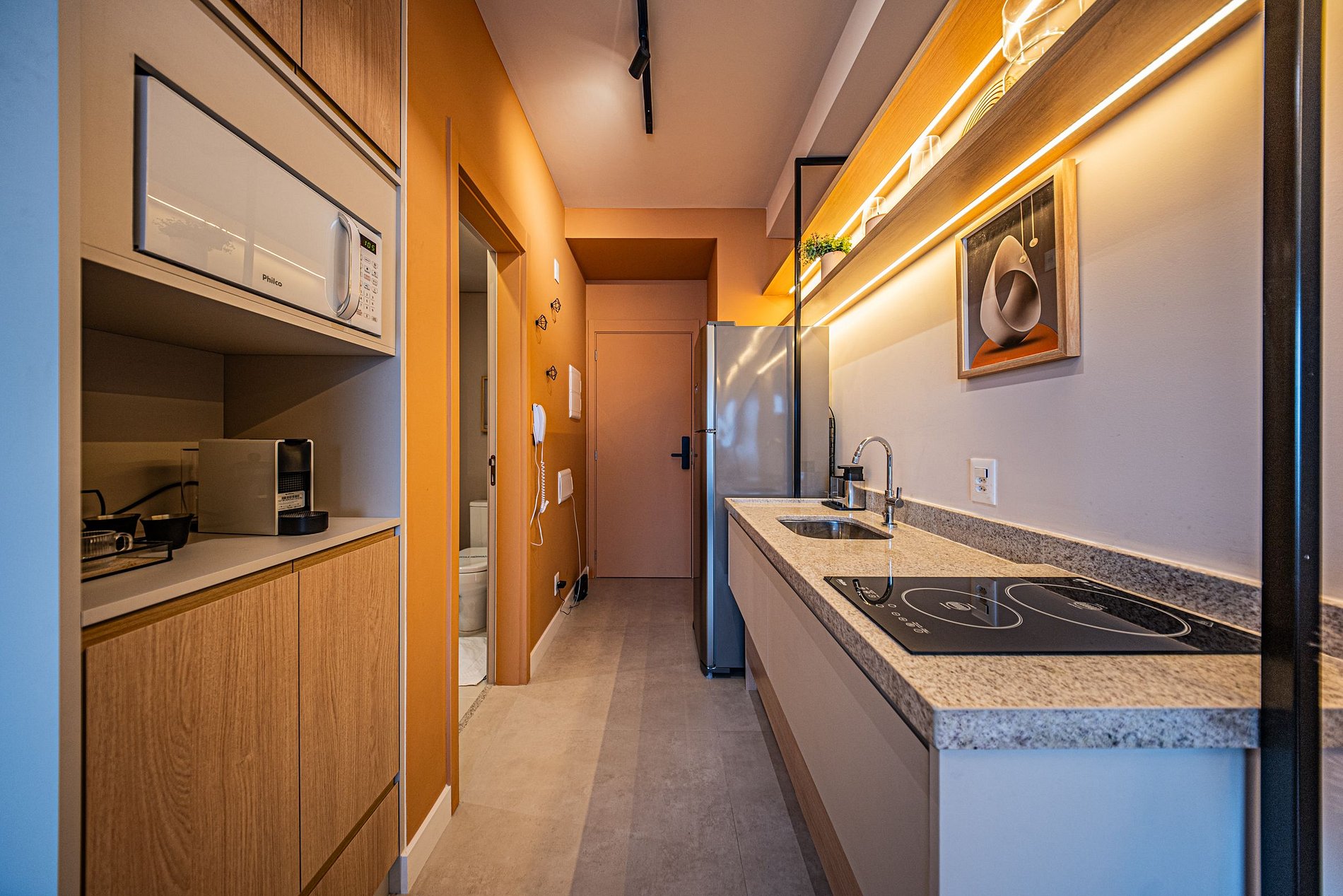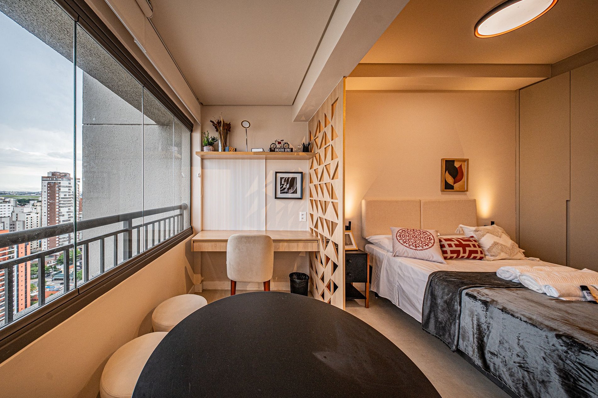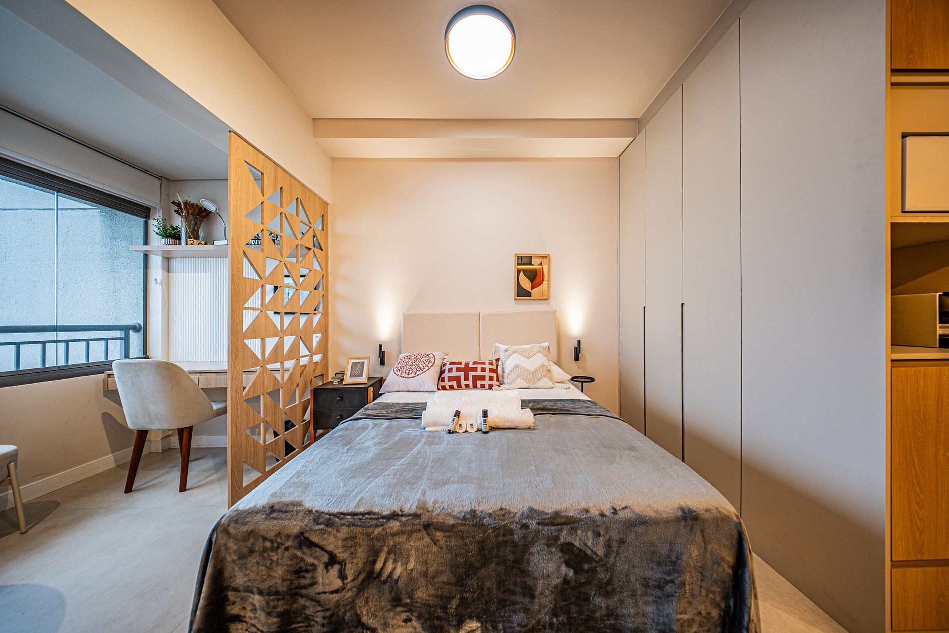 Cada detalhe foi pensado para oferecer conforto e praticidade. O ambiente é moderno, funcional e silencioso, perfeito para relaxar ou trabalhar com tranquilidade. Um espaço completo, elegante e acolhedor para que você se snta em casa desde o primeiro momento.