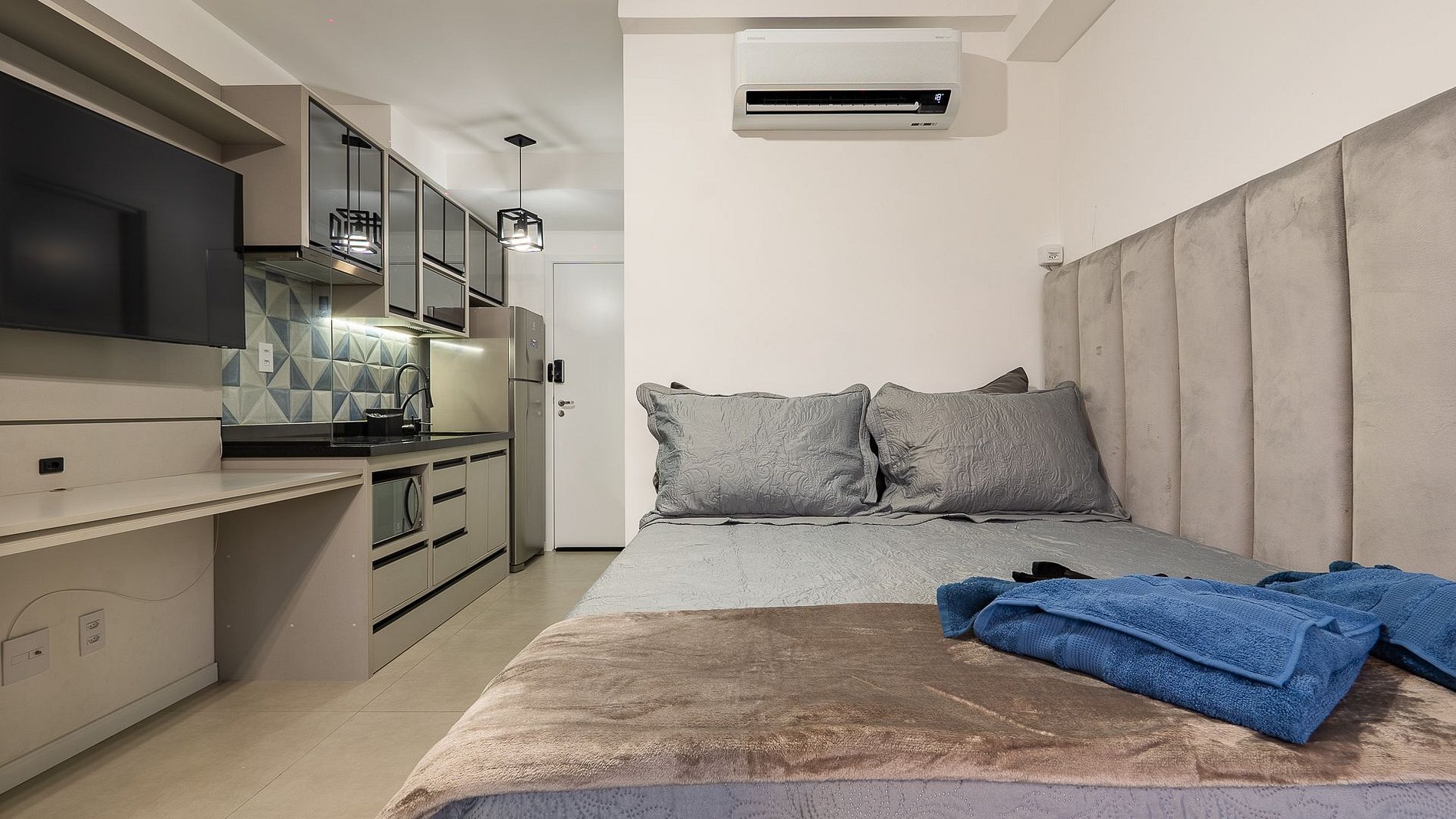 O Studio foi criado especialmente para acomodação de 3 pessoas. Totalmente previlegiado localizado ao lado da estação Vila Mariana linha azul do metro, é completo com fechadura eletrônica, Tv 45', ar condicionado inverter, Wi-fi de 500mega, espaço para home office e local para refeição, cama de casal e uma acama auxiliar abaixo com enxoval completo, cozinha completa com todos os utensilios, cafeteira Nespresso, secador de cabelo e uma varanda incrivel com uma vista impecável para a cidade de SP.