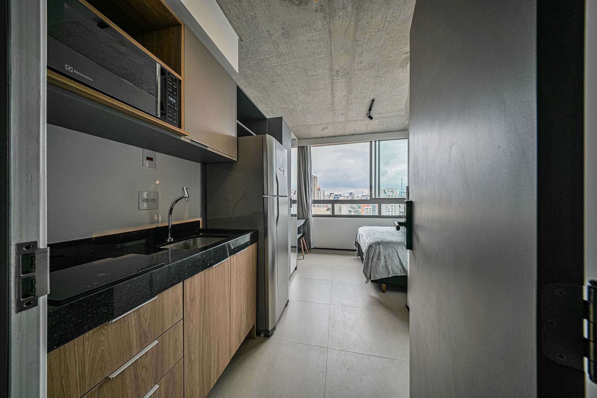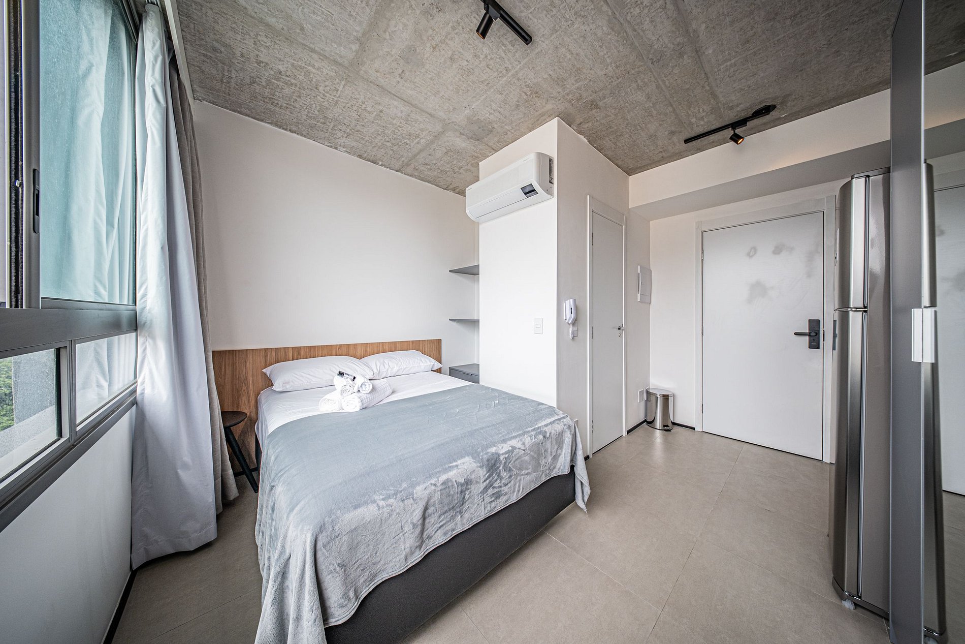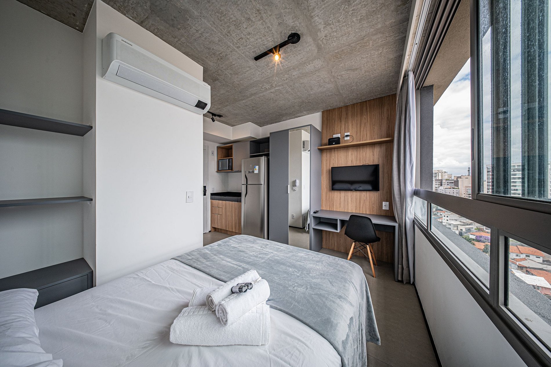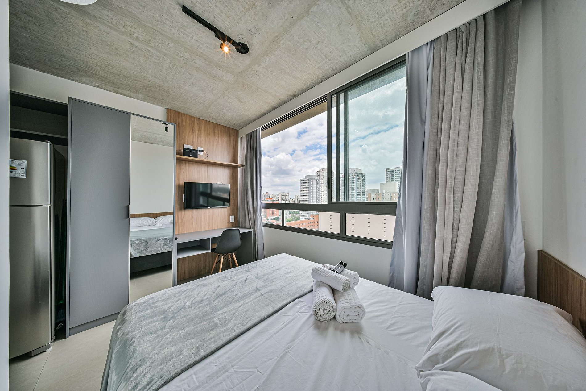 Estúdio completo no 14º andar, próximo às estações Ana Rosa e Vila Mariana. Possui fechadura eletrônica, ar-condicionado, Wi-Fi e TV. Conta com cama de casal com enxoval premium, cozinha equipada com todos os utensílios e banheiro com ducha forte e secador de cabelo. O espaço também dispõe de cortina blackout e uma linda vista para a cidade, garantindo conforto e praticidade durante a estadia.