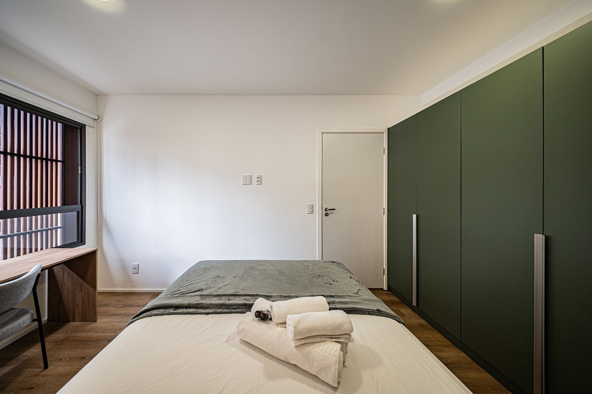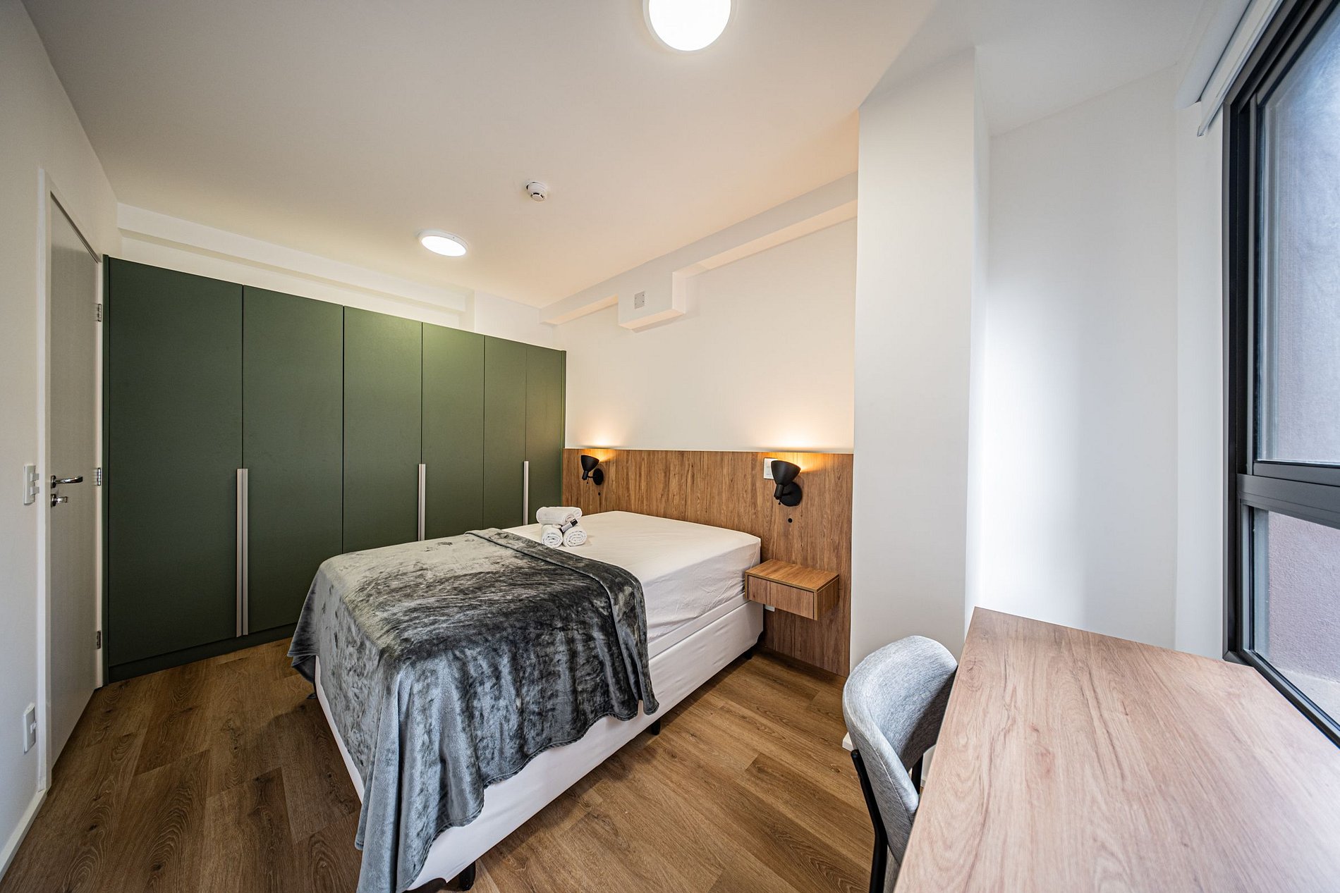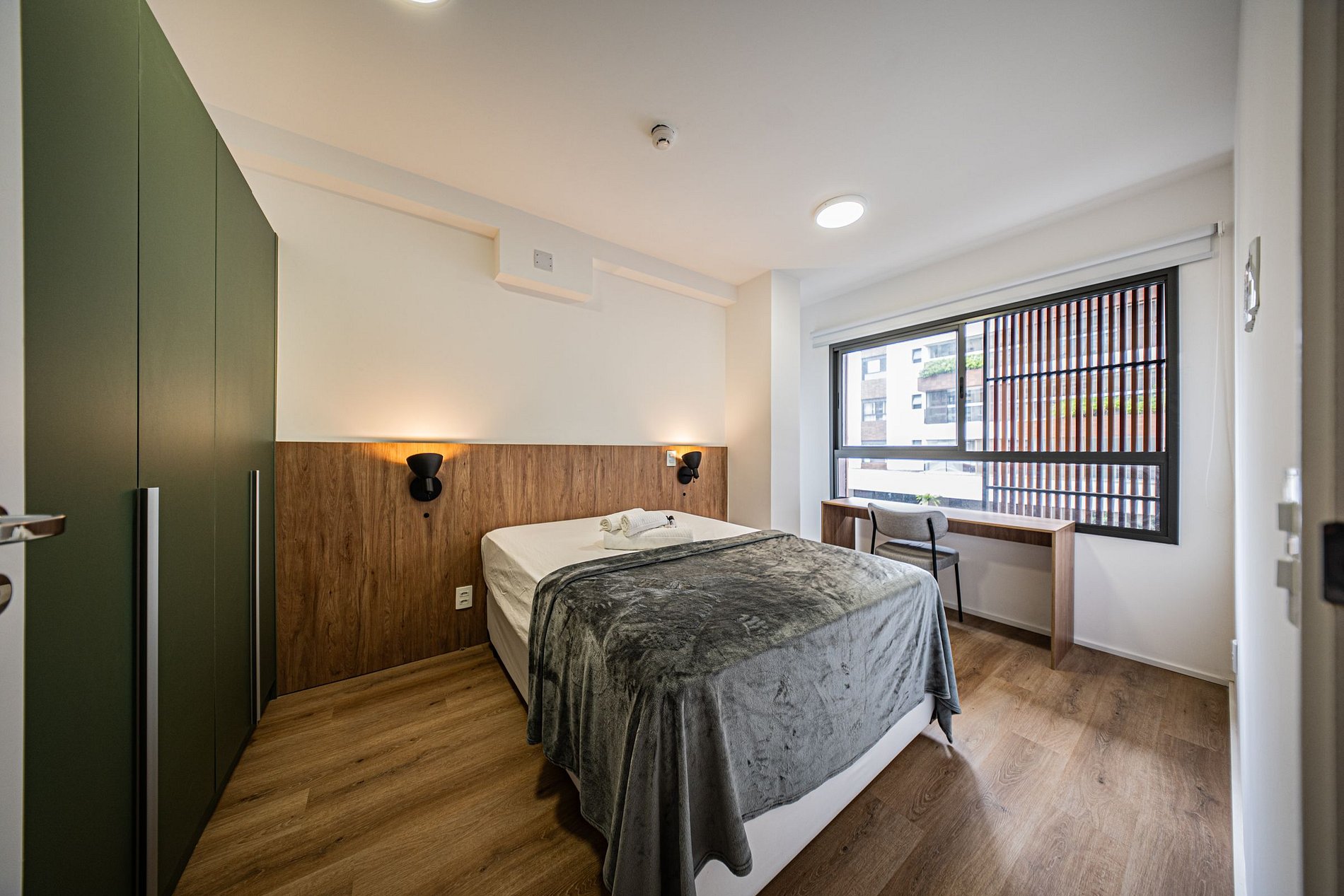Hóspedes têm acesso à academia, lavanderia compartilhada e espaço de coworking, respeitando os horários de funcionamento de cada área. O prédio conta com portaria 24 horas, garantindo mais segurança e comodidade durante toda a estadia.