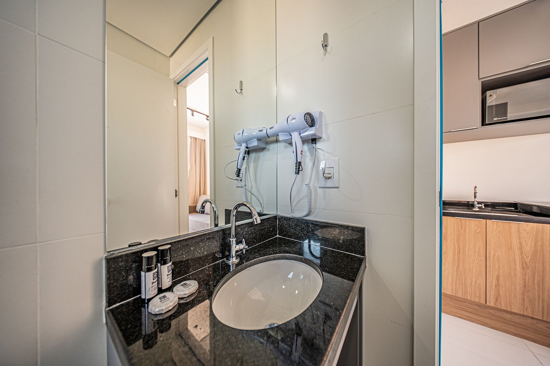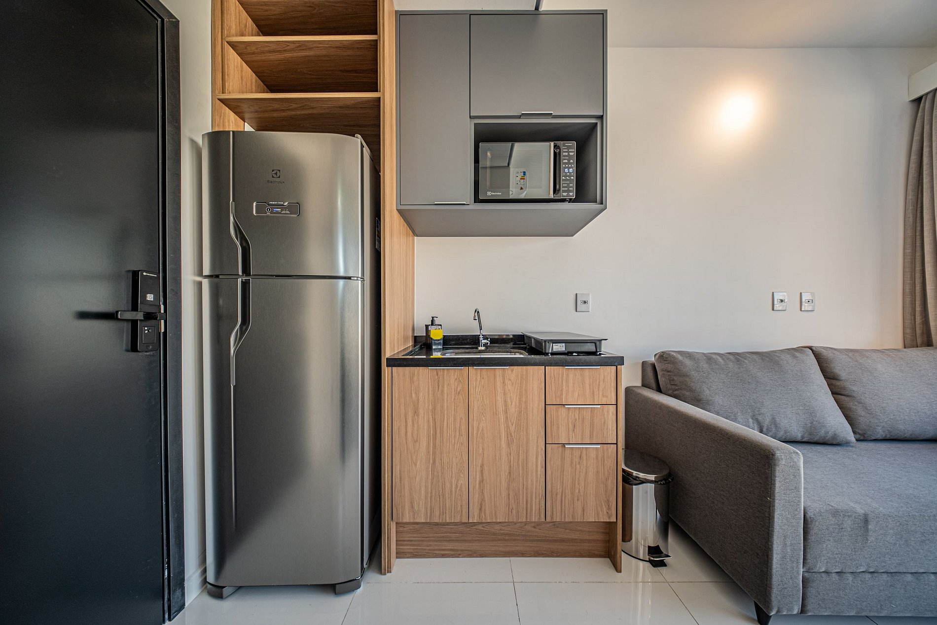 Hóspedes têm acesso à piscina, academia e lavanderia compartilhada, respeitando os horários de funcionamento de cada área. O prédio conta com portaria eletrônica 24 horas, garantindo mais segurança e comodidade durante toda a estadia.