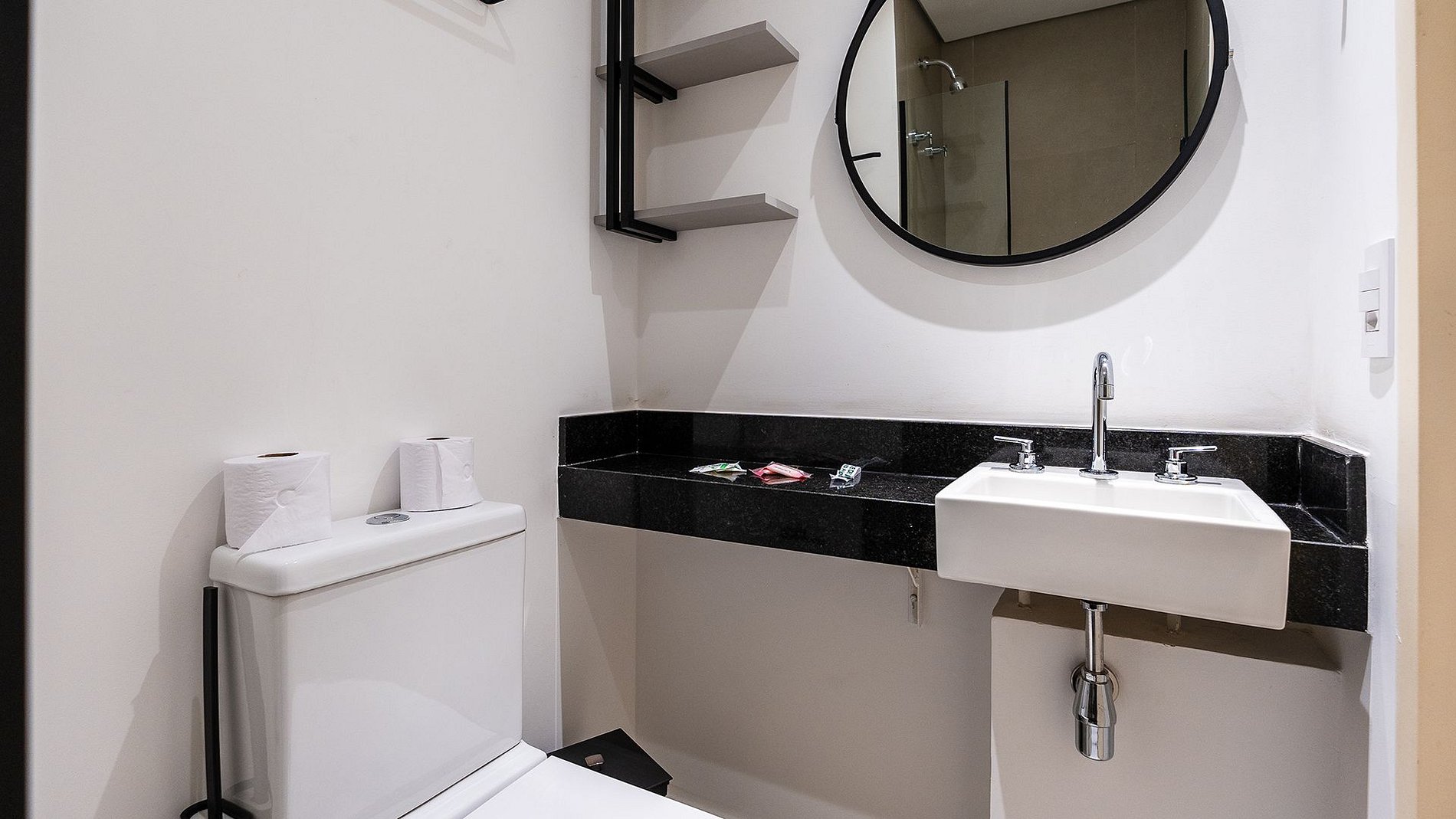 O condomínio conta com lounge de recepção; Academia, Coworking, Rooftop com piscina; Lavanderia compartilhada; Churrasqueira, loungue bar e cozinha compartilhada.