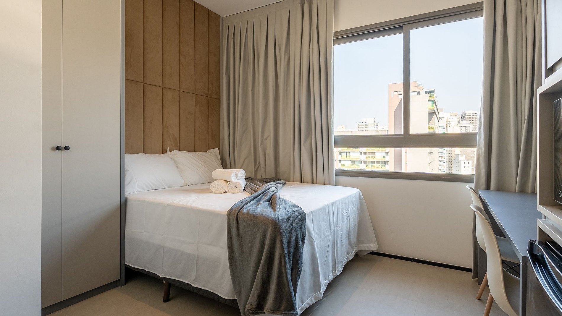 O Studio foi criado para quem busca conforto e praticidade, composto por fechadura eletronica, ar condicionado, cozinha completa com todos os utensilios, Wi-fi, cama de casal com todo enxoval completo, espaço para home office e Tv 40'.