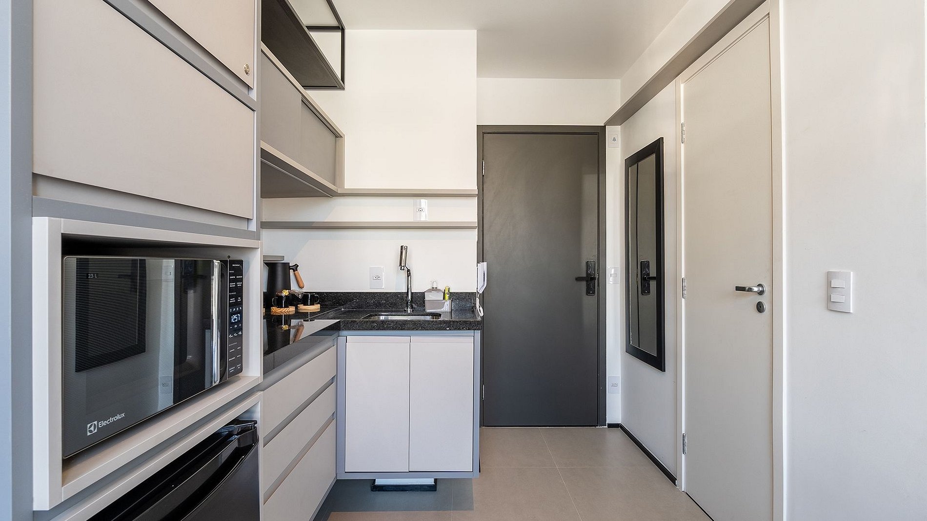 O condomínio conta com lounge de recepção; Academia, Coworking, Rooftop com piscina; Lavanderia compartilhada; Churrasqueira, loungue bar e cozinha compartilhada.