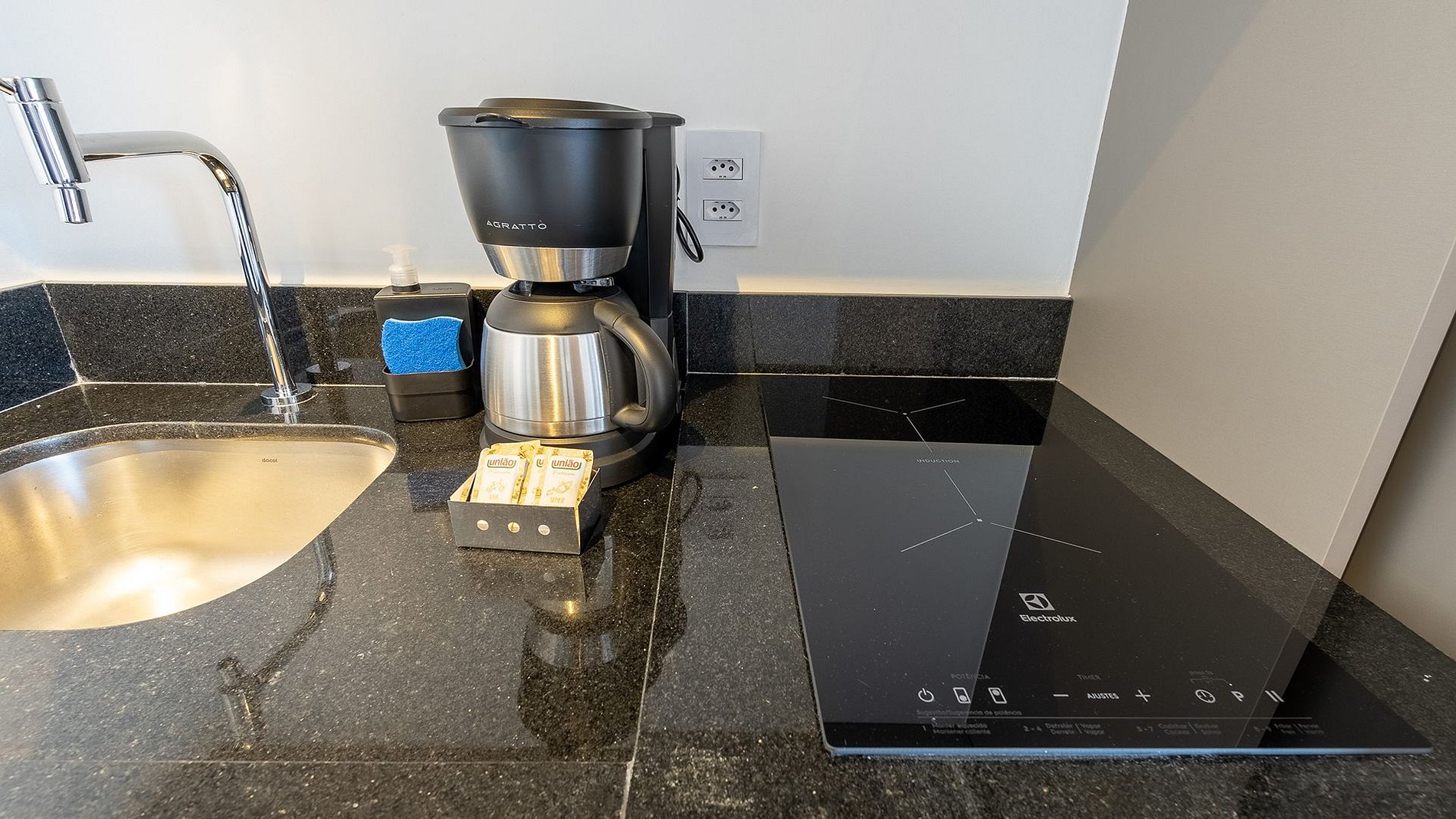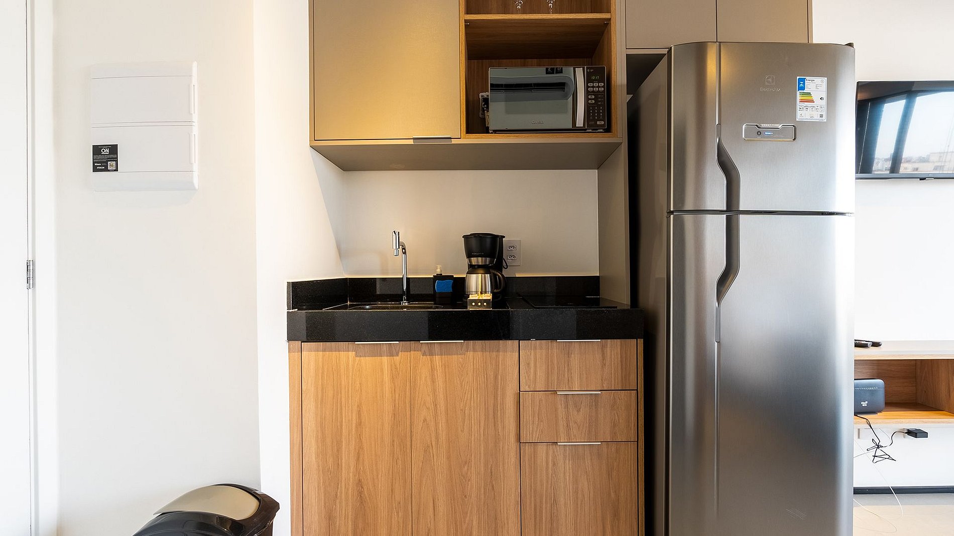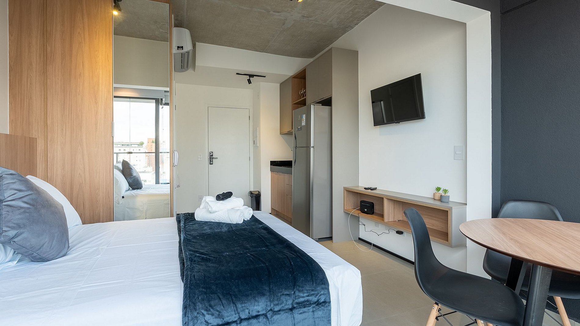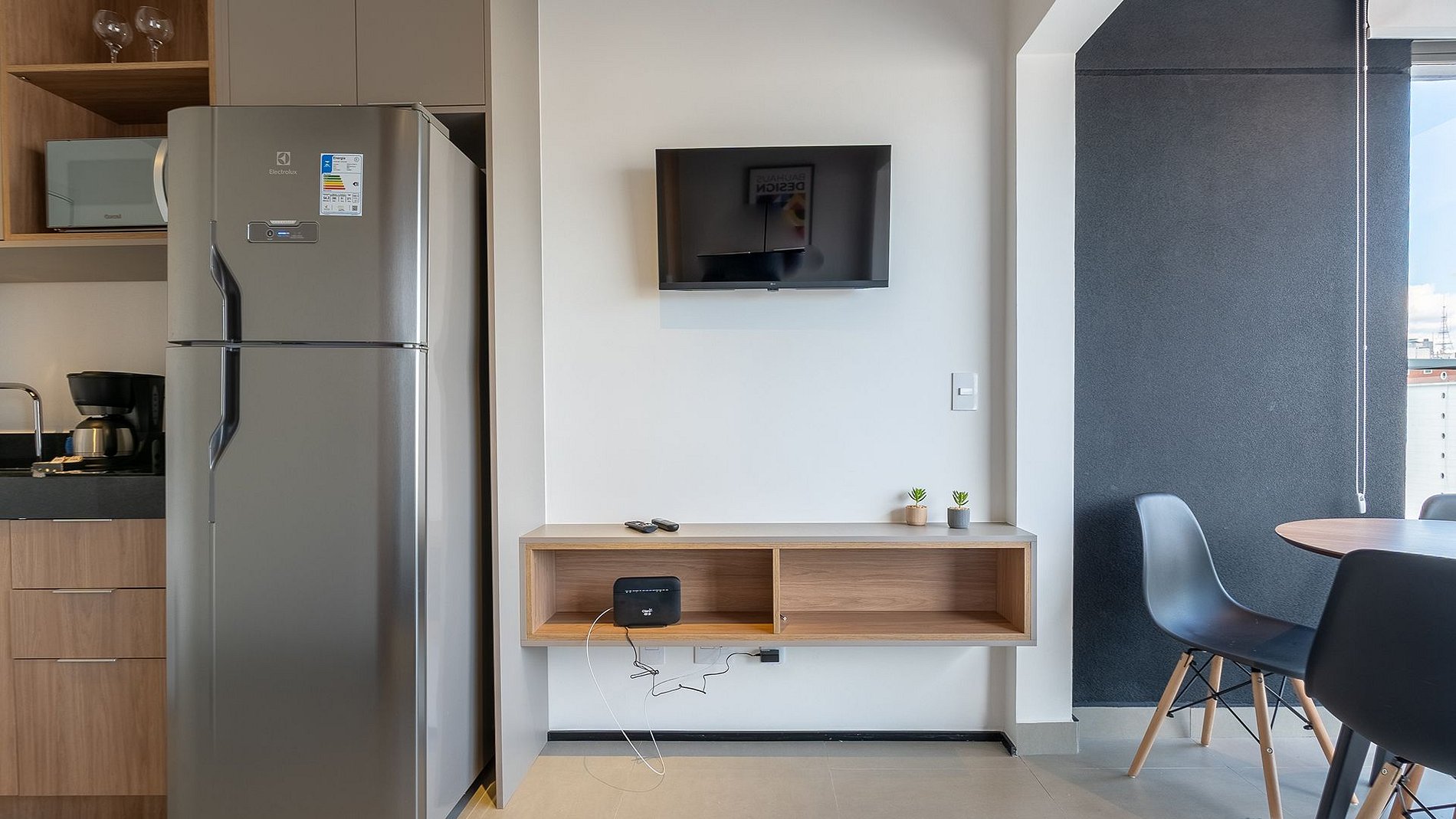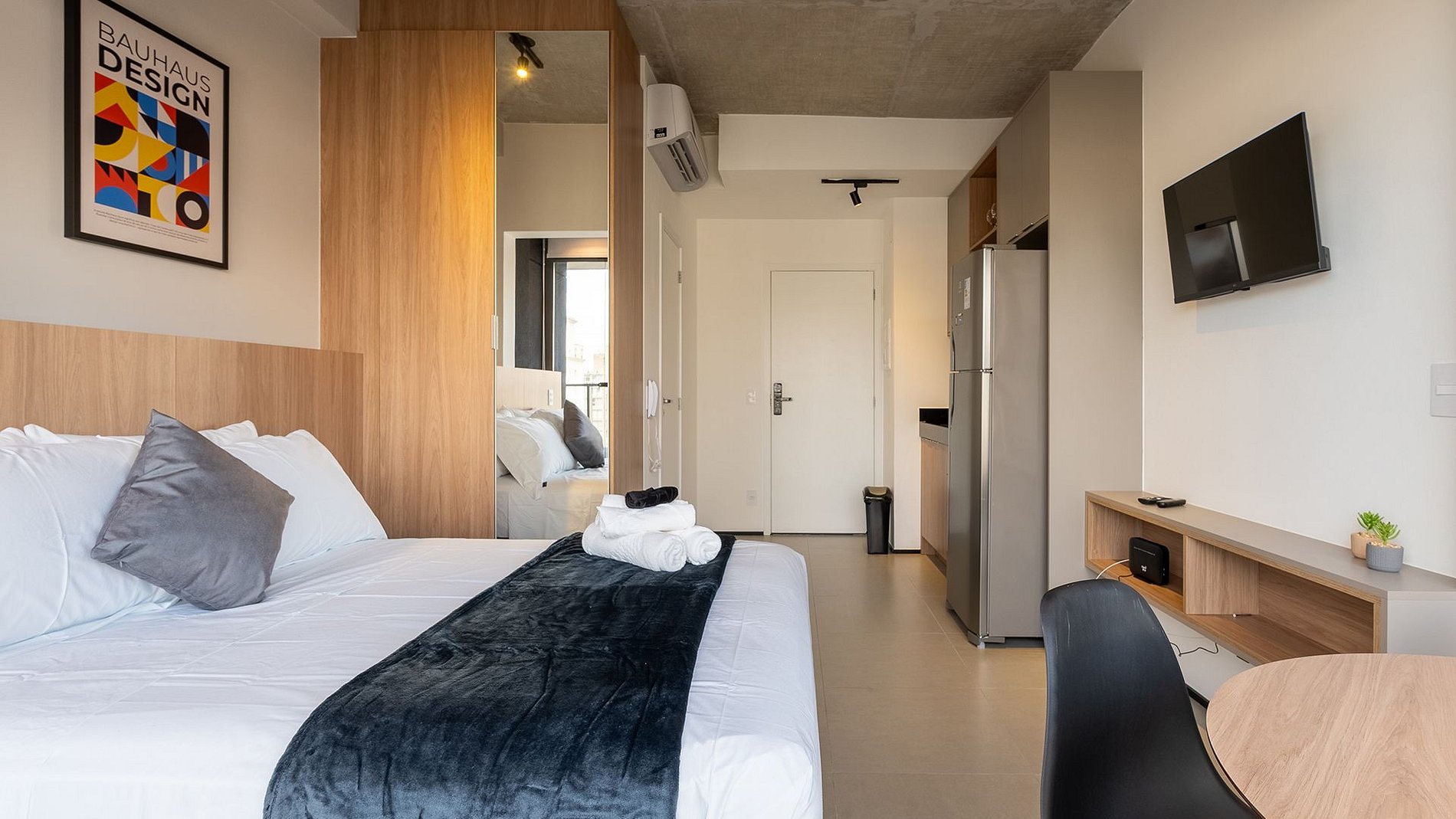 Studio completo na região da Augusta, próximo à Oscar Freire. Equipado com fechadura eletrônica, ar-condicionado inverter, Wi-Fi e espaço home office, TV Smart, cama de casal com enxoval premium e persiana blackout para seu conforto. A cozinha é totalmente equipada, incluindo cafeteira nespresso. Além disso, dispõe de secador, ferro e uma varanda fechada integrada com vista deslumbrante da cidade. Ideal para quem busca um estilo de vida moderno e funcional.