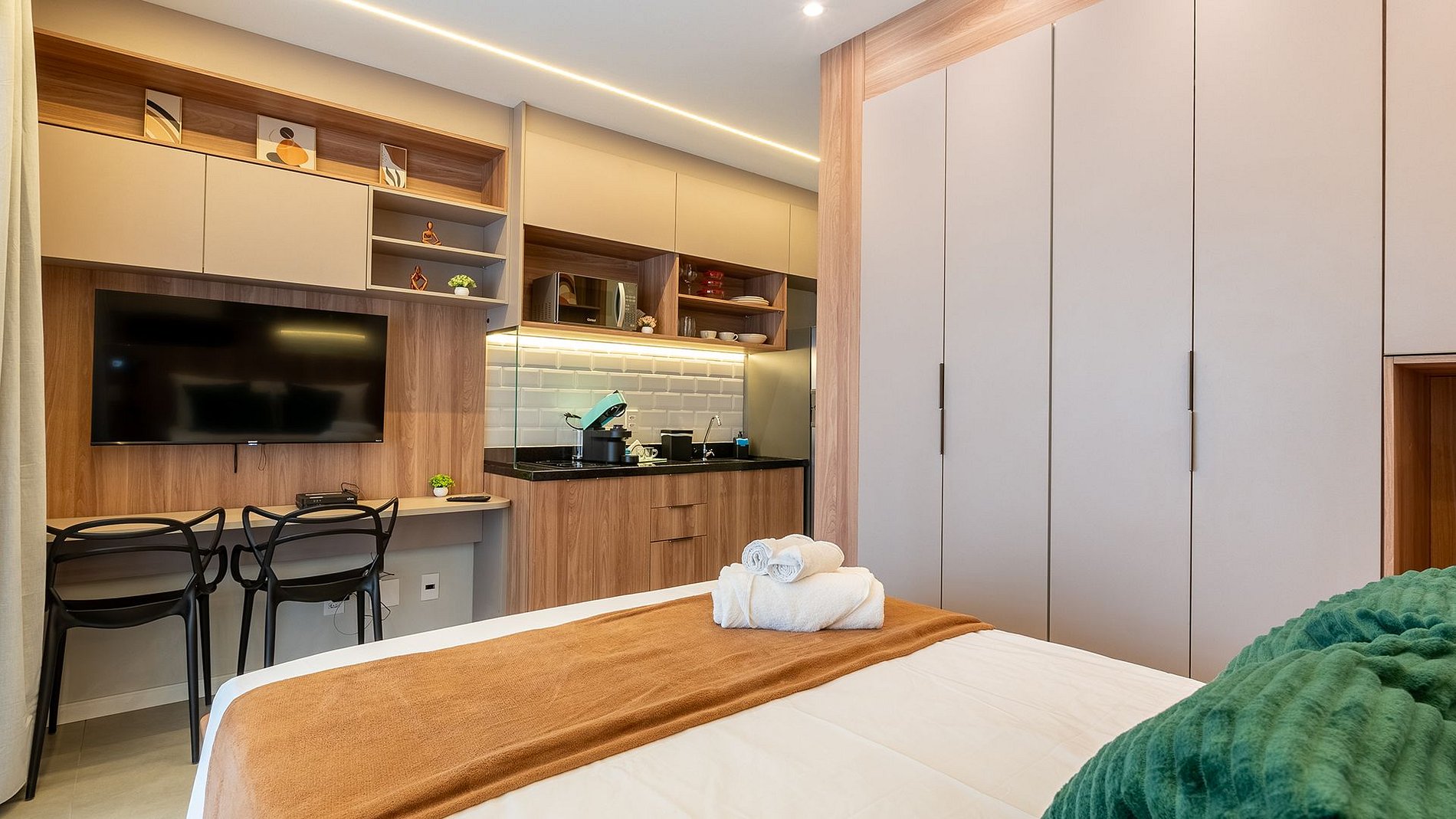 Descubra o luxo e o conforto deste estúdio em Perdizes! Equipado com fechadura eletrônica, ar-condicionado inverter, Wi-Fi de alta velocidade e espaço para home office, ele é perfeito para viver e trabalhar. Desfrute de TV Smart, cama de casal, enxoval premium e uma cozinha completa com utensílios e cafeteira Nespresso. Para sua conveniência, inclui secador de cabelo e steamer. A varanda envidraçada oferece uma vista espetacular da cidade, tornando sua experiência ainda mais exclusiva.