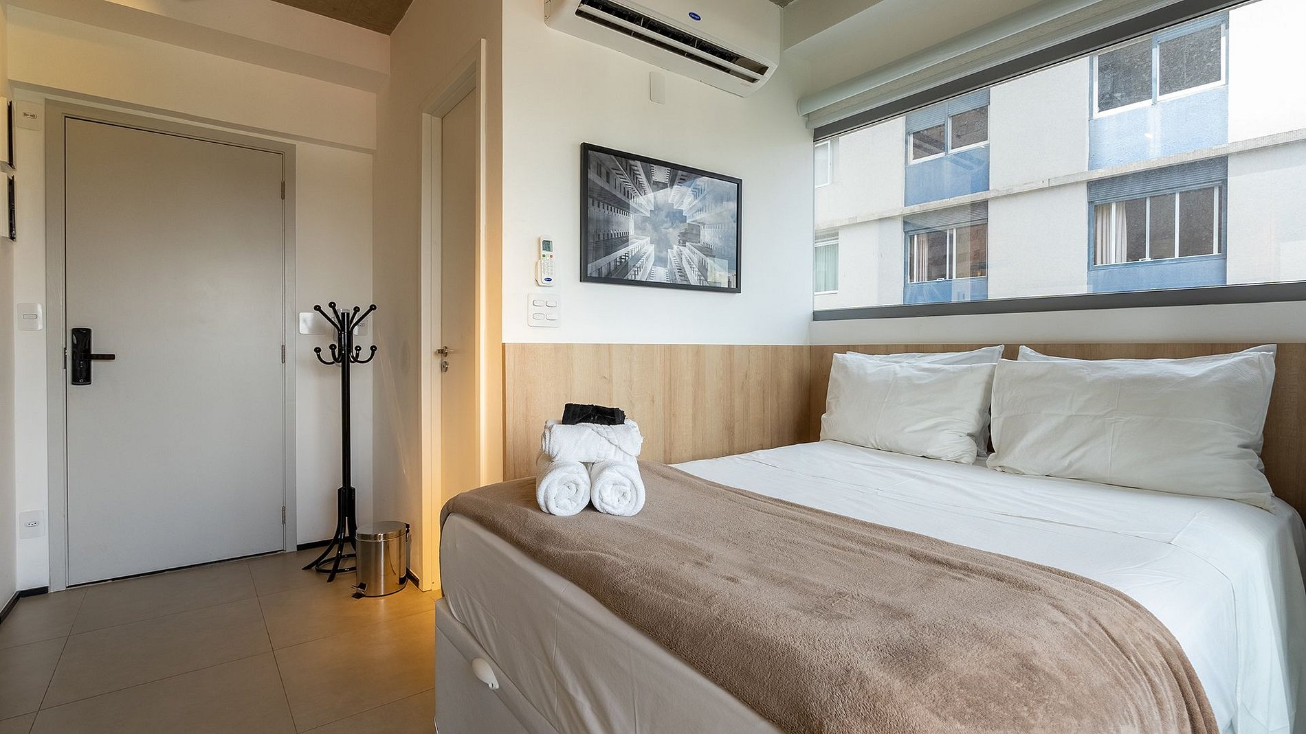 O Studio é um estúdio completo e luxuoso, situado na Alameda Lorena, no coração do Jardim Paulista, próximo à 9 de Julho. Moderno e sofisticado, conta com fechadura eletrônica, ar-condicionado inverter, TV smart, Wi-Fi potente e espaço para home office. A cama de casal possui enxoval completo e de alta qualidade. A cozinha é totalmente equipada, incluindo cafeteira elétrica, liquidificador, sanduicheira e filtro d’água. Destaque para a varanda fechada, que oferece uma vista incrível do bairro. Além disso, dispõe de ferro e tábua de passar para maior comodidade. Possui um secador de cabelo (110v)