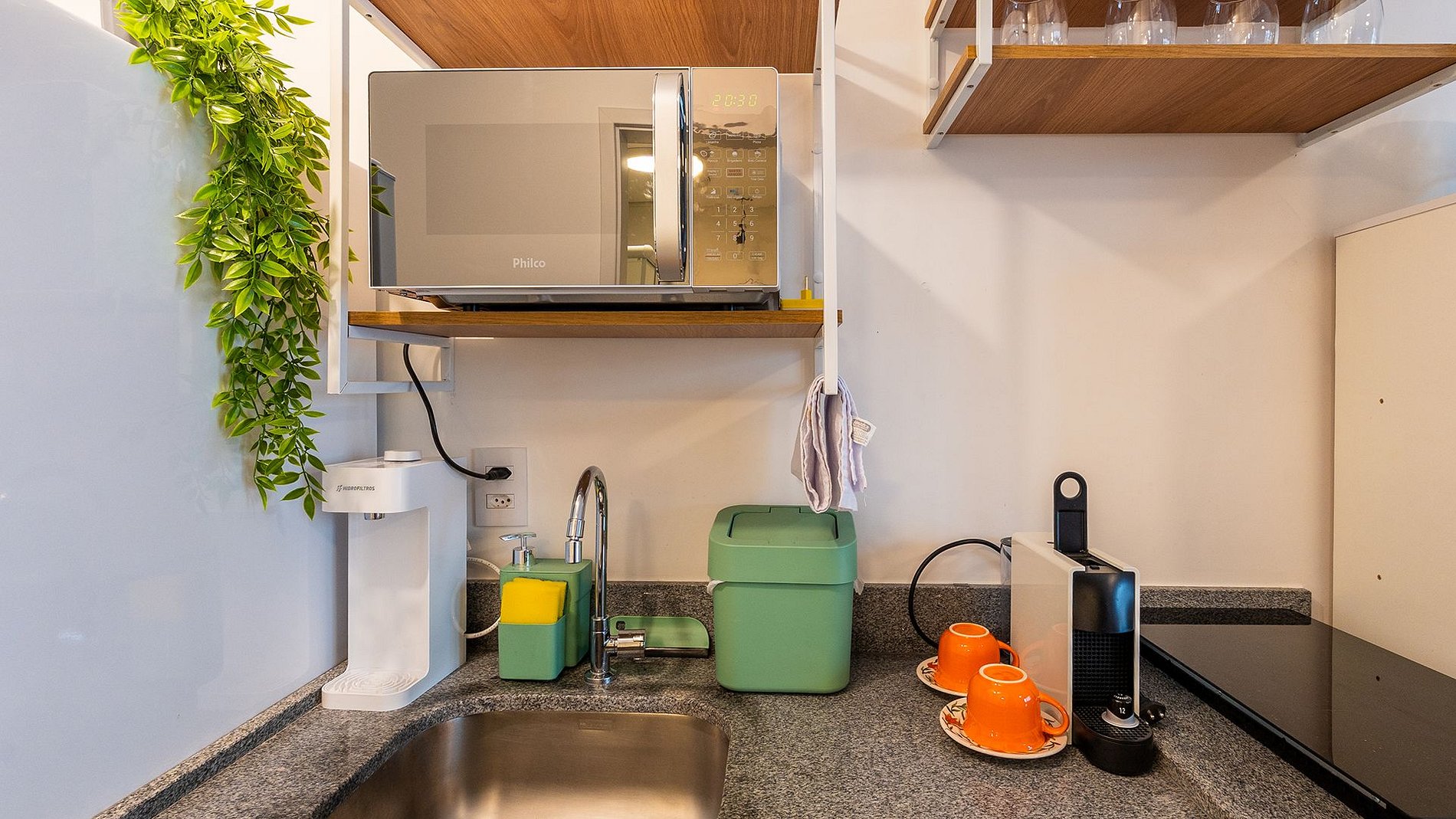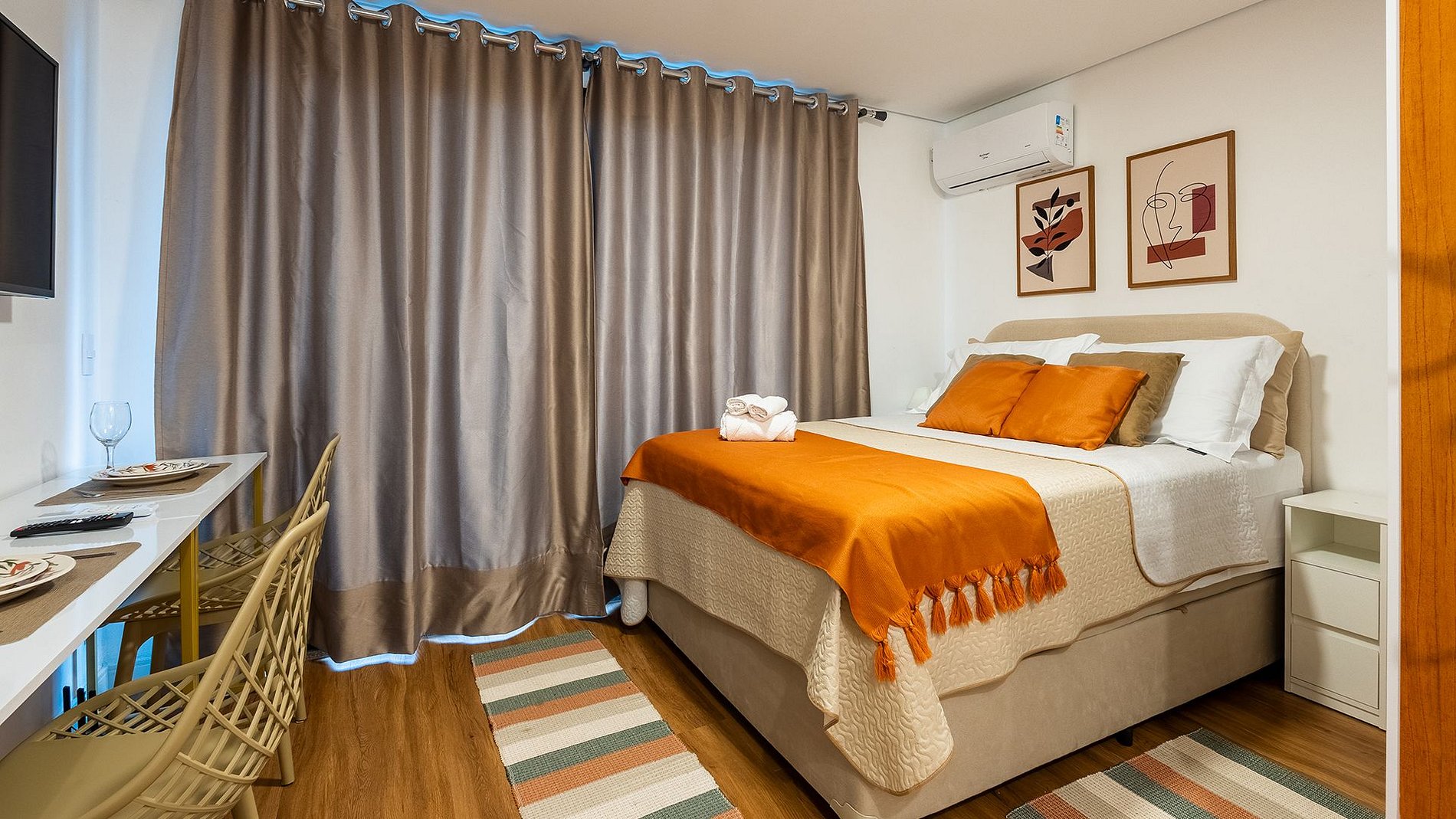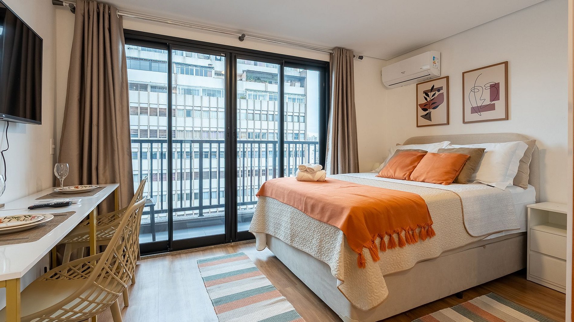 Studio luxuoso, completo e moderno no 16º andar do condomínio DNA PAULISTANO, na Consolação. Conta com fechadura eletrônica, ar-condicionado inverter, cama de casal com enxoval premium. Cozinha equipada com filtro, cafeteira Nespresso, AirFryer, além de TV, Wi-Fi, espaço para home office e jantar. Banheiro com box e secador de cabelo. Conforto e praticidade no coração de São Paulo!