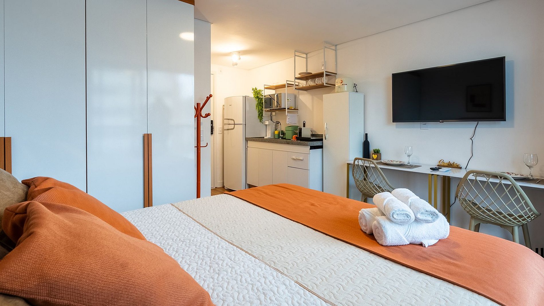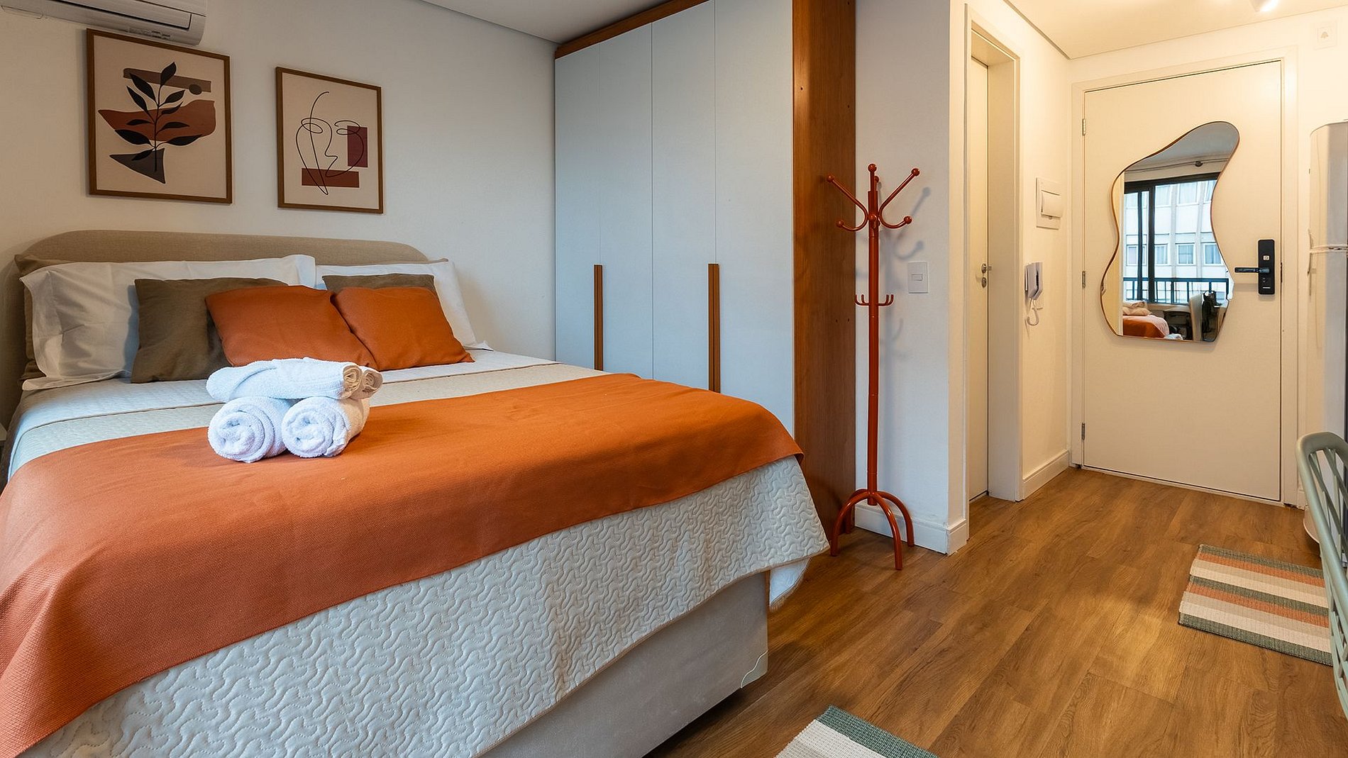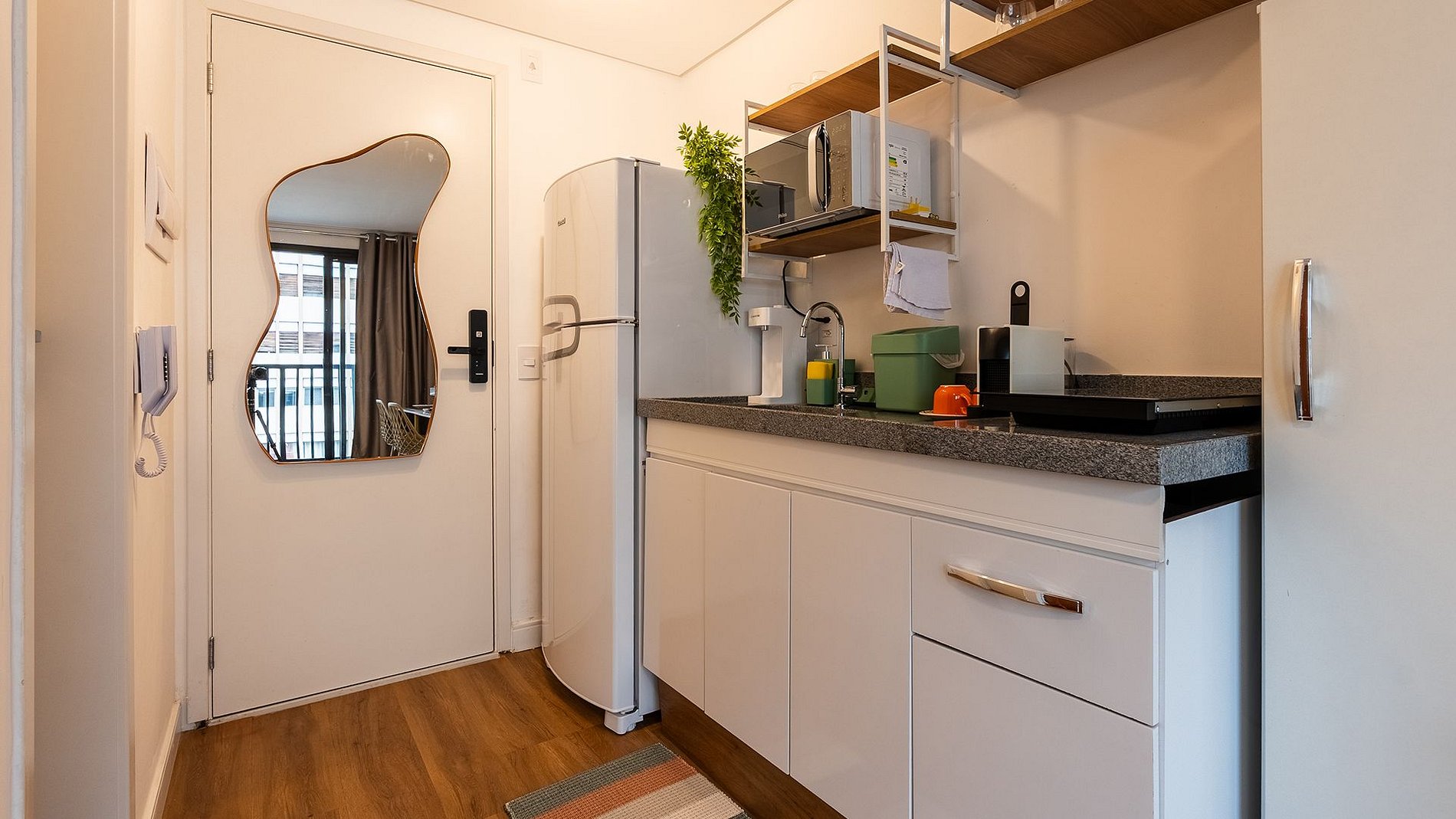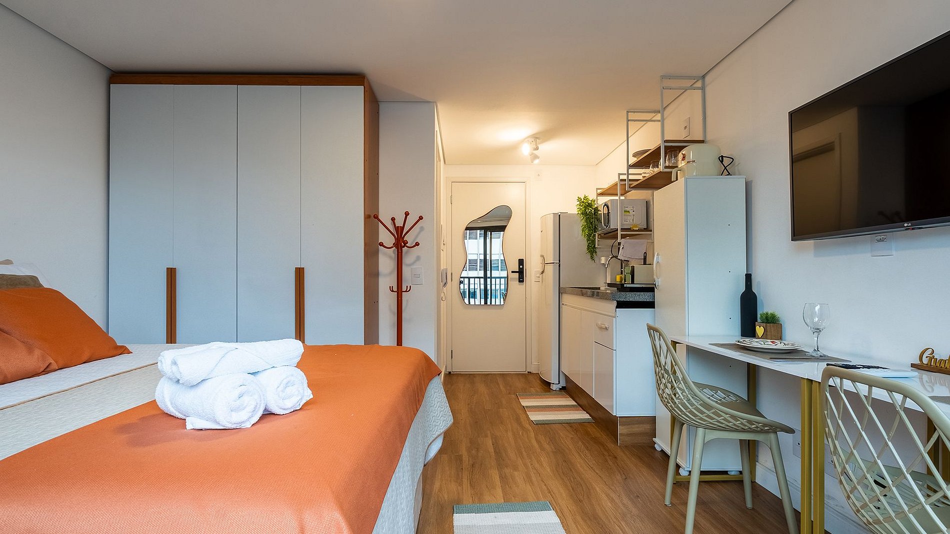 Studio luxuoso, completo e moderno no 16º andar do condomínio DNA PAULISTANO, na Consolação. Conta com fechadura eletrônica, ar-condicionado inverter, cama de casal com enxoval premium. Cozinha equipada com filtro, cafeteira Nespresso, AirFryer, além de TV, Wi-Fi, espaço para home office e jantar. Banheiro com box e secador de cabelo. Conforto e praticidade no coração de São Paulo!