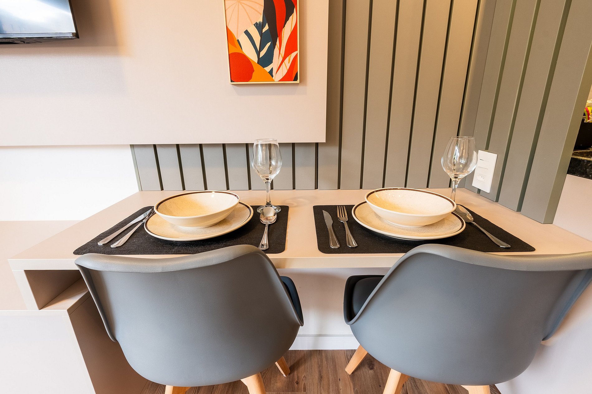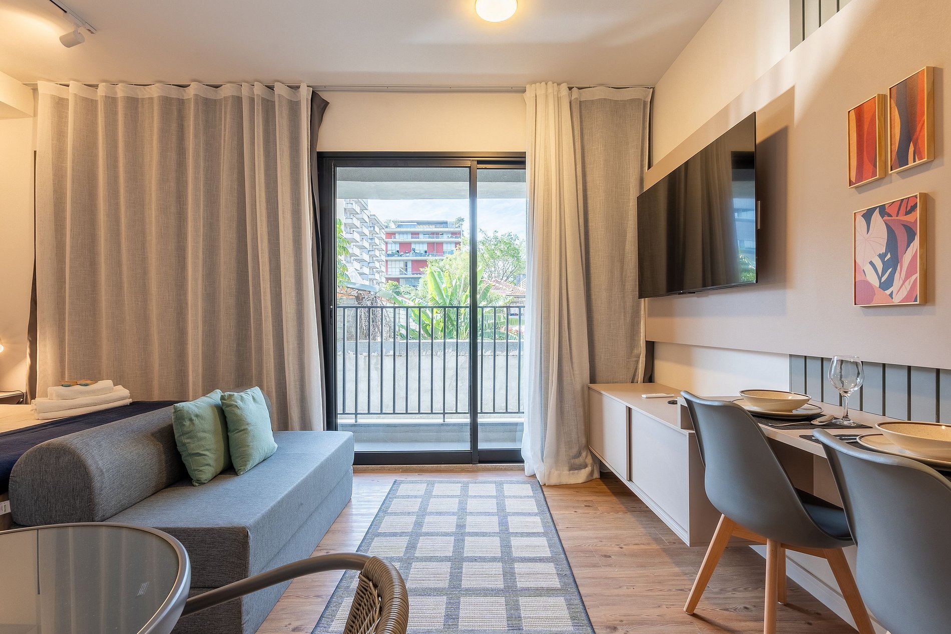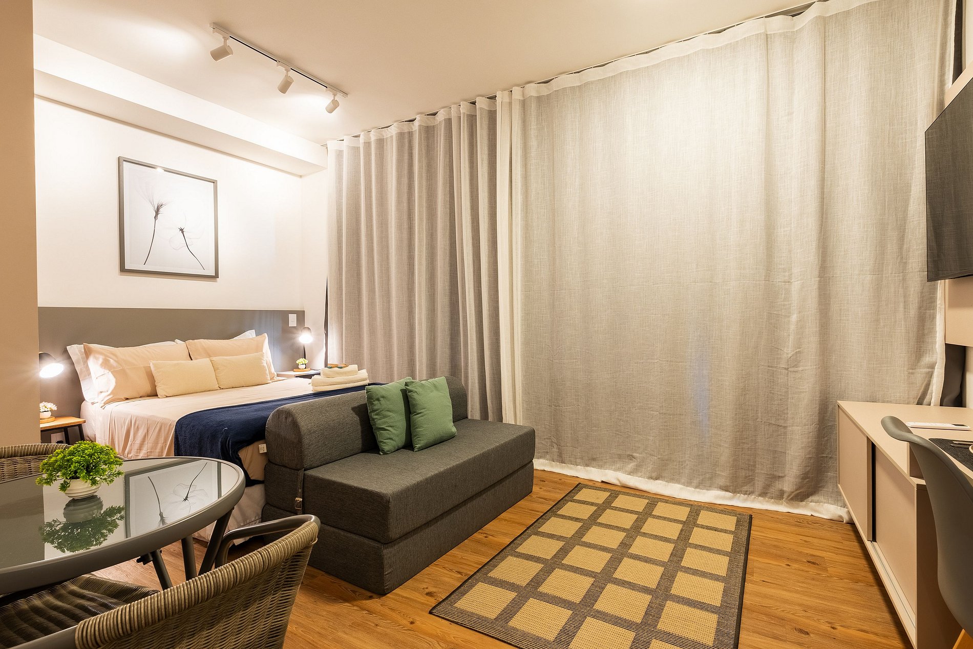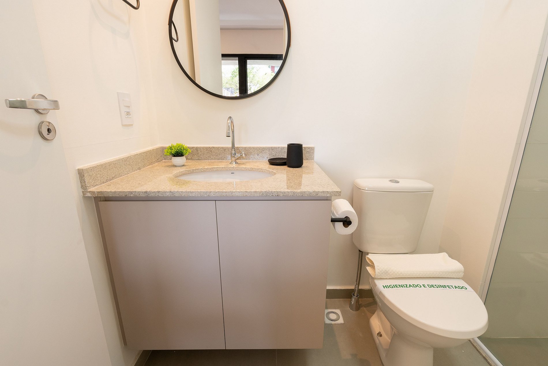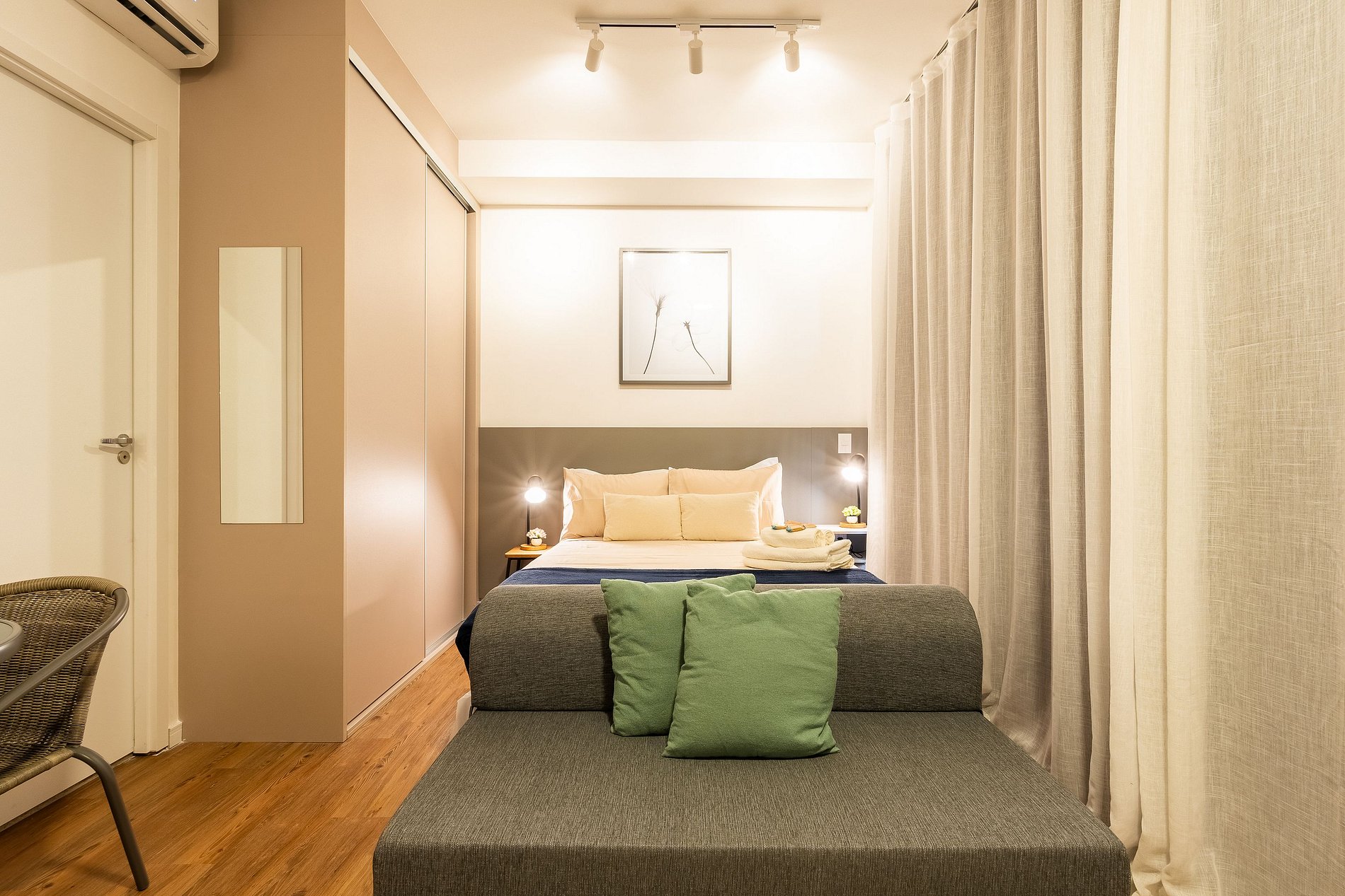 Estúdio luxuoso e completo na Vila Madalena, Rua Fradique Coutinho. Conta com fechadura eletrônica, ar-condicionado inverter, Wi-Fi, espaço para home office, cama de casal premium, sofá, TV de 50”, mesa para café e cozinha equipada com cafeteira Nespresso, liquidificador e sanduicheira. Banheiro com espelho, secador, steamer e vista incrível para São Paulo. Ideal para quem busca conforto, praticidade e estilo.