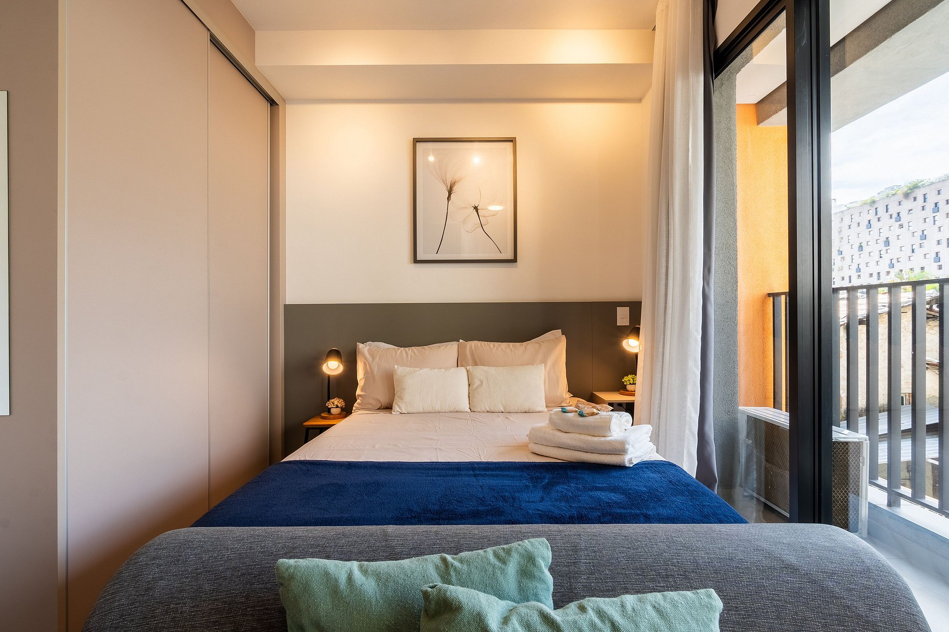 Estúdio luxuoso e completo na Vila Madalena, Rua Fradique Coutinho. Conta com fechadura eletrônica, ar-condicionado inverter, Wi-Fi, espaço para home office, cama de casal premium, sofá, TV de 50”, mesa para café e cozinha equipada com cafeteira Nespresso, liquidificador e sanduicheira. Banheiro com espelho, secador, steamer e vista incrível para São Paulo. Ideal para quem busca conforto, praticidade e estilo.