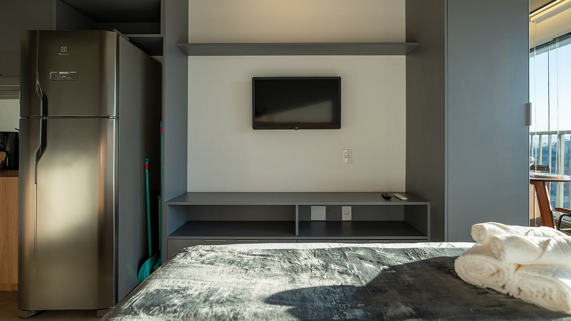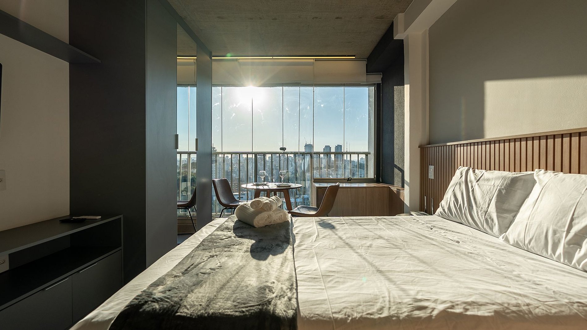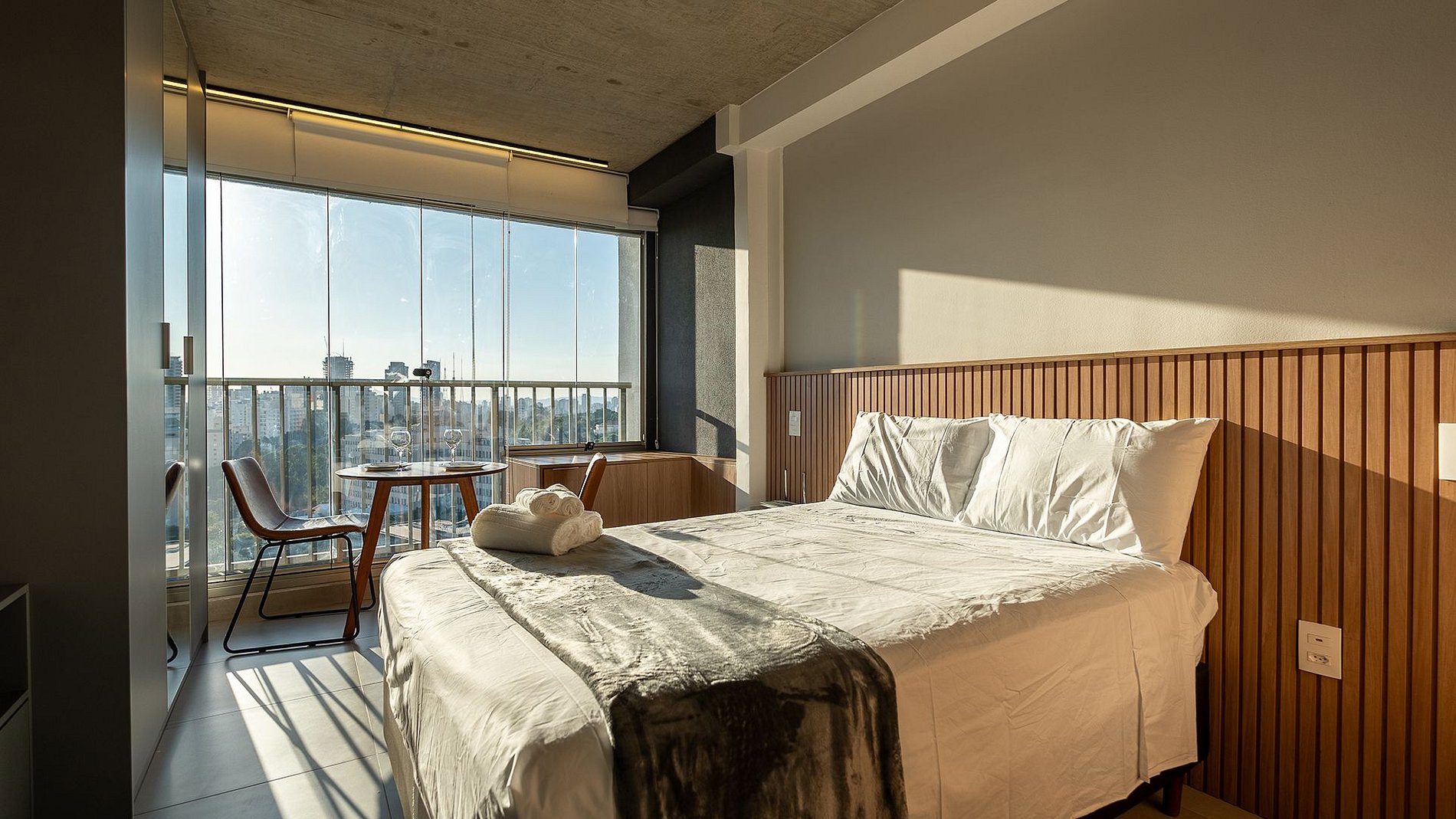 Studio no 24° andar Rua Melo ALves, próximo à Oscar Freire. Equipado com fechadura eletrônica, ar-condicionado inverter, Wi-Fi e espaço home office, TV Smart, cama de casal com enxoval premium e persiana blackout para seu conforto. A cozinha é totalmente equipada, incluindo cafeteira elétrica. Além disso, dispõe de secador, ferro e uma varanda fechada integrada com vista deslumbrante da cidade. Ideal para quem busca um estilo de vida moderno e funcional.