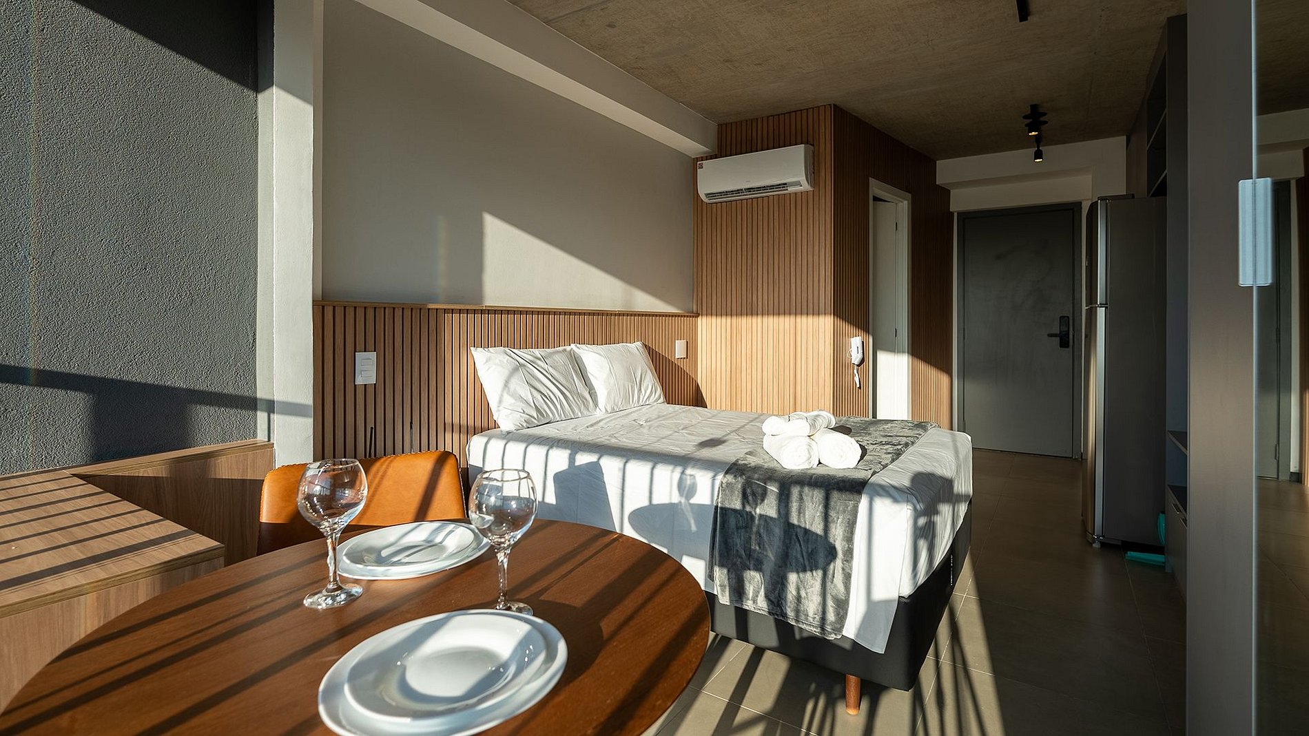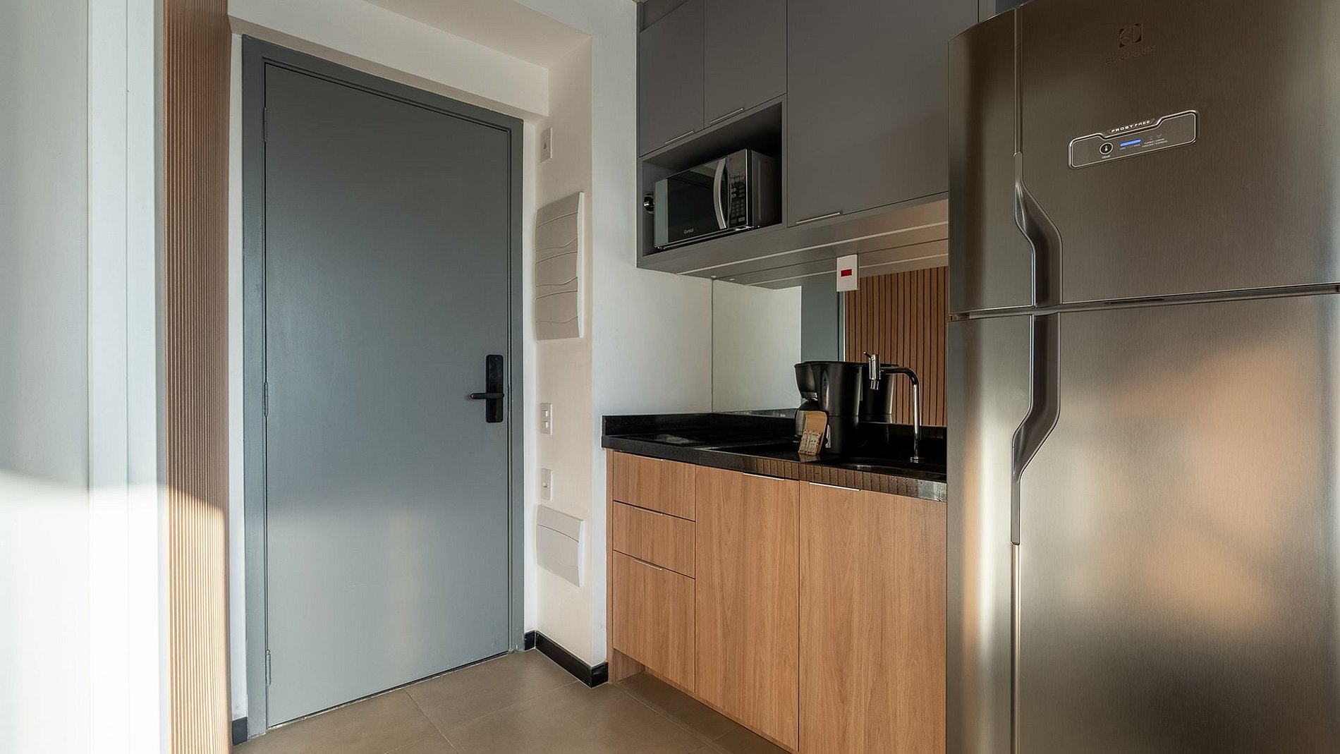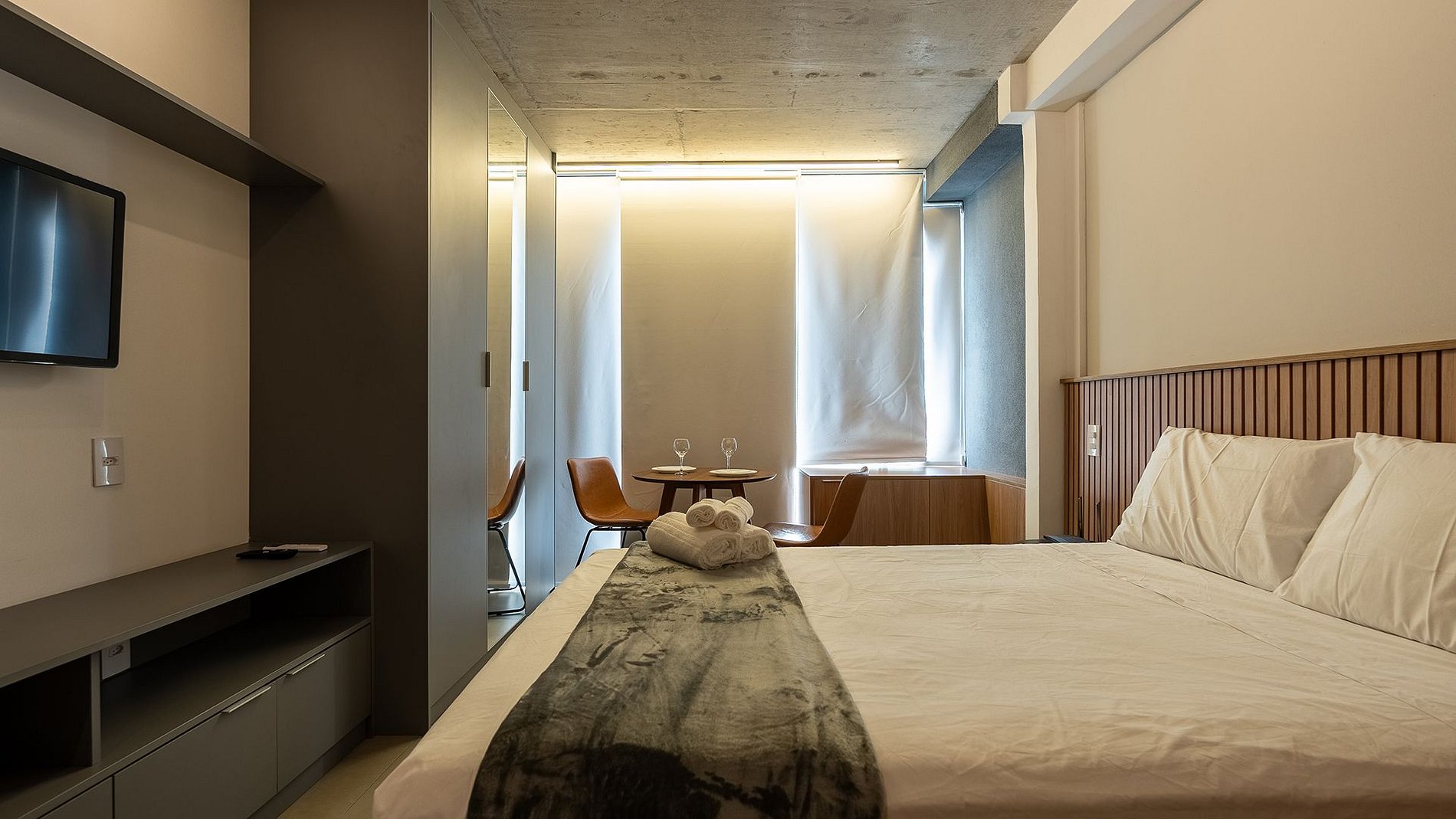 Studio no 24° andar Rua Melo ALves, próximo à Oscar Freire. Equipado com fechadura eletrônica, ar-condicionado inverter, Wi-Fi e espaço home office, TV Smart, cama de casal com enxoval premium e persiana blackout para seu conforto. A cozinha é totalmente equipada, incluindo cafeteira elétrica. Além disso, dispõe de secador, ferro e uma varanda fechada integrada com vista deslumbrante da cidade. Ideal para quem busca um estilo de vida moderno e funcional.
