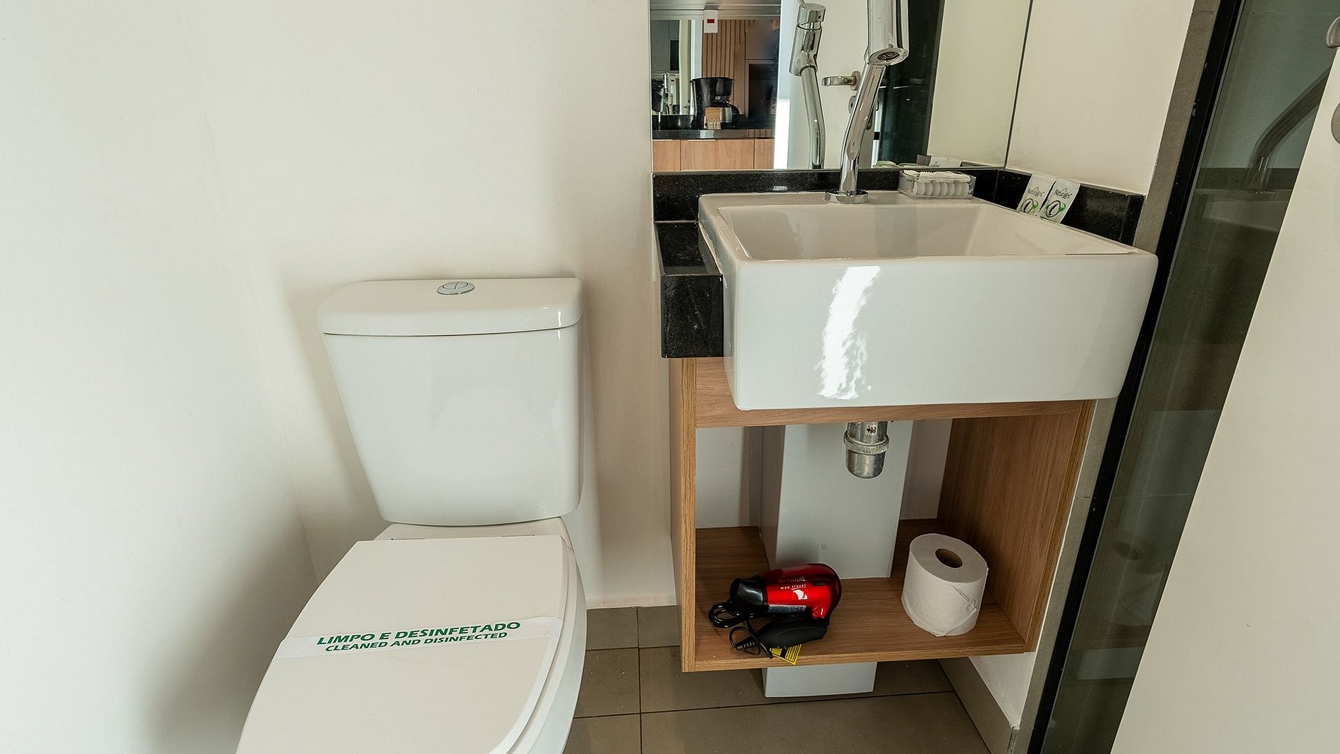 Fornecemos enxoval completo para dois hóspedes contando com: 2 travesseiros, 1 manta, 2 lençóis, 2 toalhas de banho, 2 de rosto e 1 toalha de piso. Há possibilidade de troca de enxoval mediante solicitação antecipada e com custo adicional.